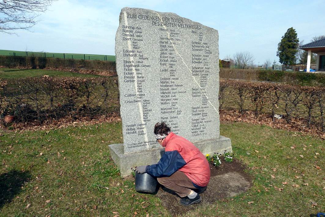 Die Bepflanzung an den beiden Kriegsdenkmälern in Reumtengrün wurde am Samstag, den 22. März erneuert.