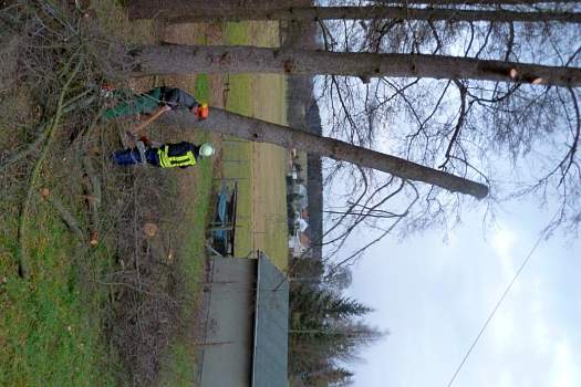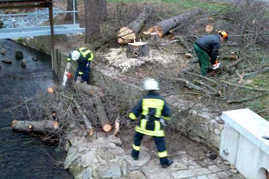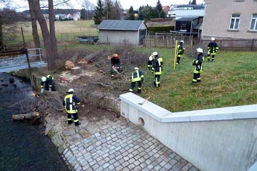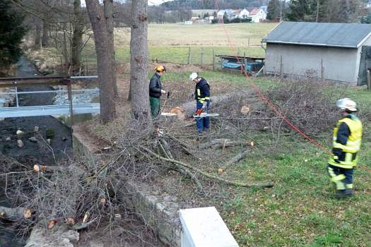 Die Kameraden halfen vorbeugend marode Bäume zufällen, welche bei Sturm auf Wohngebäude stürzen könnten. Die Feuerwehr aus Auerbach war mit schwerer Technik vor Ort.
