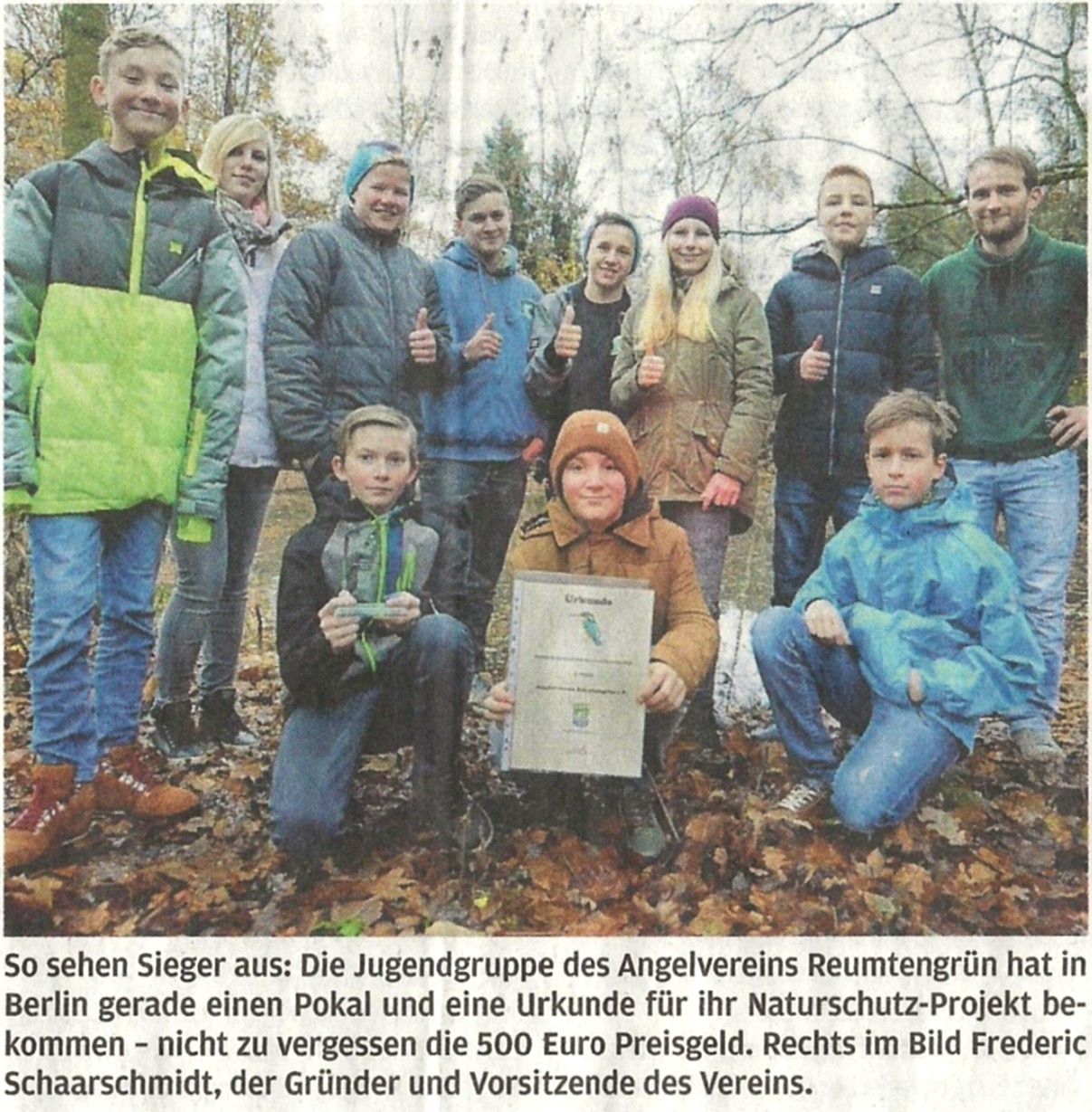 Über die Auszeichnung der jungen Angler von Reumtengrün wurde in der Freien Presse vom 19. November informiert.