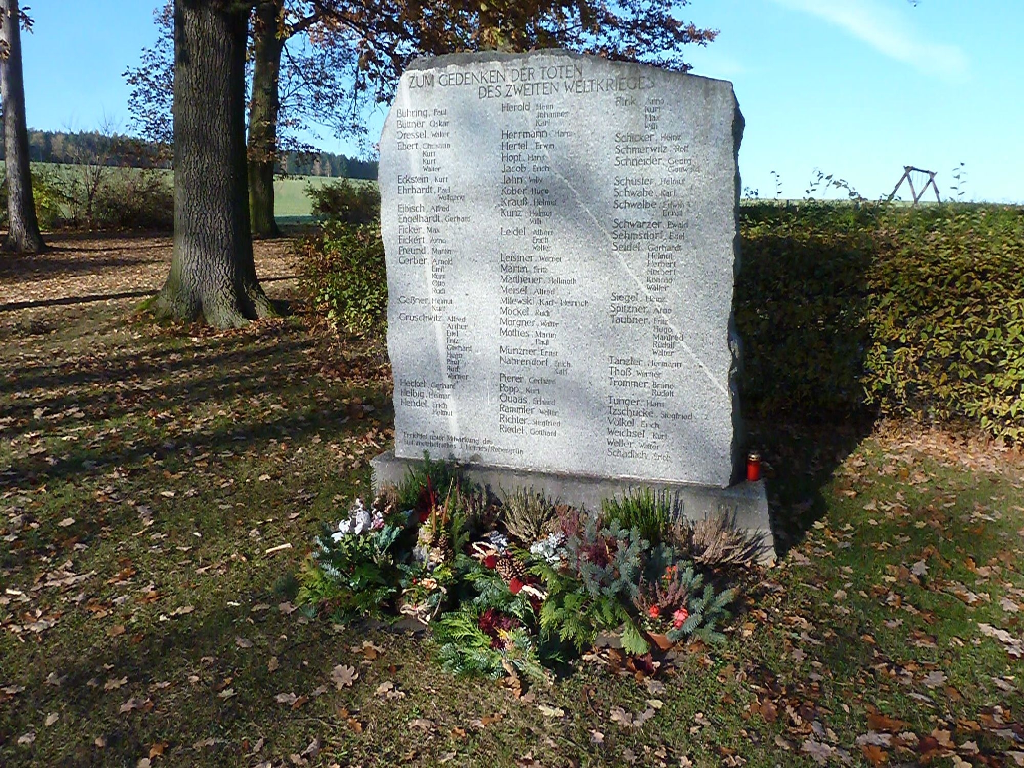 In Anwesenheit von Mitgliedern des Ortschaftsrates der Freiwilligen Feuerwehr und Bürgern erinnerte unser Pfarrer Johannes Kaufmann an vergangenes Leid und blickte auf zukünftige Herausforderungen.