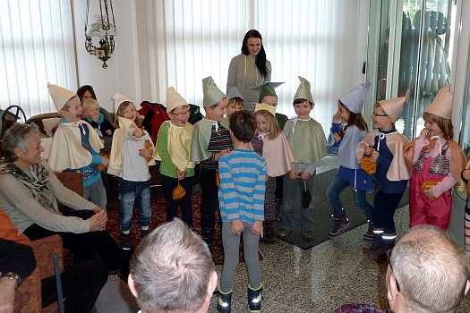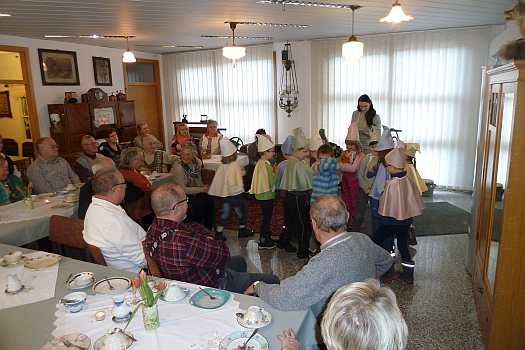 Am 14. Dezember fand im Heimatverein das vierte gemeinsame Seniorenkaffeetrinken statt. Eingeladen waren alle Senioren aus Reumtengrün, welche im IV. Quartal 2015 ihren Geburtstag feierten. Die Kinder unseres Kindergartens gestalteten wieder ein sehr anspruchsvolles Programm. Viele kleine Zwerge zeigten, wie die Menschen mit Schmunzelsteinen ein Lächeln hervor zaubern können. Das würde der Welt heutzutage ganz gut stehen. Es war ganz toll, wie dieses Anliegen von den Kindern bildhaft dargestellt wurde. Eine Augenweite waren schon die niedlichen Kostüme der kleinen Zwerge. Unsere Senioren konnten über die kleinen Talente nur staunen.