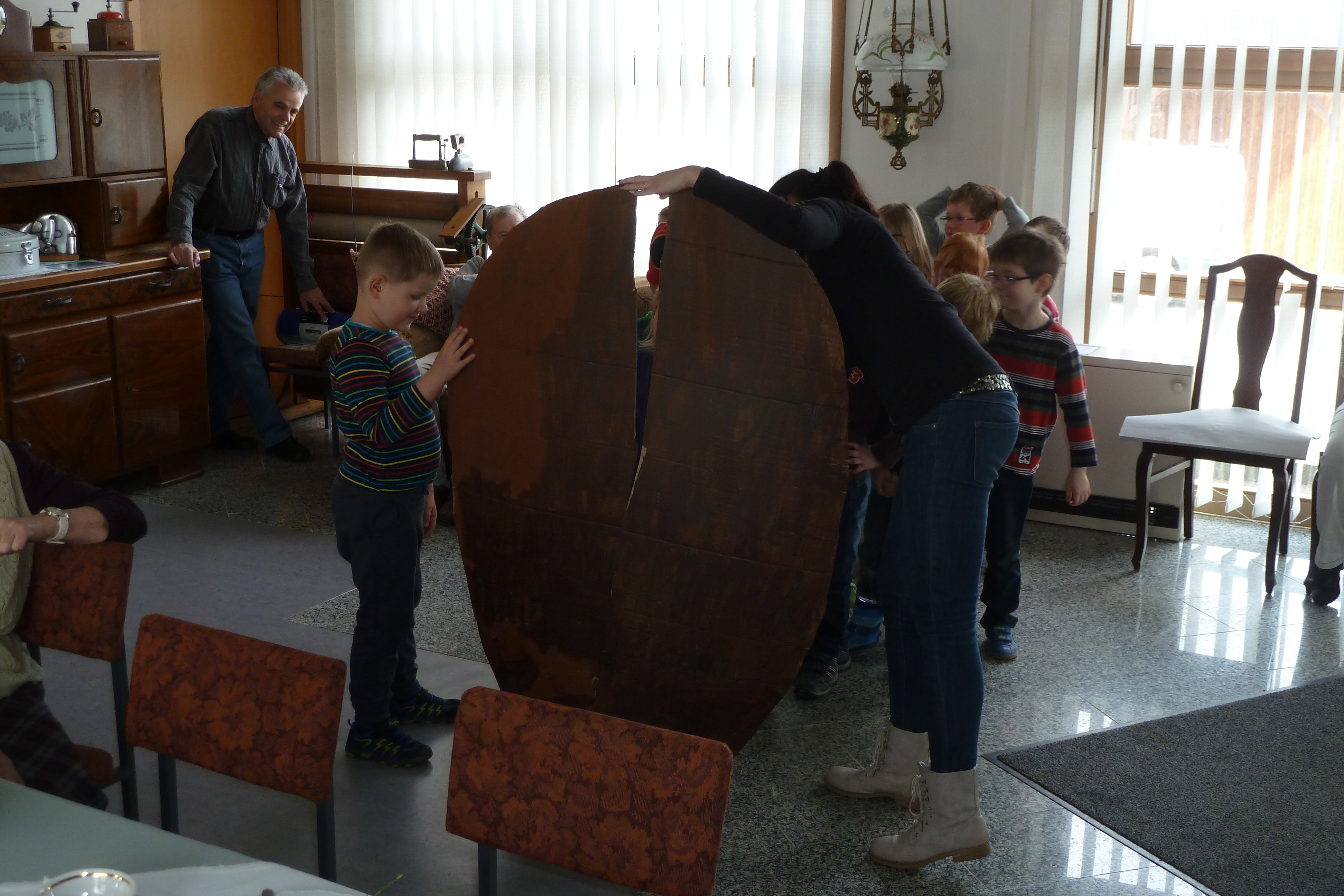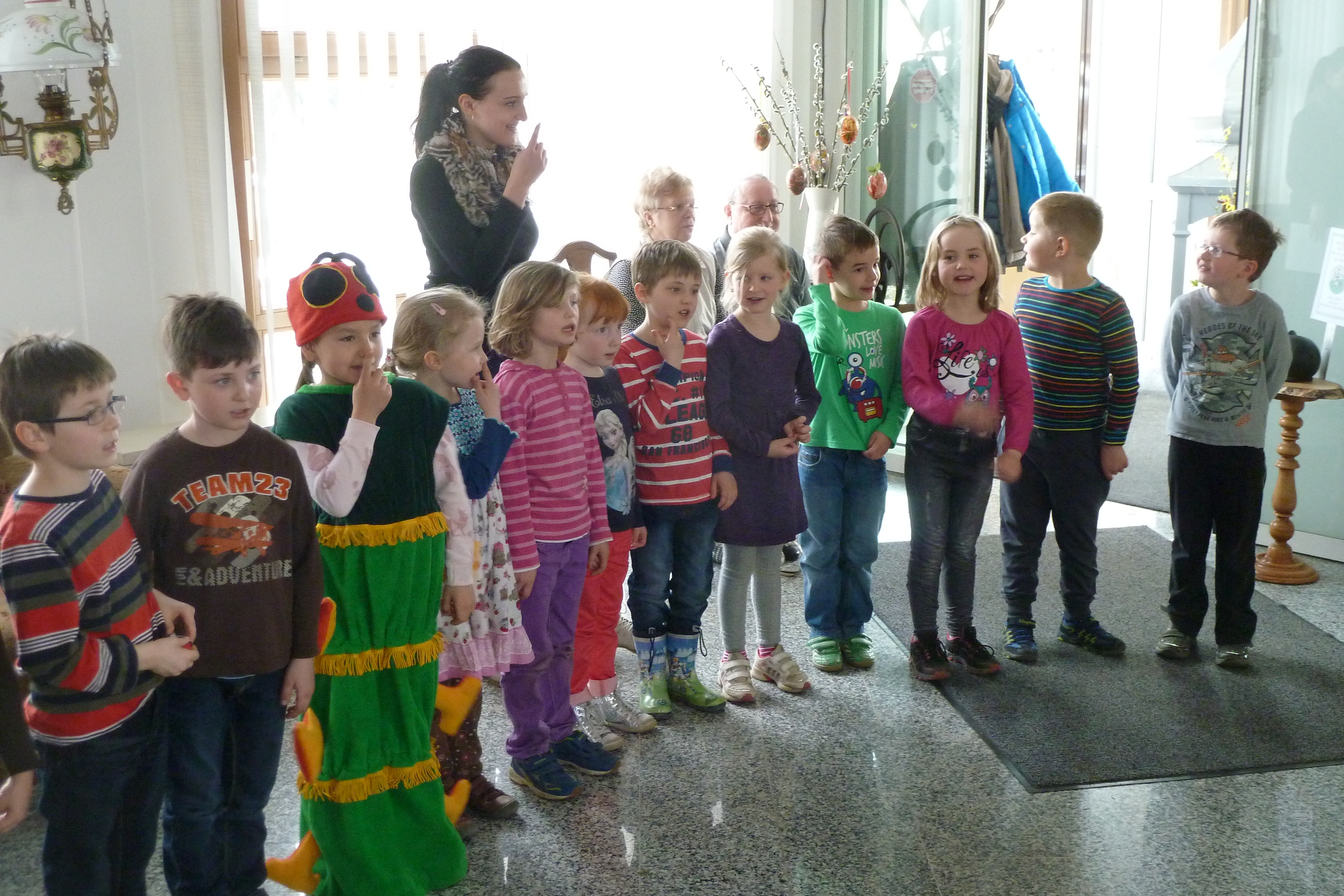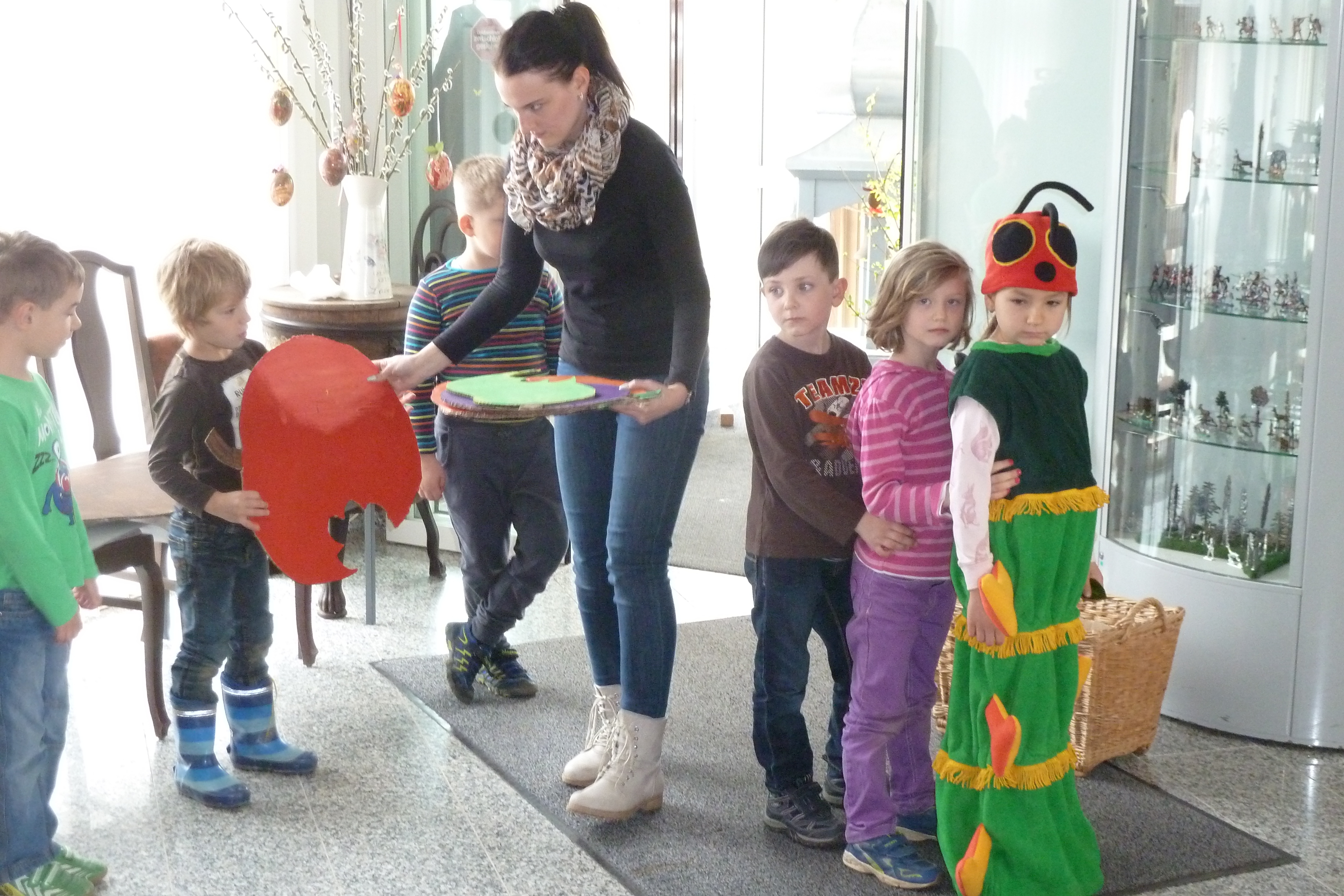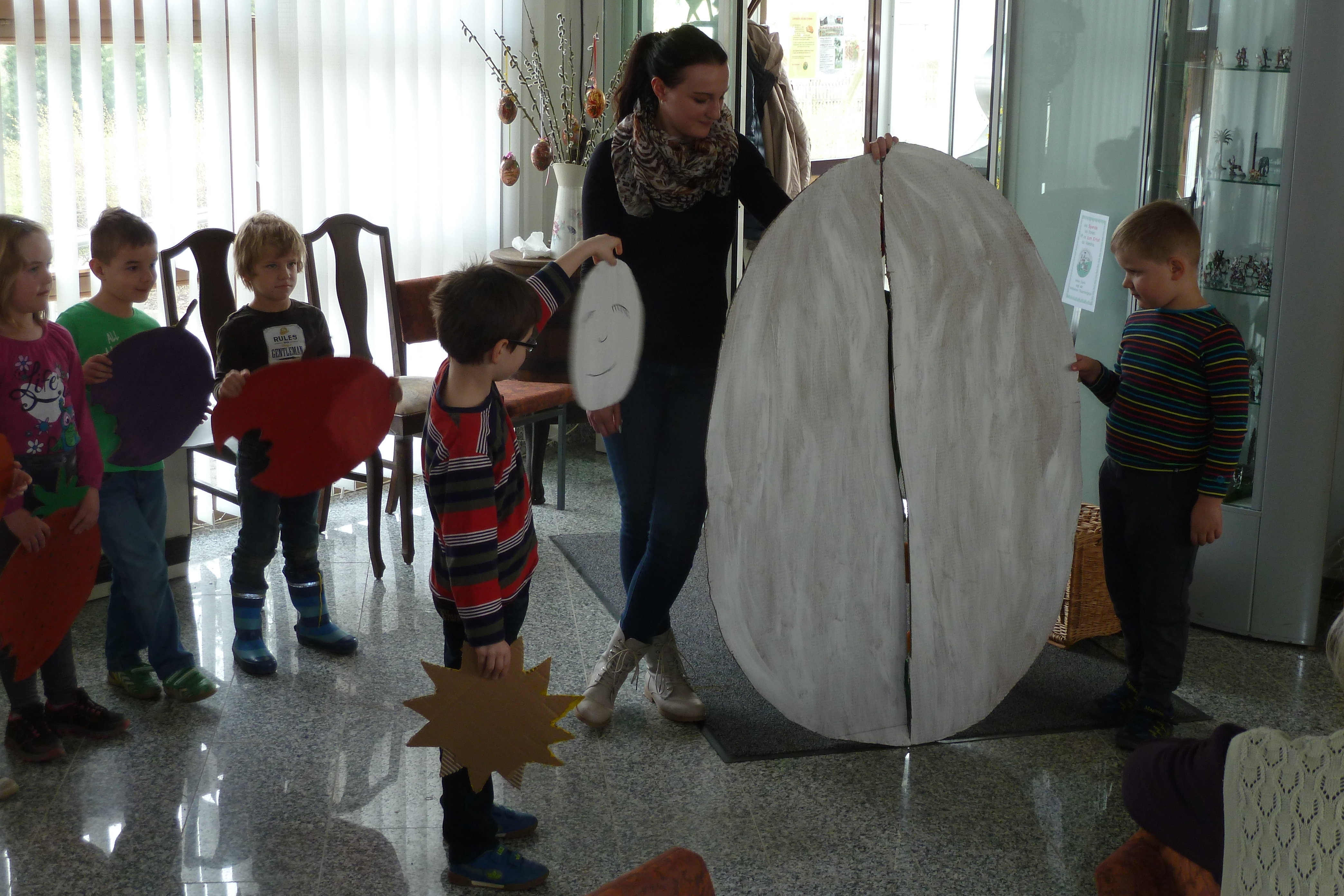 2015 hatten wir im Heimatverein begonnen, für die Senioren ein sogenanntes Seniorenquartalskaffeetrinken, zusammen mit dem Kindergarten einzuführen. Am 7. April 2016 wurde diese schöne Tradition nun fortgesetzt. Die Kinder des Kindergartes zeigten sehr anschaulich, wie sich eine sehr gefräßige Raupe in einen wunderschönen Schmetterling verwandelt. Nach der gemütlichen Kaffeerunde gestaltete Christiane Fankhänel aus Treuen ein Programm, welches zur Jahreszeit passte.