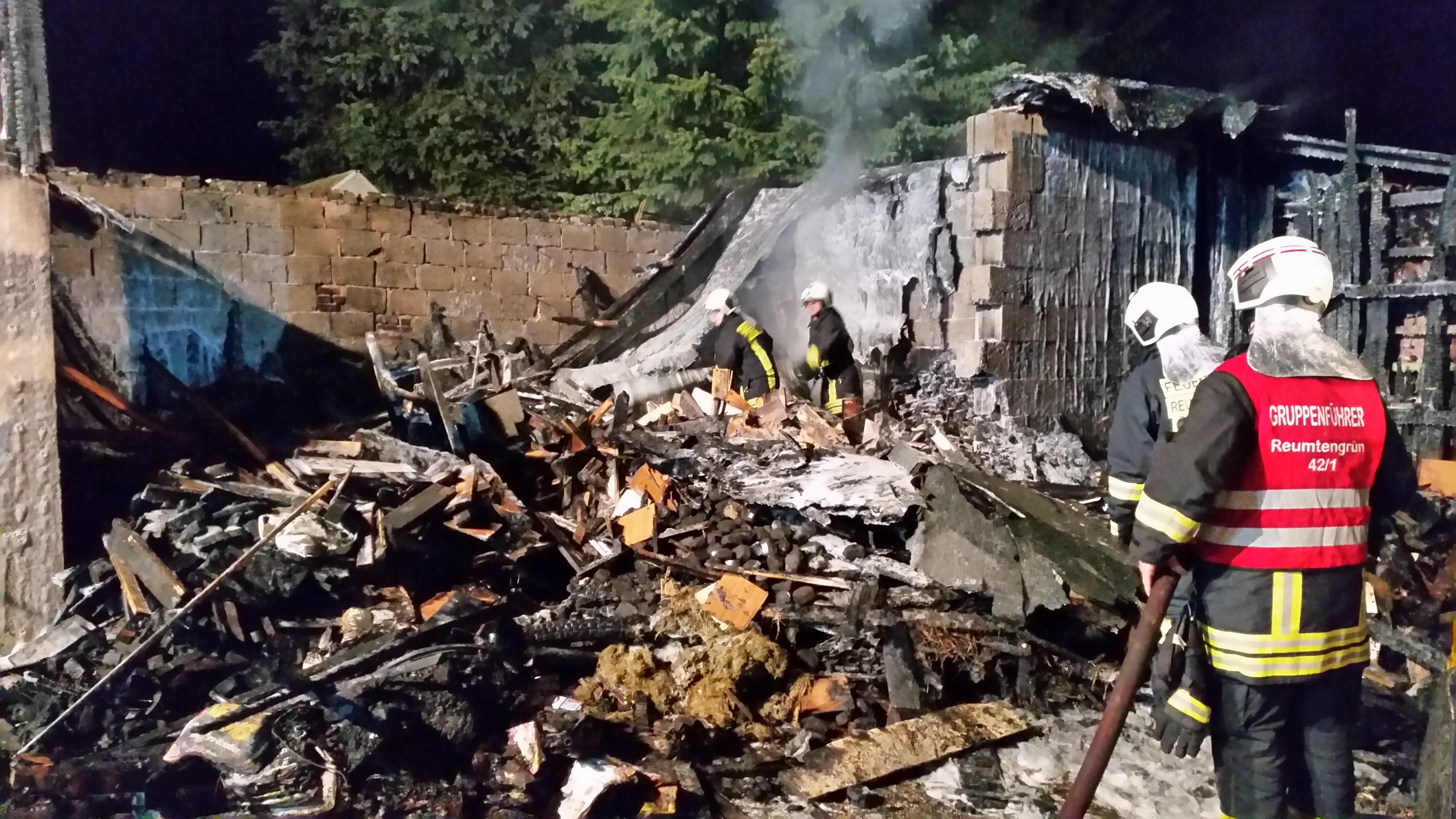 Die Feuerwehren von Reumtengrün, Rebesgrün und Auerbach hatte alle Hände voll zu tun, um ein Übergreifen der Flammen auf das Wohnhaus zu verhindern. Das Nebengebäue brannte bis auf die Grundmauern nieder. Außer Schutt und Asche ist nichts mehr übrig gelieben. Zum Glück kamen keine Personen zu Schaden.