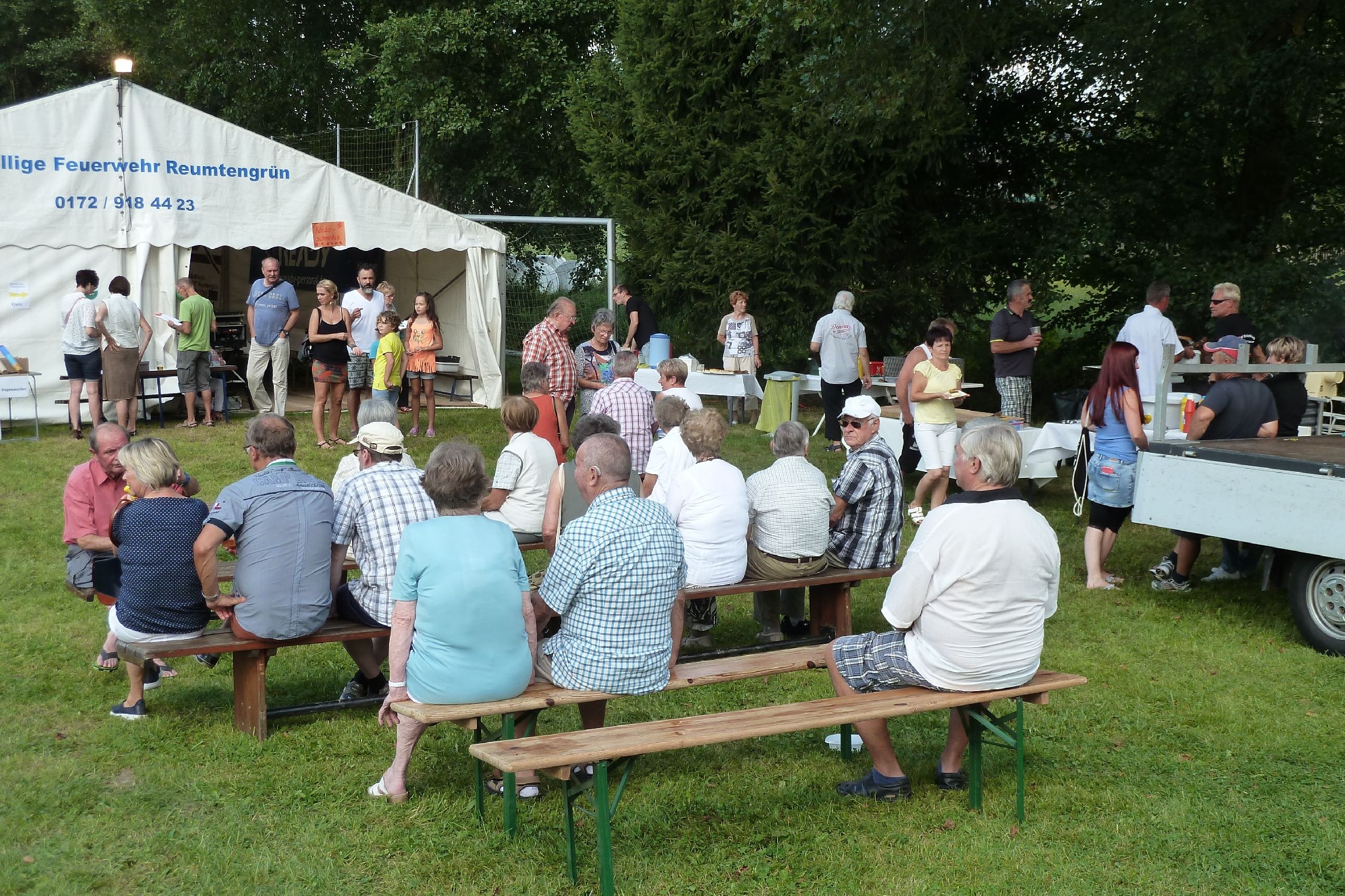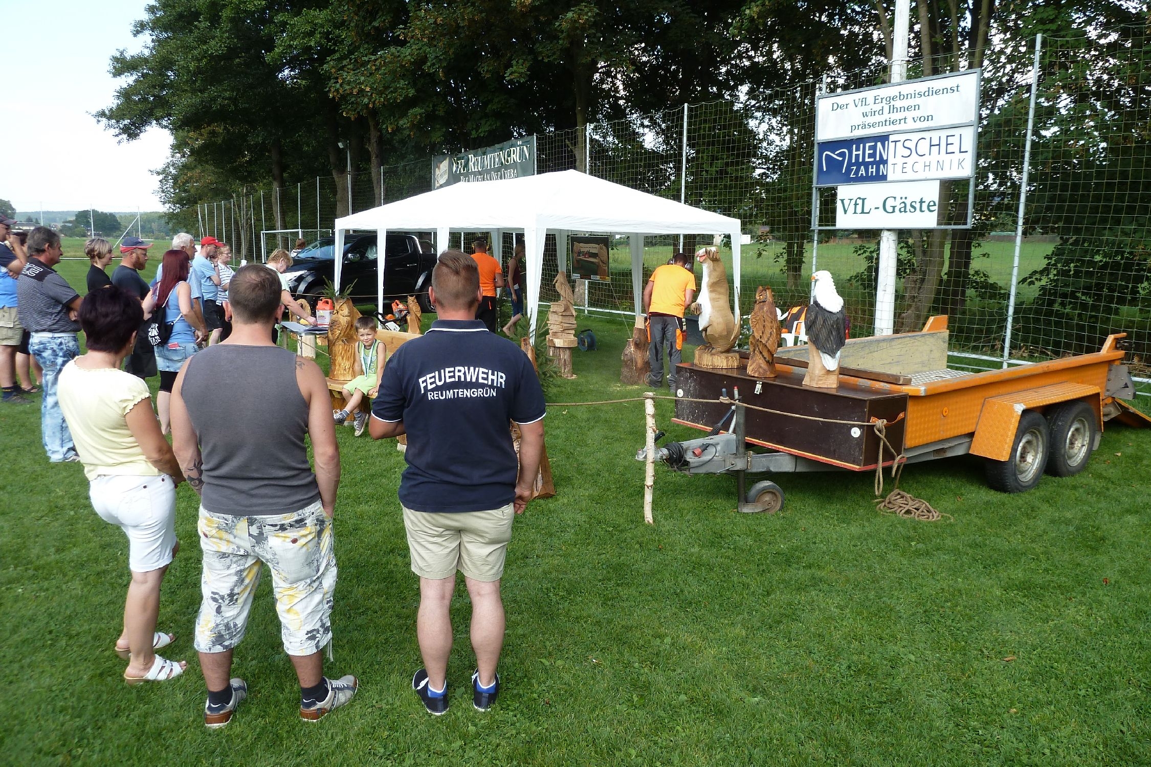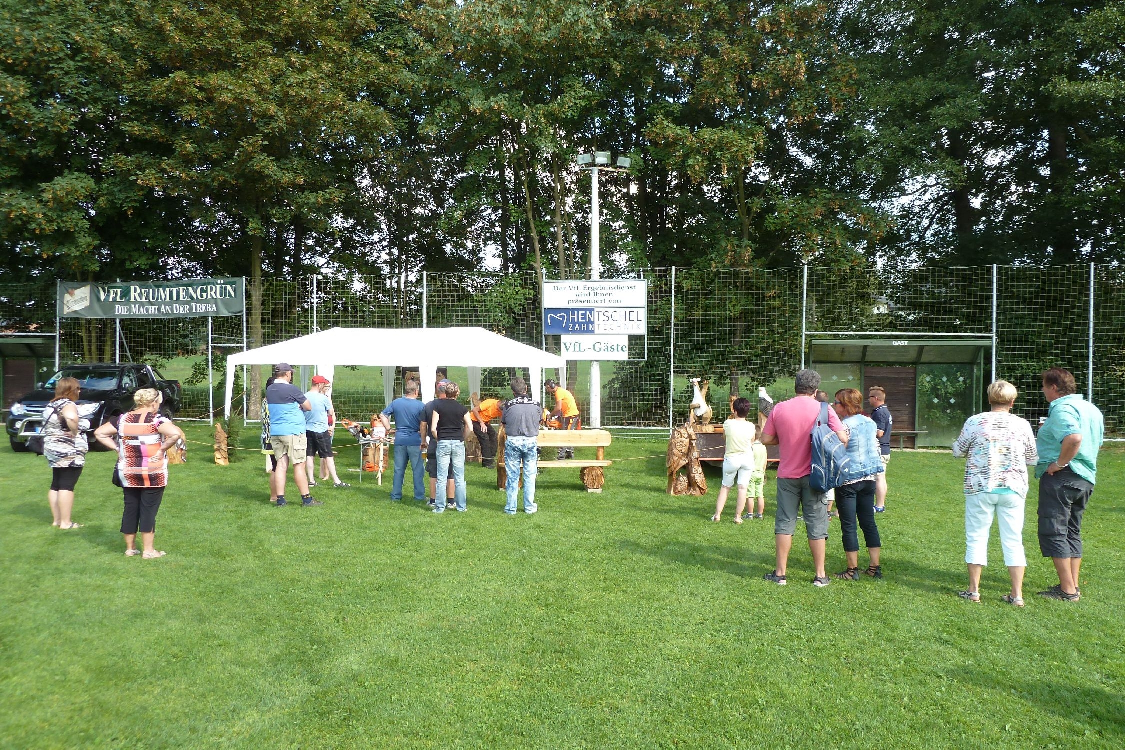 Am Sonntag, den 10.09.2016, feierte die Ortschaft Reumtengrün ihr erstes Dorffest und kann dabei auf eine äußerst gelungene Veranstaltung zurückblicken. Der Erfolg war dabei nicht nur dem fantastischen Wetter geschuldet. In einer beispielhaften Zusammenarbeit von allen Vereinen der Ortschaft und vielen mit Reumtengrün verbundenen Gewerbetreibenden konnte das umfangreiche Festprogramm dann auch so in vollem Umfang durchgeführt werden. Die Nachmittag-Veranstaltungen waren den Familien und deren Kinder gewidmet, welche sämtliche Programme sehr zahlreich dankend angenommen haben. Neben dem Kinderschminken sorgten ein Flohmarkt, ein Streichelzoo, das Fahren mit dem Minibagger, verschienen Quiz zum Fisch-Ort-Badverein, dem Torwandschießen und Löschübungen für kurze Weile am Nachmittag. Beeindruckend war auch die Leistung des Kettensägemeisters gewesen. Das Wehranstauen mit abschließenden Entenrennen waren eine weitere Attraktion an diesem Nachmittag. Neben dem gegrillten Wildschwein, Steaks, Rostern und Fischvariationen konnte mit verschiedenen Kuchen der große und kleine Hunger gestillt werden. Für den großen Durst war das Angebot ebenso reichhaltig. Der Abend war dann bis in die späten Nachstunden geprägt von einer Musikveranstaltung mit Modenschau und einer Verlosung in einem proppenvollen Festzelt. Ein besonderer Höhepunkt war die Versteigerung einer opulent gefertigten hölzernen Eule, welche durch einen ortsansässigen jungen Motorsägen-Künstler in sagenhaft kurzer Zeit auf dem Festgelände vor den Augen der Besucher gestaltet wurde. Der nicht gerade geringe Versteigerungserlös ergeht in Einvernehmen aller Organisatoren an den erst vor zwei Jahren gegründeten Angelverein Reumtengrün e. V.. Schon bei der Planung des Dorffestes waren sich alle beteiligten Organisatoren einig, die unermüdlichen Aktivitäten des Angelvereins bei der Sanierung des verwahrlosten Terrains rund um den Rosensee in der Form zu würdigen, dass man in diesem Jahr den Gewinn aus den Einnahmen diesem Verein zugute kommen lässt. Eine absolut richtige Entscheidung.