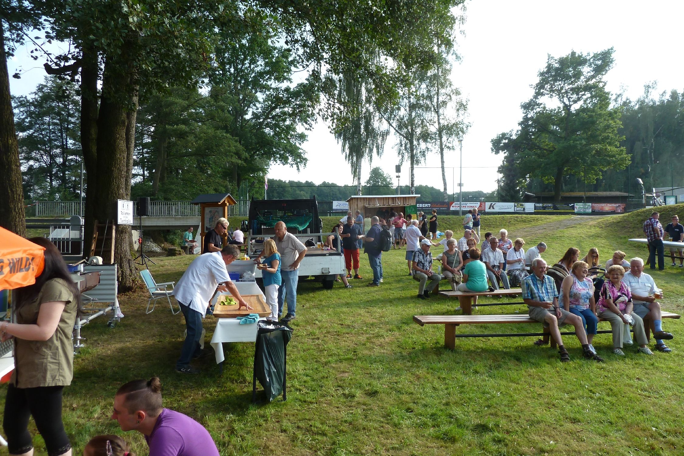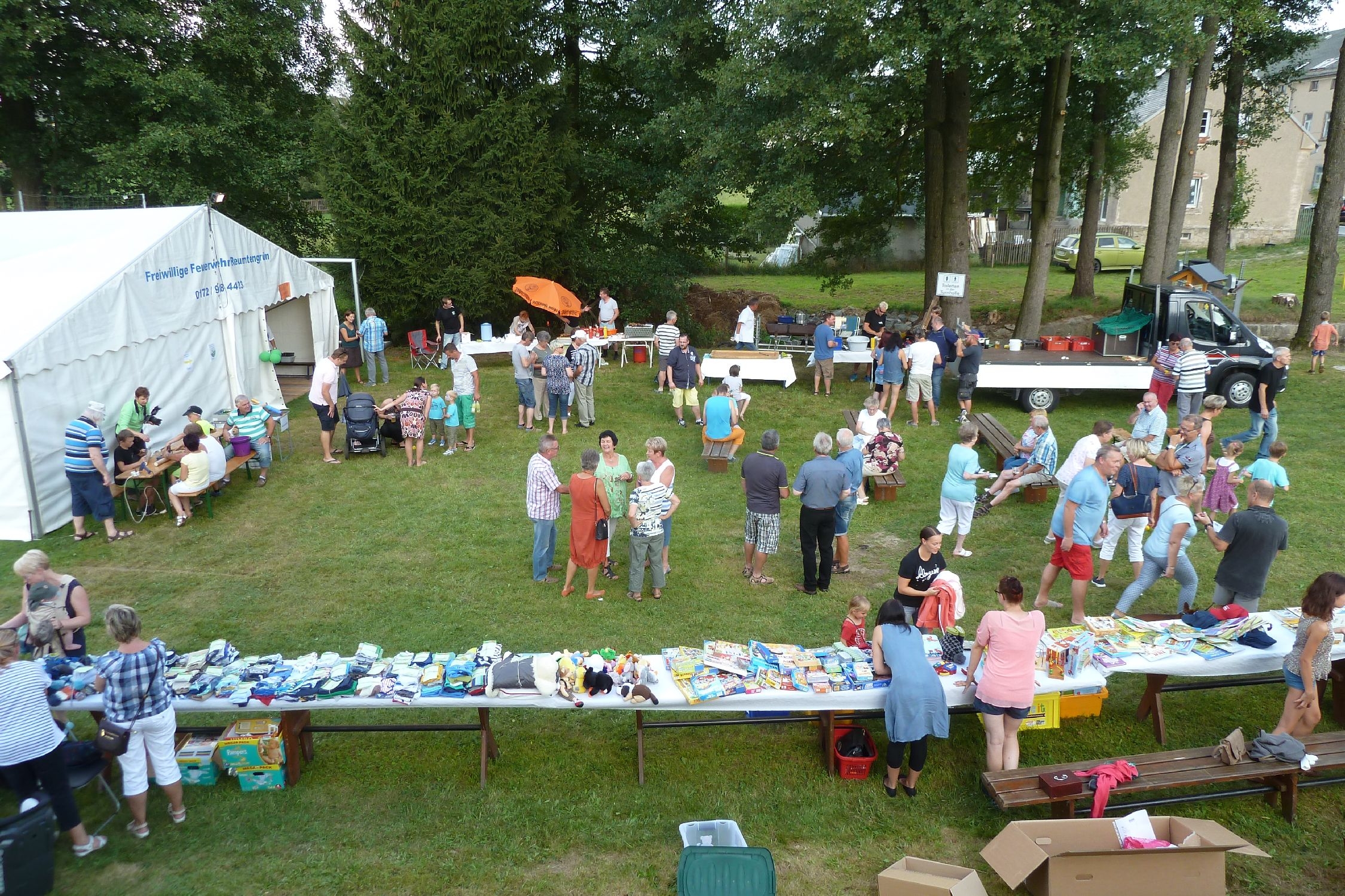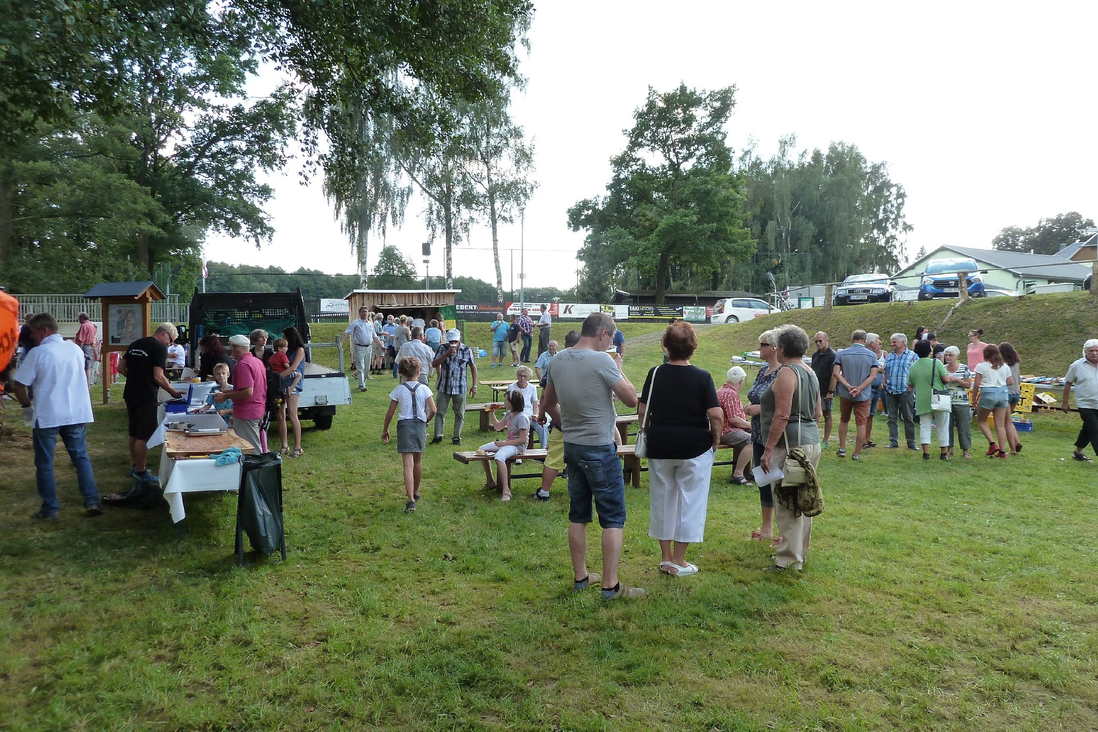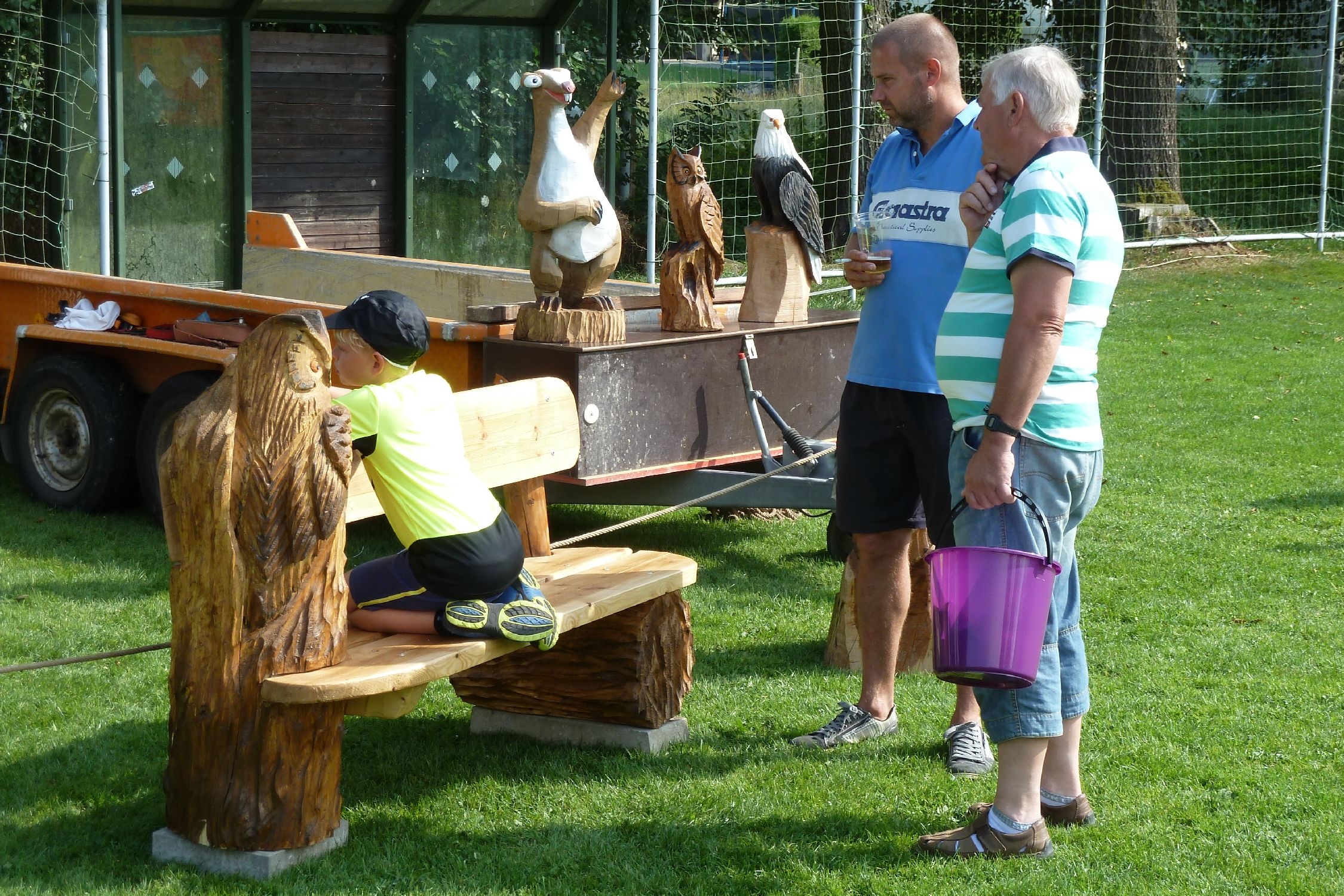 Am Sonntag, den 10.09.2016, feierte die Ortschaft Reumtengrün ihr erstes Dorffest und kann dabei auf eine äußerst gelungene Veranstaltung zurückblicken. Der Erfolg war dabei nicht nur dem fantastischen Wetter geschuldet. In einer beispielhaften Zusammenarbeit von allen Vereinen der Ortschaft und vielen mit Reumtengrün verbundenen Gewerbetreibenden konnte das umfangreiche Festprogramm dann auch so in vollem Umfang durchgeführt werden. Die Nachmittag-Veranstaltungen waren den Familien und deren Kinder gewidmet, welche sämtliche Programme sehr zahlreich dankend angenommen haben. Neben dem Kinderschminken sorgten ein Flohmarkt, ein Streichelzoo, das Fahren mit dem Minibagger, verschienen Quiz zum Fisch-Ort-Badverein, dem Torwandschießen und Löschübungen für kurze Weile am Nachmittag. Beeindruckend war auch die Leistung des Kettensägemeisters gewesen. Das Wehranstauen mit abschließenden Entenrennen waren eine weitere Attraktion an diesem Nachmittag. Neben dem gegrillten Wildschwein, Steaks, Rostern und Fischvariationen konnte mit verschiedenen Kuchen der große und kleine Hunger gestillt werden. Für den großen Durst war das Angebot ebenso reichhaltig. Der Abend war dann bis in die späten Nachstunden geprägt von einer Musikveranstaltung mit Modenschau und einer Verlosung in einem proppenvollen Festzelt. Ein besonderer Höhepunkt war die Versteigerung einer opulent gefertigten hölzernen Eule, welche durch einen ortsansässigen jungen Motorsägen-Künstler in sagenhaft kurzer Zeit auf dem Festgelände vor den Augen der Besucher gestaltet wurde. Der nicht gerade geringe Versteigerungserlös ergeht in Einvernehmen aller Organisatoren an den erst vor zwei Jahren gegründeten Angelverein Reumtengrün e. V.. Schon bei der Planung des Dorffestes waren sich alle beteiligten Organisatoren einig, die unermüdlichen Aktivitäten des Angelvereins bei der Sanierung des verwahrlosten Terrains rund um den Rosensee in der Form zu würdigen, dass man in diesem Jahr den Gewinn aus den Einnahmen diesem Verein zugute kommen lässt. Eine absolut richtige Entscheidung.