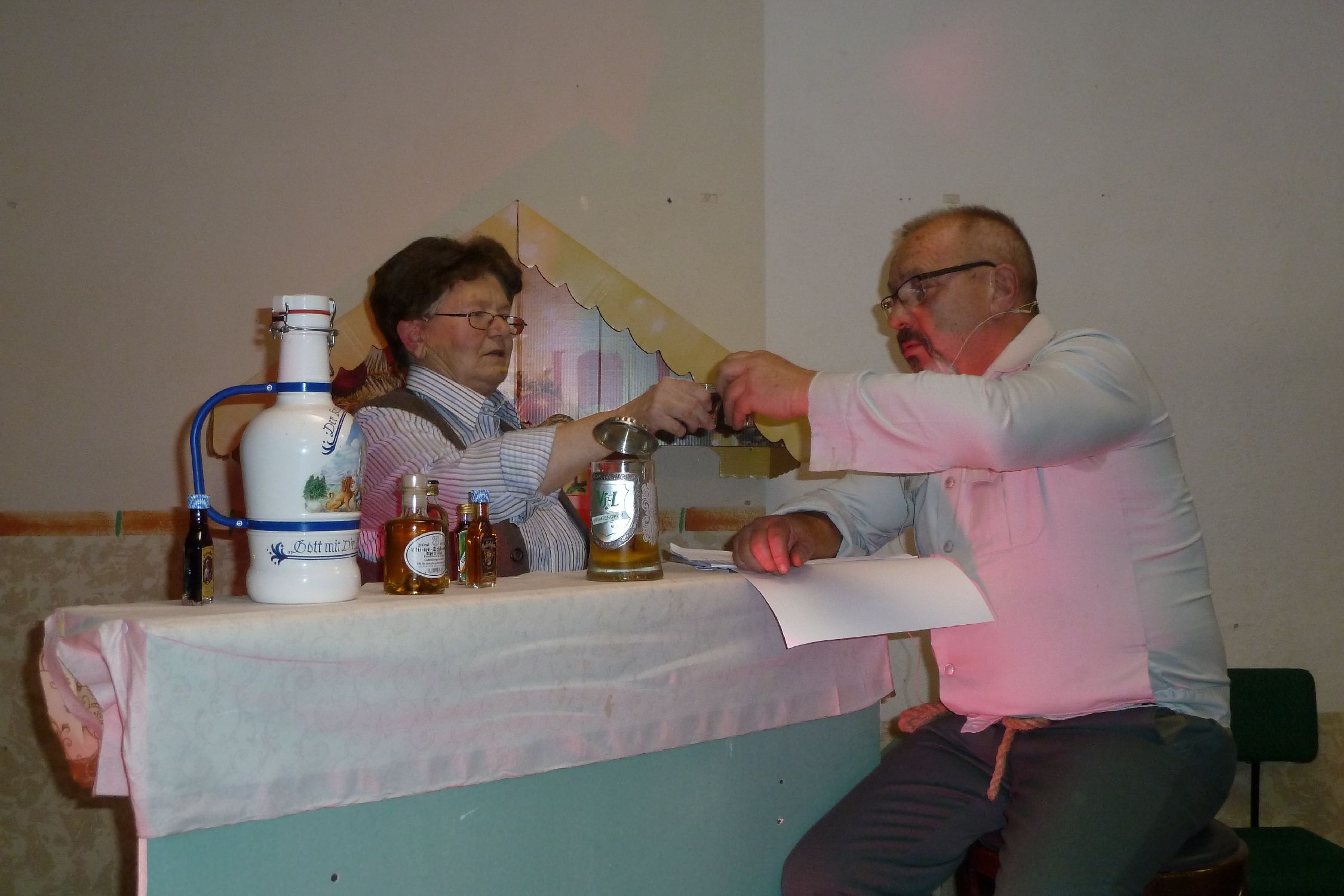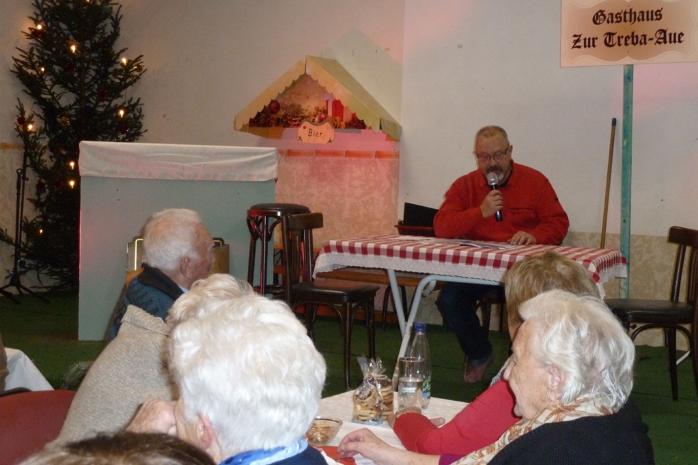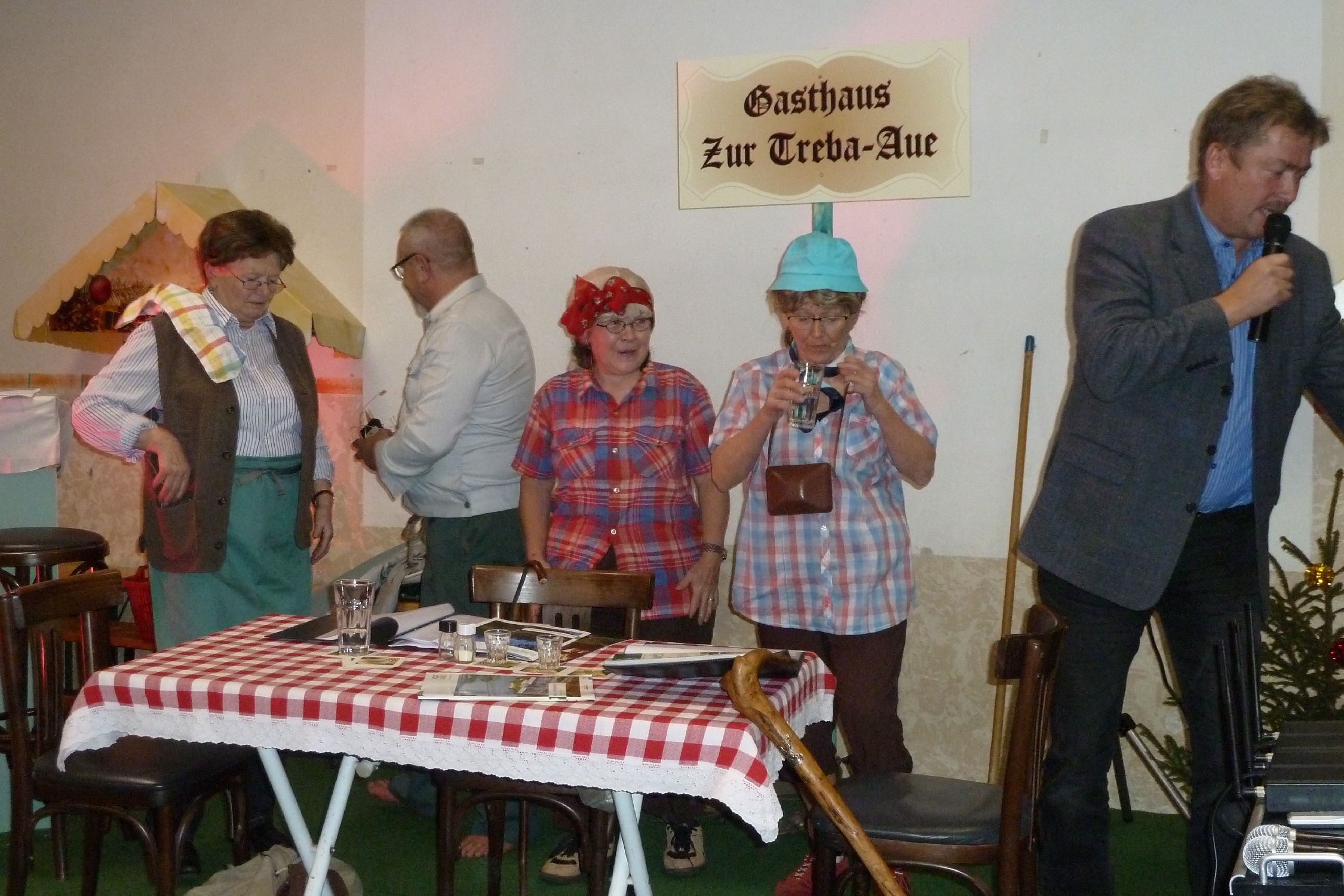Nach Kaffee und Stollen erwartete die Besucher eine Posse der Trebatal-Schrapnellen. Es wurde wieder das Dorfleben, in einer ominösen Kneipe nebst eigenbrötlerischem Wirt, mit noch seltsameren Gästen und einem außer Rand und Band geratenen Reservepolizisten, auf die Schippe genommen.