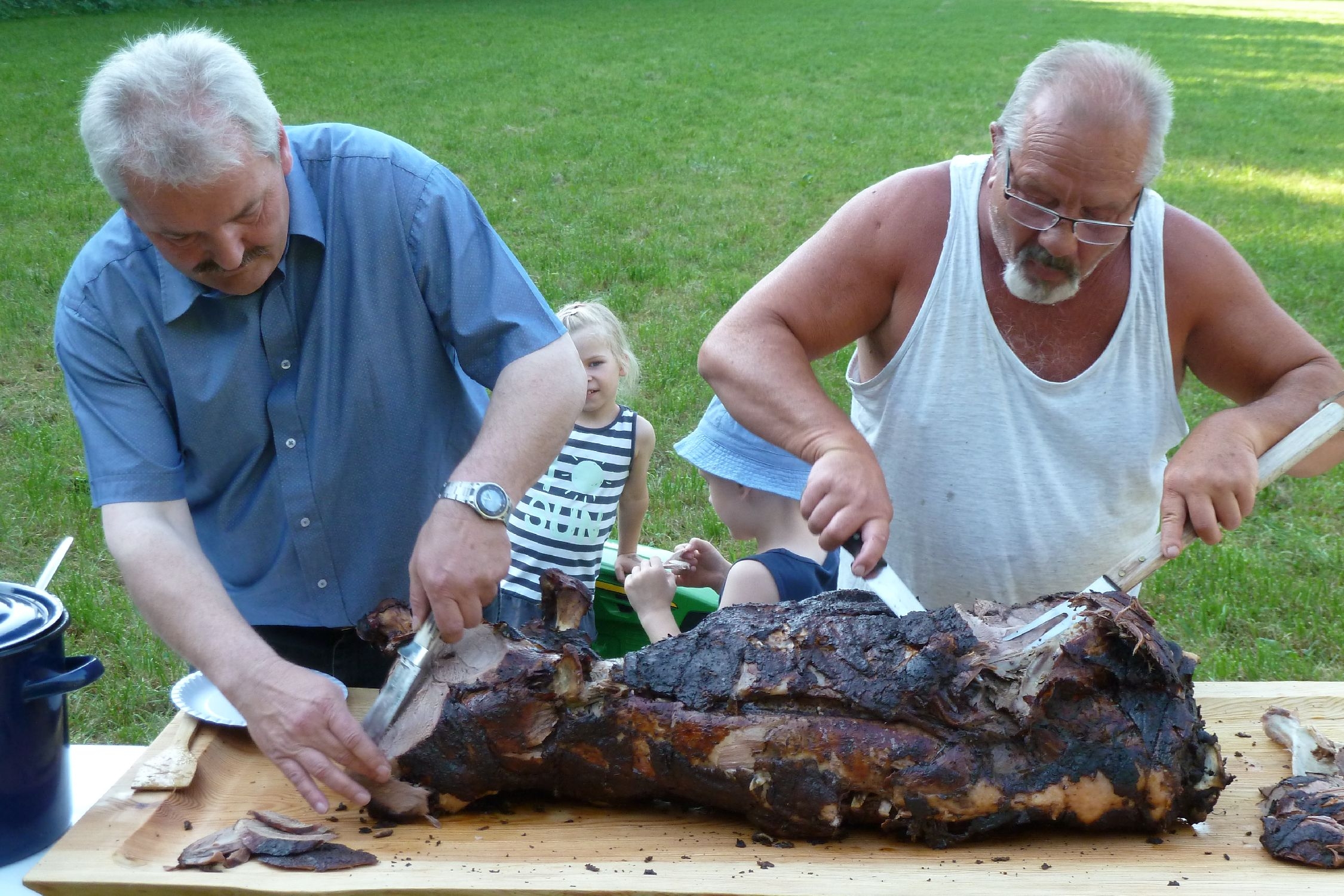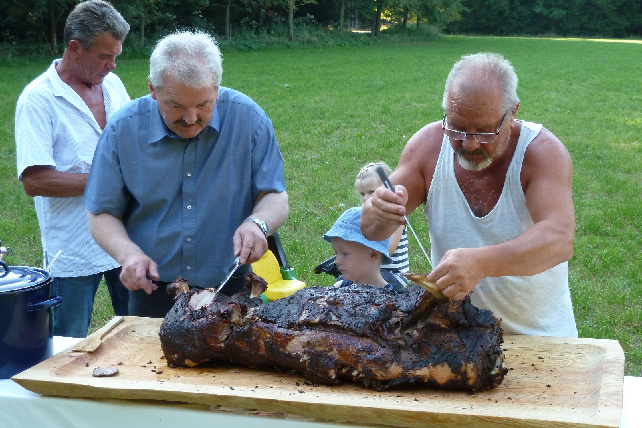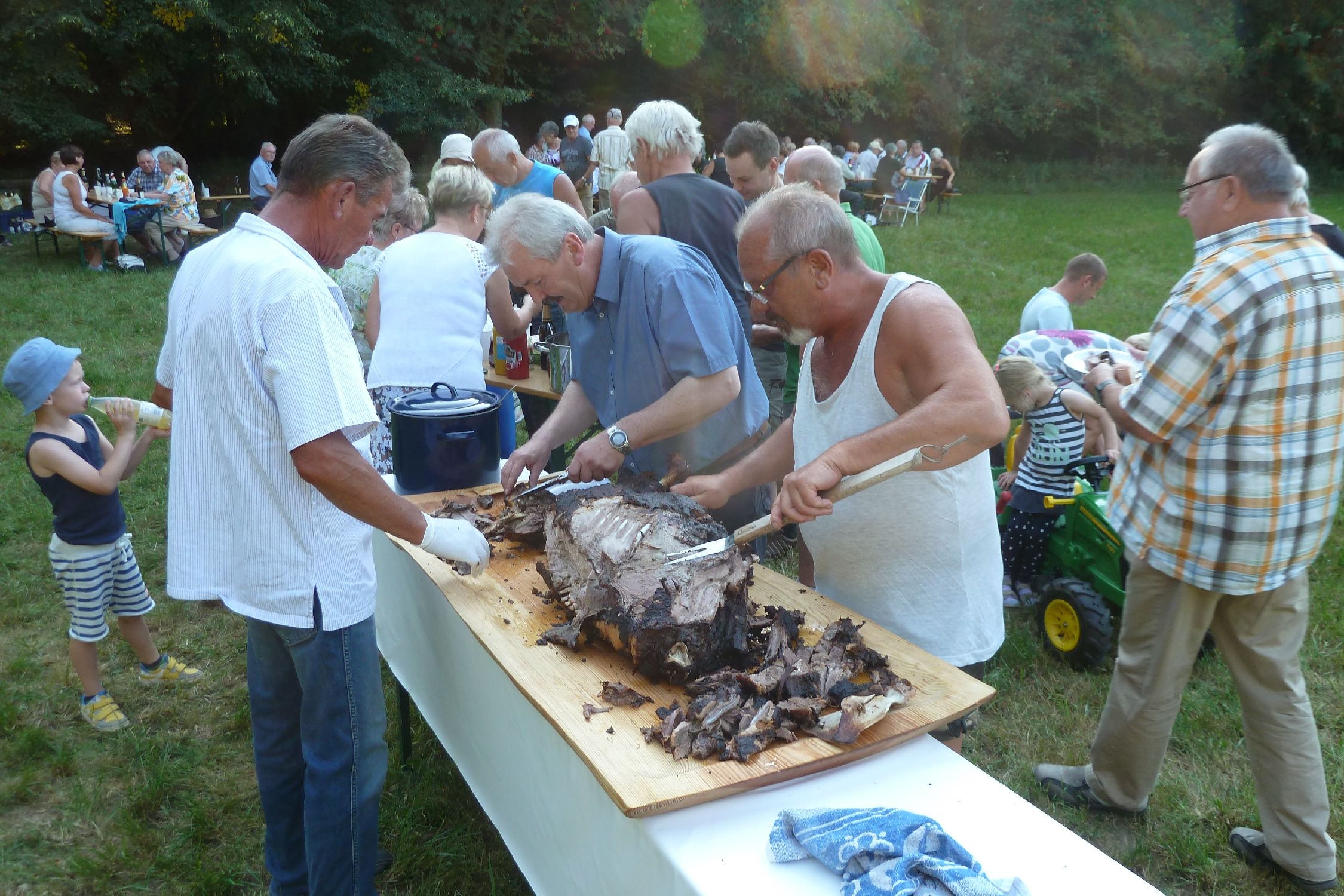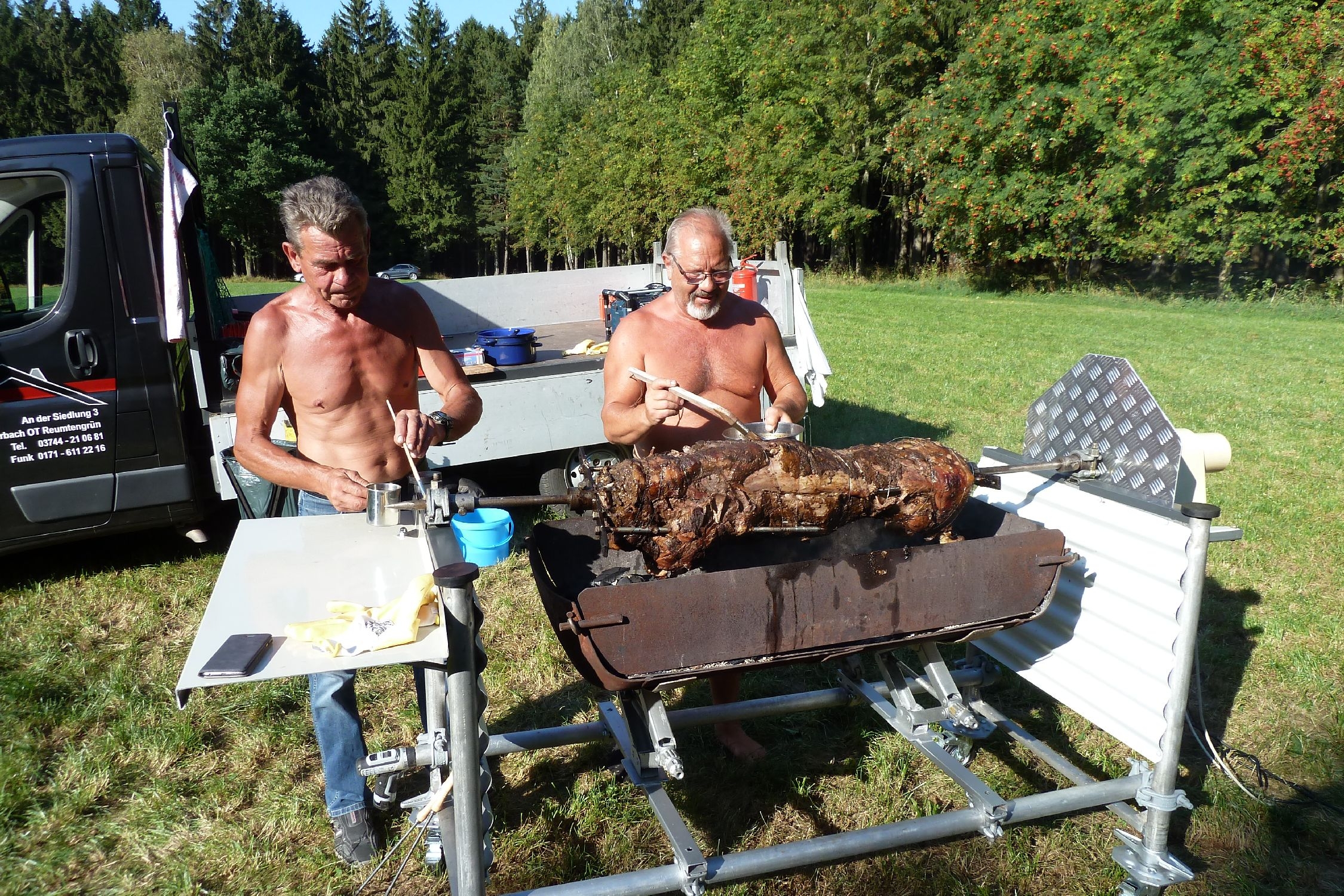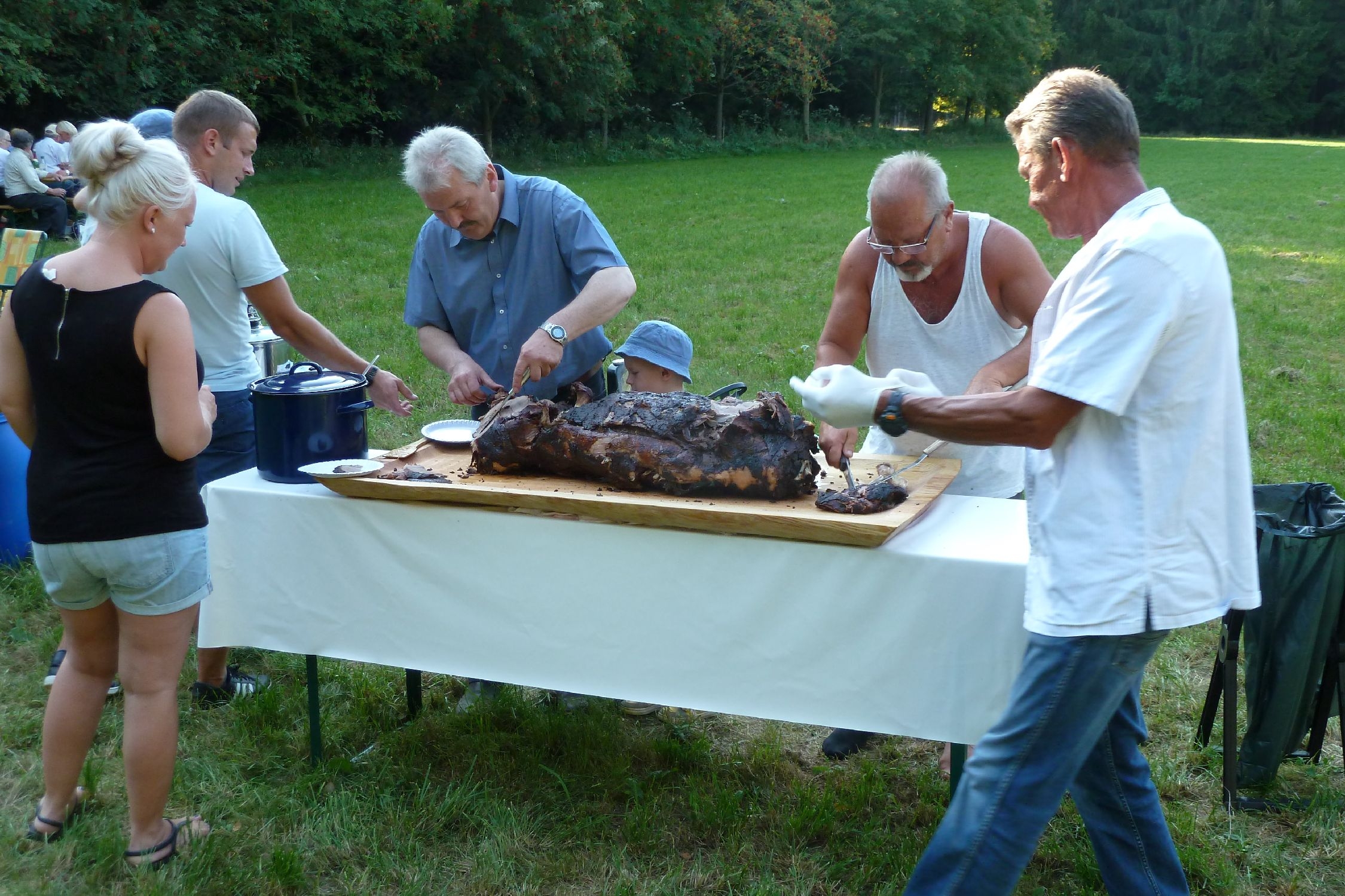 Diese läuteten dann auch zum Ansturm auf die gegrillte Wildsau ein. Bei reichlich köstlichen Essen und Trinken konnte jeder den Samstagabend genießen und ausklingen lassen.