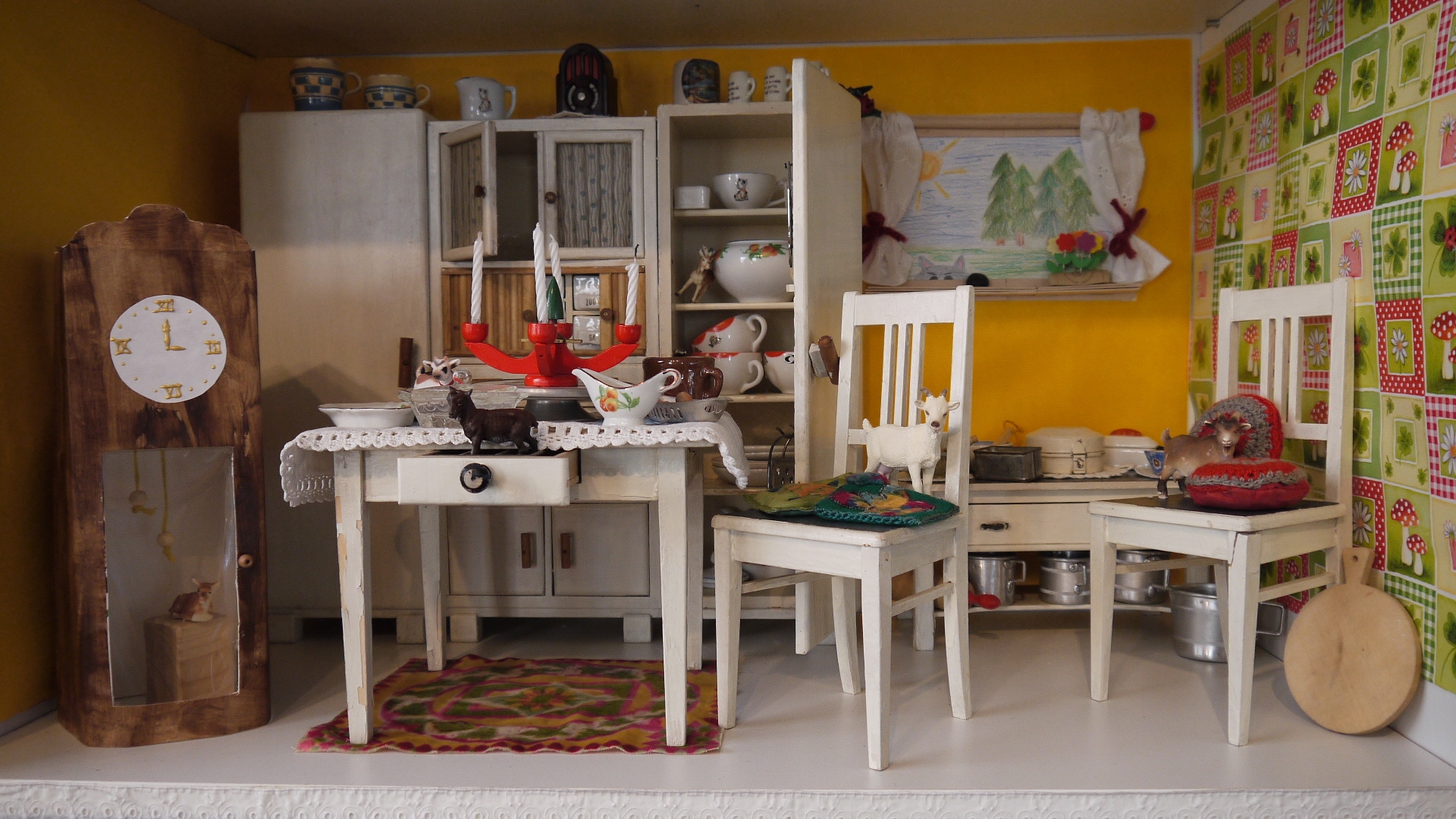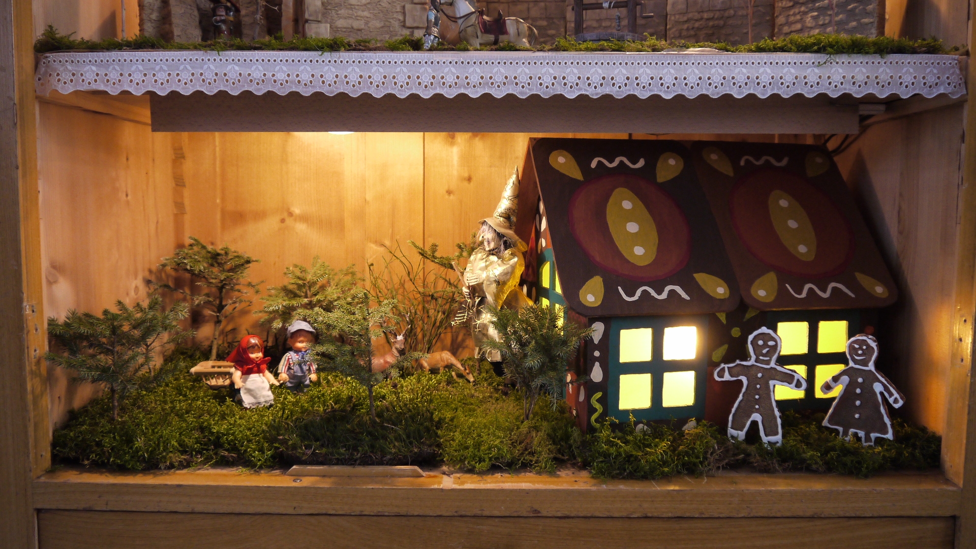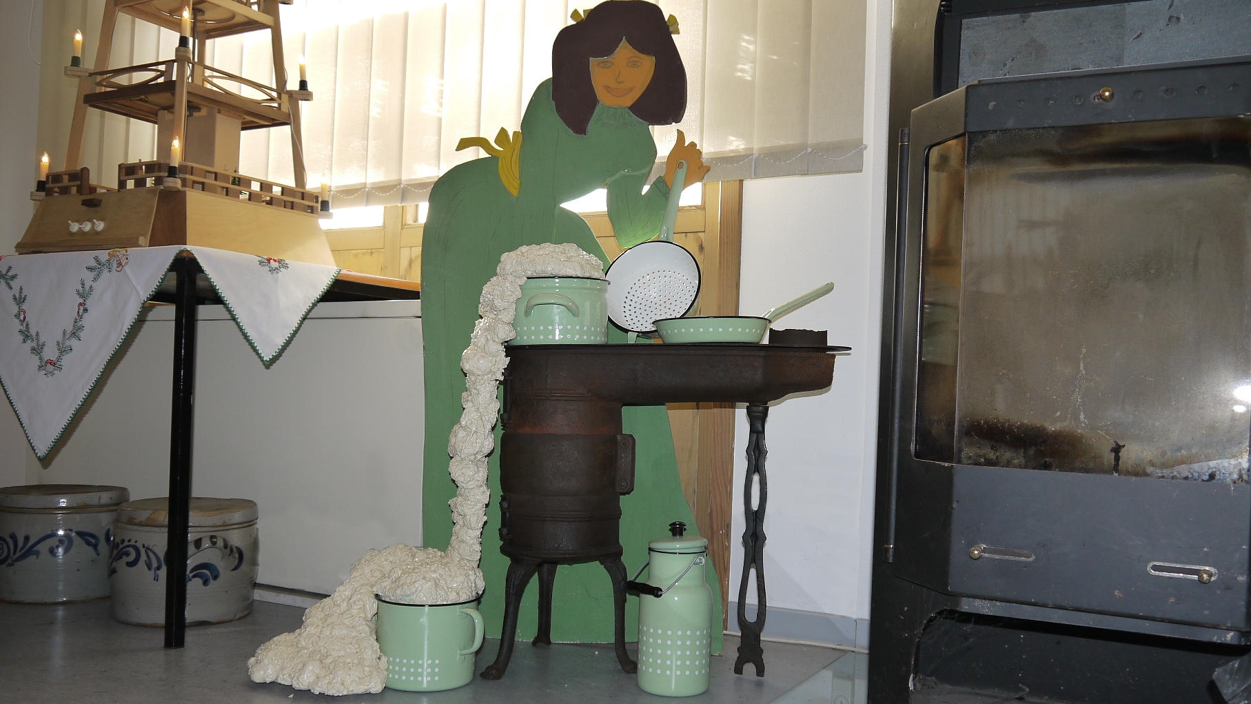 Am 1. Advent trafen sich wieder viele Reumtengrüner Bürger und Gäste im und vor dem Gebäude des Heimatvereins Reumtengrün. In diesem Jahr stand die Ausstellung unter dem Motto "Märchenhaftes zur Weihnachtszeit". Viele Wochen wurde an der Ausstellung gebastelt und es hat sich gelohnt! Im Vorraum empfing schon das Hexenhaus von Hänsel und Gretel die Besucher. Ein Zimmer voller Stroh, welches schon teilweise zu Gold gesponnen war und das hyperaktive Rumpelstilzchen zeigten das nächste Märchen. In weiteren Darstellungen konnte der Sternentaler, der Froschkönig, die Prinzessin auf der Erbse, der Wolf und die 7 Geißlein, König Drosselbart, Hase und Igel, das Rotkäppchen, das Rapunzel und Hänsel und Gretel bewundert werden. Außerdem suchte sich noch der süße Brei den Weg ins Freie, da uns das Zauberwort fehlte, um das Kochen anzuhalten. Dem gestiefelten Kater konnte man, wer wollte, sein Gesicht schenken. Neben den Märchenbildern waren noch sehr schöne alte Kaufmannsläden und ein Zugbrett zu bestaunen.