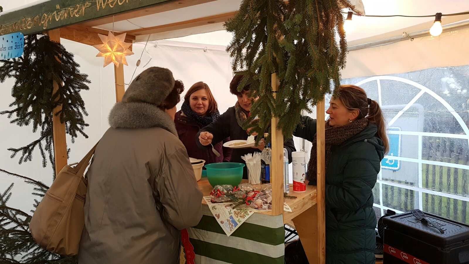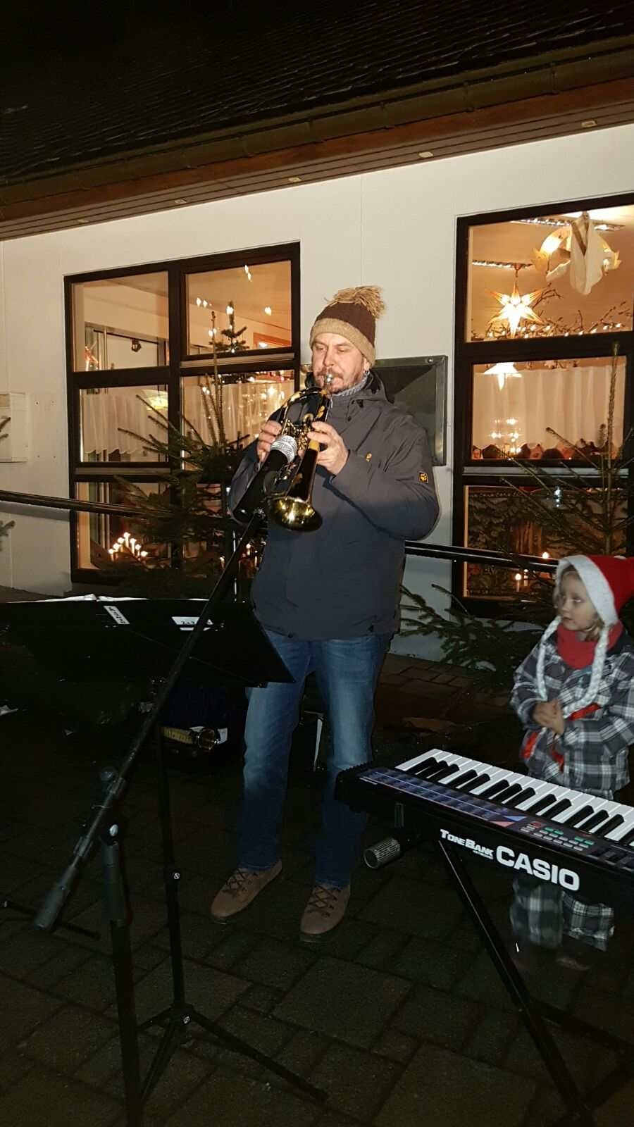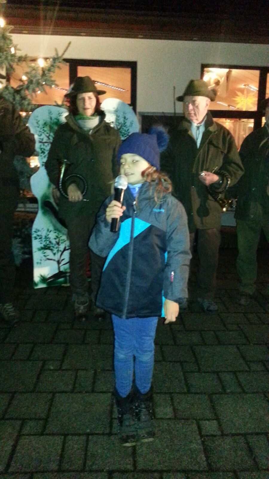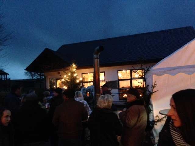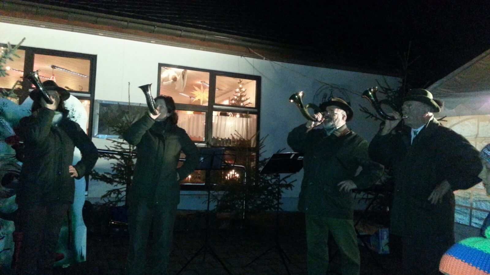 Mittleweile füllte sich auch der Platz vor dem Vereinsgebäude. Neben Glühwein und Rostern konnten auch Süßigkeiten zur Kalorienzufuhr genascht werden. Weihnachtliche Stimmung brachten uns wieder die Jagdhornbläser mit ihrem Programm.