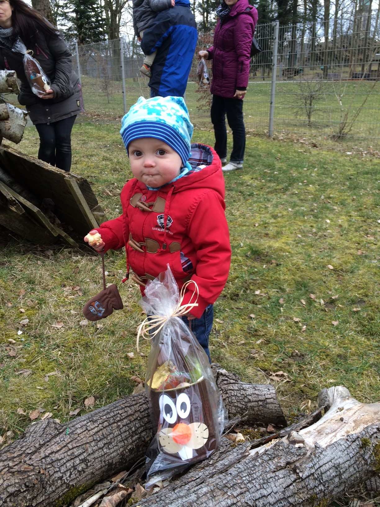 Jedes Jahr feiern die „Waldwichtel“ einen Oma – Opa – Tag. Dieses Jahr sollte es ein ganz besonderer Tag sein. Am Gründonnerstag, den 24.03.02016 trafen sich alle im Falkensteiner Tierpark. Die Omas und Opas kamen um 15.00 Uhr mit Ihren PKW`s und die „Waldwichtelkinder“ wurden mit einem Sonderbus zum Tierpark chauffiert. Nach herzlichen Begrüßungsworten der Kita – Leiterin Ramona Kraus und einem kleinen Programm mit verschiedenen Osterliedern durften endlich Oma und Opa ihre Enkelkinder in Empfang nehmen. Am Eingang des Tierparks war ordentlich aufgetischt. Es gab viele verschiedene selbst gebackene Kuchen. Dazu gab es Saft, Tee oder Kaffee. Nach der Stärkung kam aber endlich das, worauf sich alle am meisten gefreut hatten – das Osternestersuchen. Der Osterhase war fleißig gewesen und hatte für jedes Kind, irgendwo im Tierpark, ein Osternest versteckt. Mit Begeisterung und guter Laune waren bald alle Nester in ihren Verstecken gefunden. Den Osterhasen aber hat niemand gesehen. Im Anschluss gab es noch einen Rundgang durch den Tierpark. Es konnte viele Tiere beobachtet und bestaunt werden. Insgesamt war es, auch wenn sich die Sonne hinter den Wolken versteckt hatte, ein wunderschöner Oma – Opa – Tag.