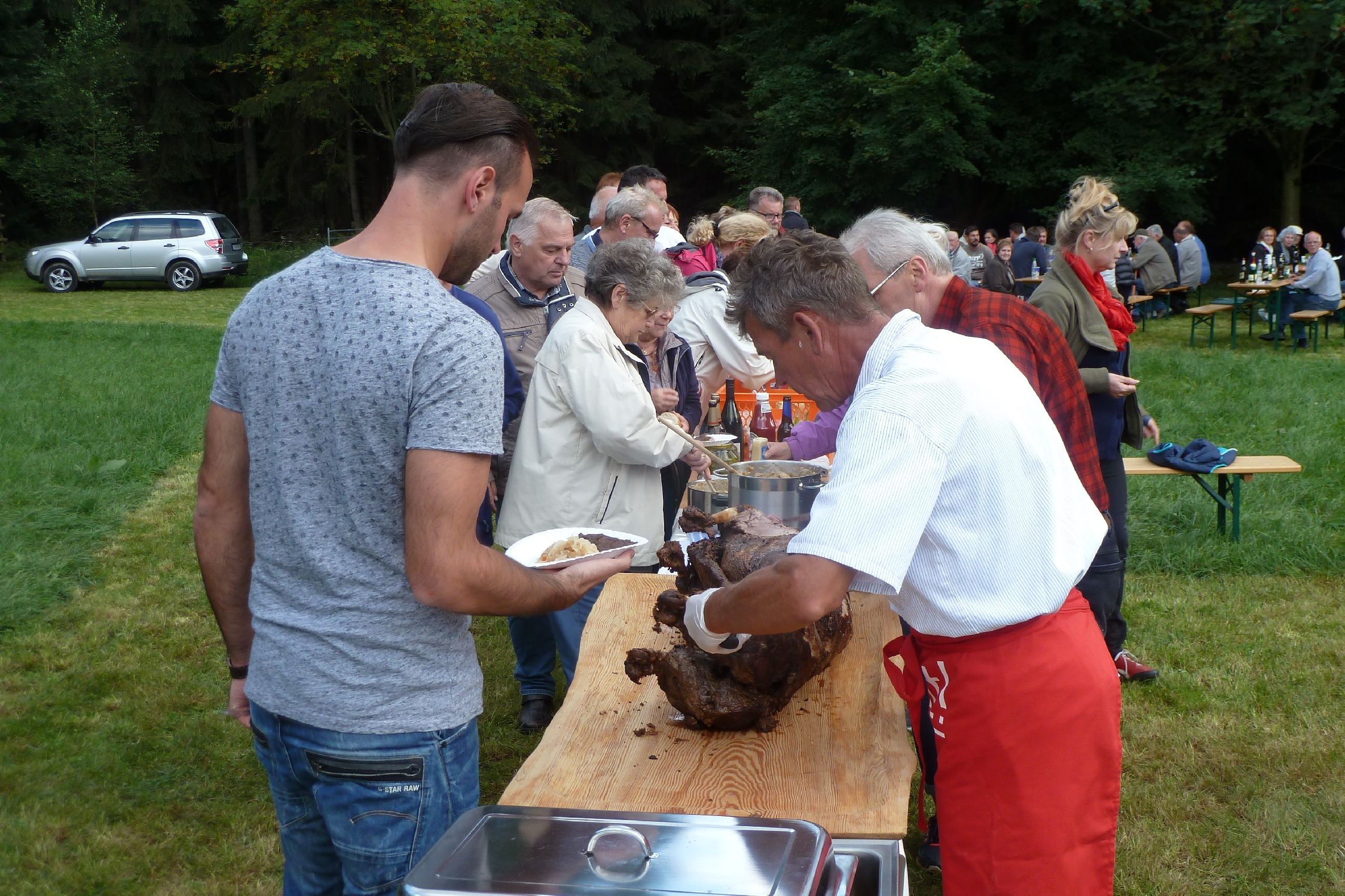 Wildschwein geschossen, Grillmeister nach Termin gefragt, Waldi hatte noch einen Termin frei, Wetter hat gepasst, Wildschwein und Sauerkraut haben vorzüglich geschmeckt, Getränke ausreichend vorhanden, alle Gästen waren zufrieden, großer Dank an die Jäger, den Jagdvorstand und den Grillmeister!! Dies im Telegrammstil zum diesjährigen Grillfest der Jagdgenossenschaft!!!