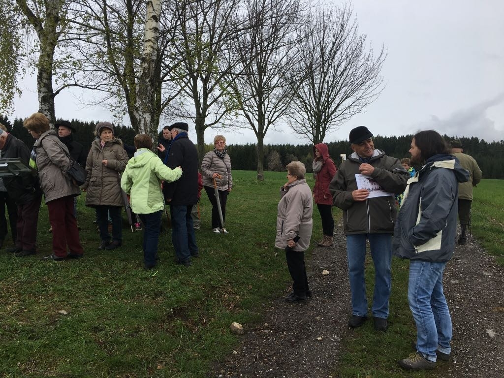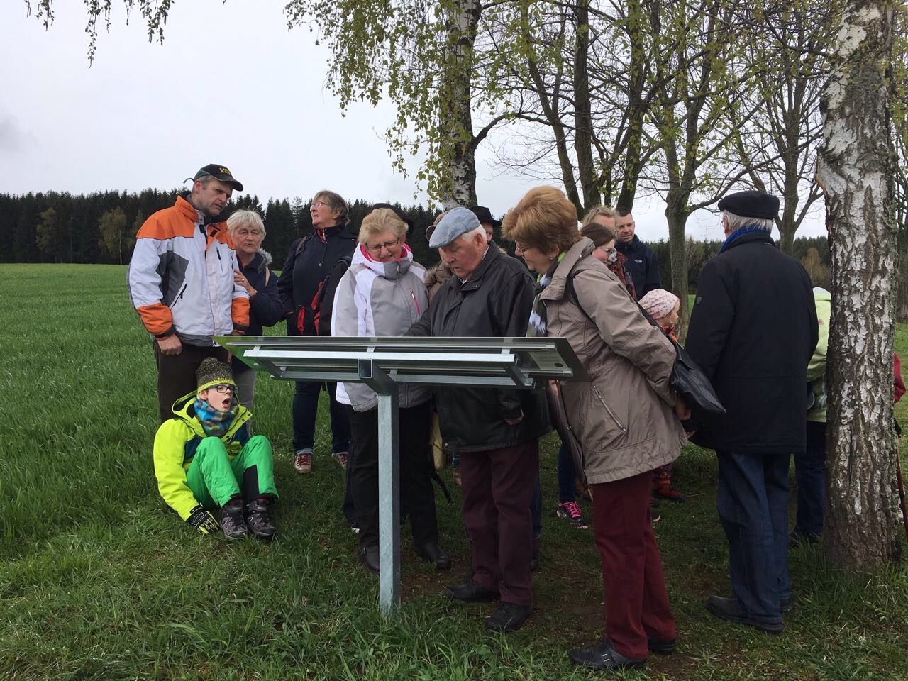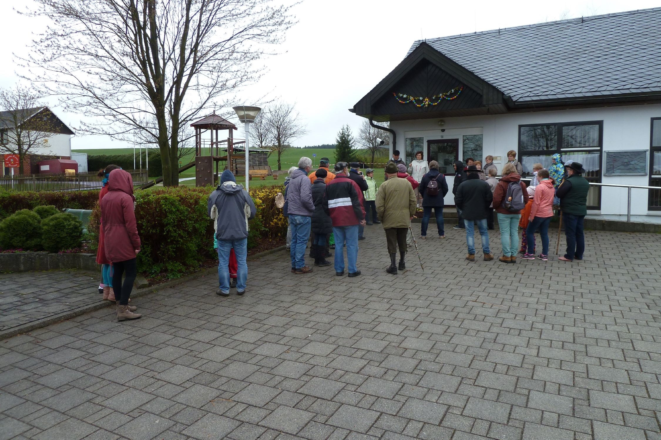 April, April, der weiß nicht was er will, mal Regen und mal Sonnenschein, dann regnet’s wieder zwischendrein…. So wurde das Wetter in diesem Jahr für das Osterwochenende vorhergesagt. Da die Heimatfreunde für Ostern wieder eine Wanderung geplant hatten, wurden ständig die Wettervorhersagen geschaut. Für den Ostermontag gab es nun Plan A, B oder C , um je nach Wetterlage reagieren zu können. Letztendlich kam Plan B zum Einsatz. Dies bedeutete eine verkürzte Wanderung mit anschließendem Grillen am Heimatverein und dem Kaffeetrinken wie gewohnt in der Heimatstube. Trotz des unbeständigen Wetters schlossen sich ca 35 Wanderfreunde dem Wanderführer an. Ab Heimatverein ging es über den Steig zur ersten Station, der ehemaligen Knochenmühle. Unweit dieser konnte noch auf die damaligen Halden der Wismut verwiesen werden. Als Nächstes wurde auf die Historie des nicht mehr existierenden Gasthof Geßner verwiesen. Dieses Areal wird jetzt von der Agrar GmbH genutzt. Am Winkelmanns Weg konnte auf dem neuen Panoramabild ein Blick auf das weitere Vogtland und das Erzgebirge geworfen werden. Durch den Wald ging es wieder in Richtung Heimatstube. Die Wanderung dauerte ungefähr 2 Stunden und es hat in dieser Zeit nicht geregnet! Mit Rostern und später bei Kaffee und selbst gebackenen Kuchen konnte sich noch gestärkt werden.