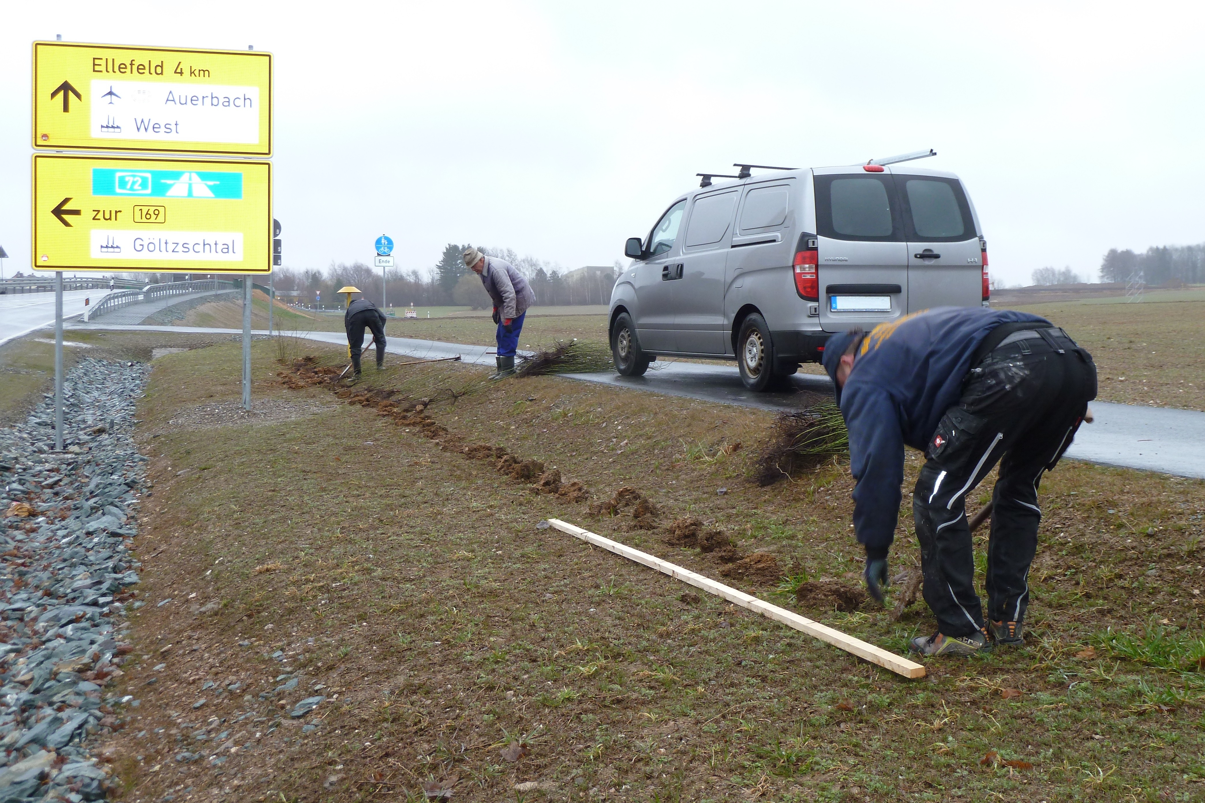 Am Samstag, den 18. März wurden von einigen Ortschaftsräten und einem Reumtengrüner Bürger 80 Buschrosen am Fuß-Radweg an der Auerbacher Straße gepflanzt.
