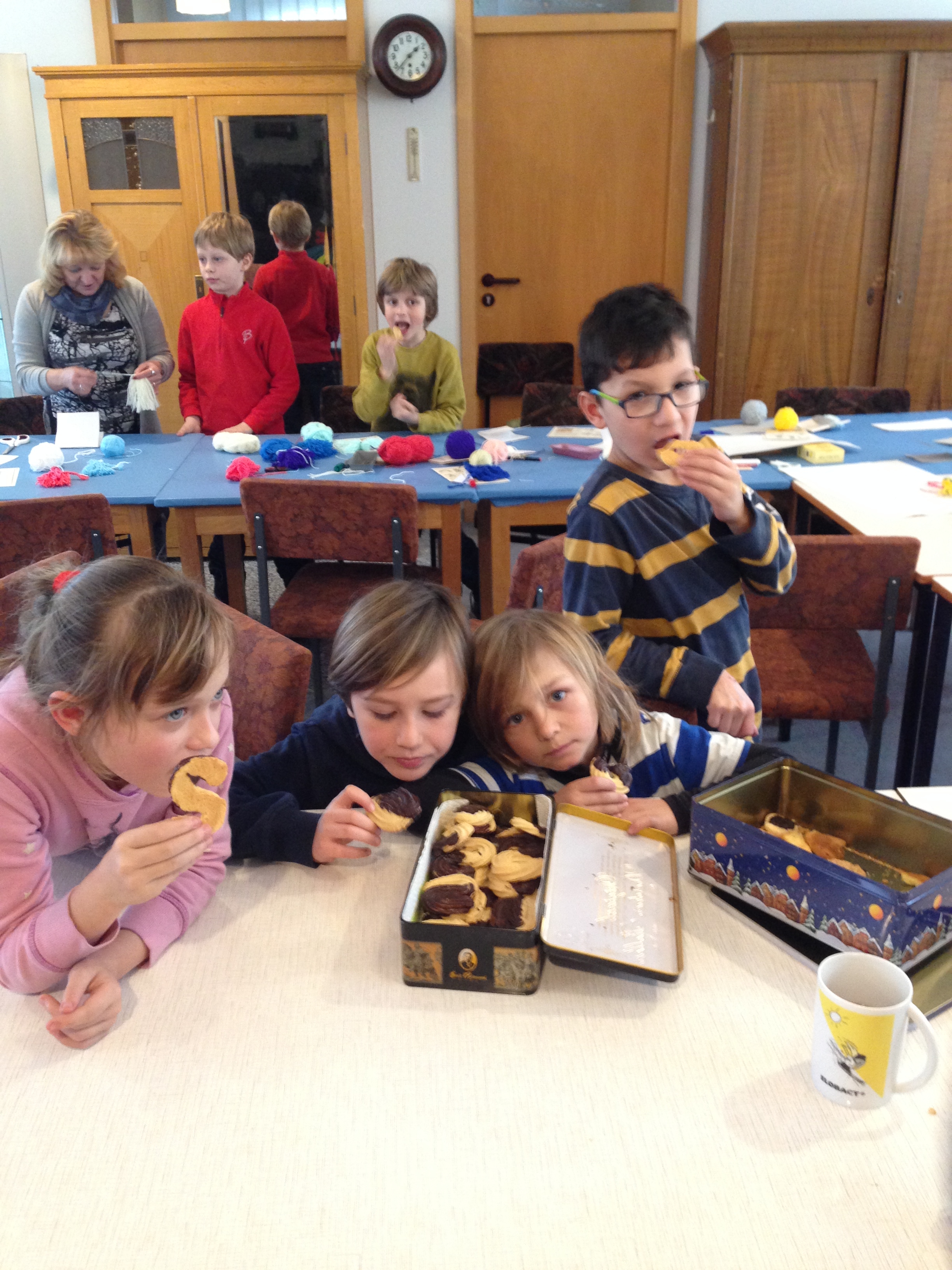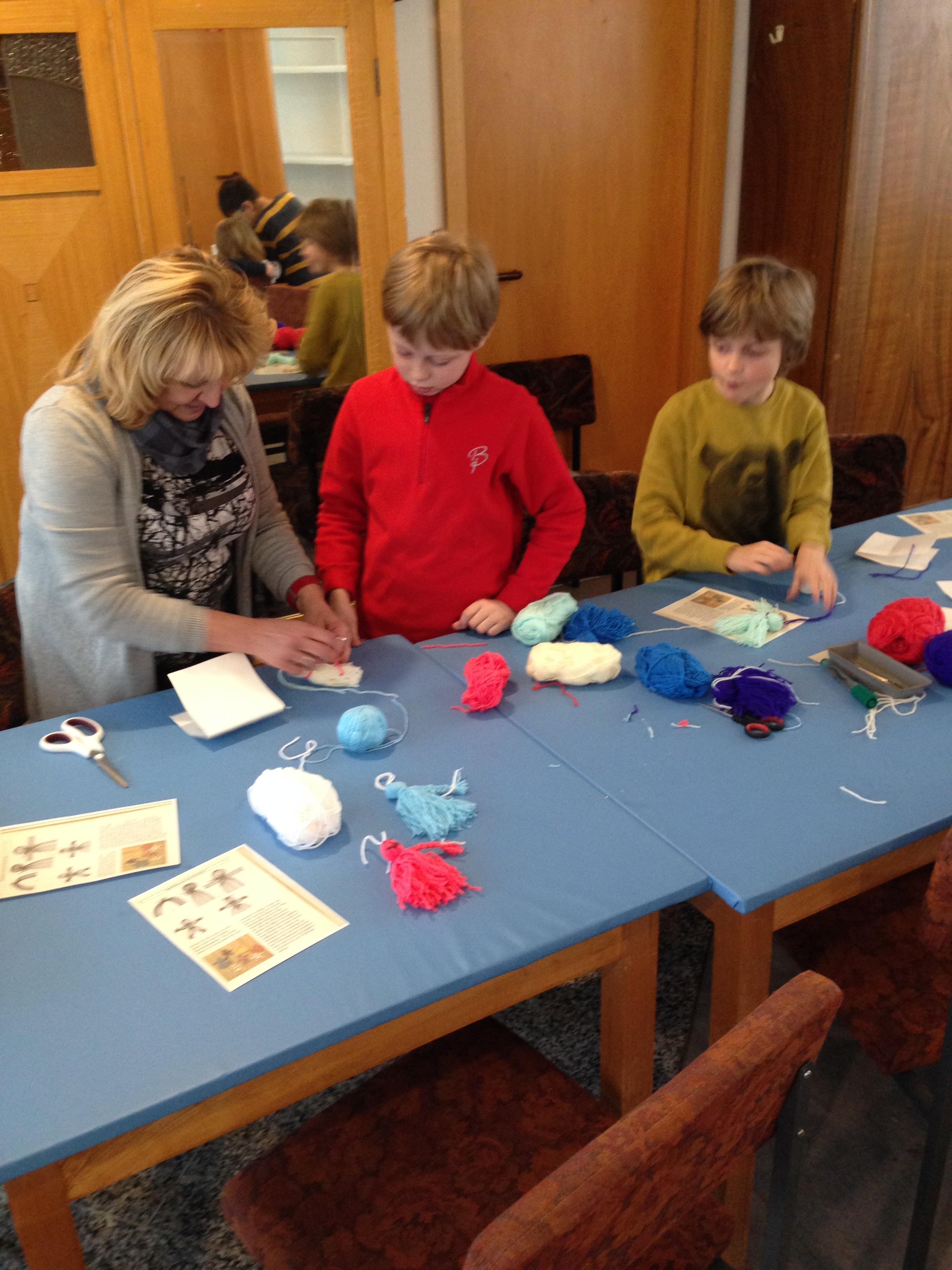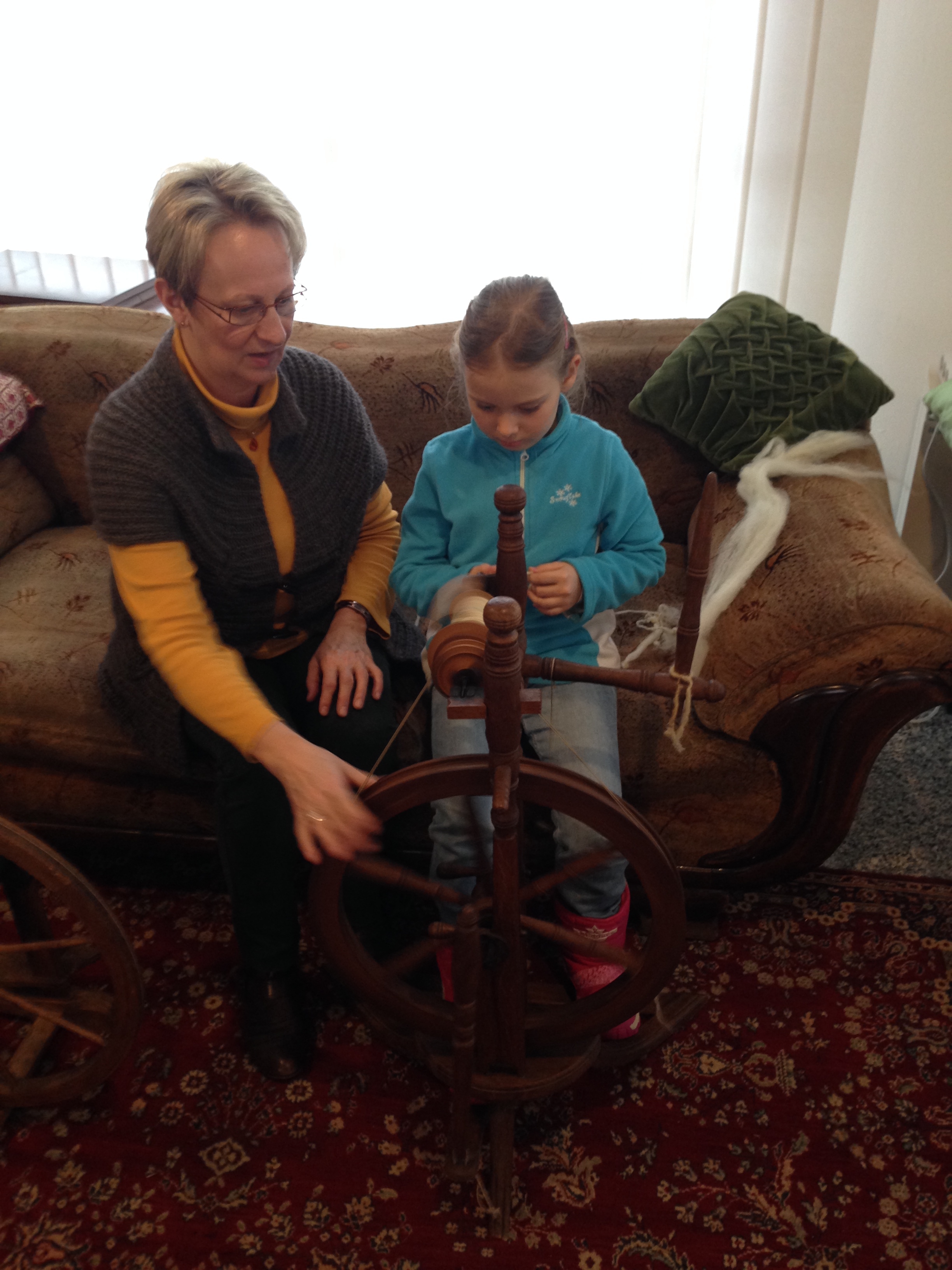 Es mag etwas verwirrend klingen, aber wir haben im wahrsten Sinne des Wortes mit den Kinder der AG Heimatkunde gesponnen. Sinn des Ganzen war es, die Kinder mit alten Handwerken vertraut zu machen. Erklärt wurde am Anfang woher die Wolle kommt. In unserem Falle von den Schafen. Weiterhin wurden die einzelnen Stufen der Aufbereitung der Schafwolle, von der Rohware bis zu den Produkten immer an entsprechenden Mustern gezeigt. Großen Spaß machten dann den Kindern die "Spinnversuche" am Spinnrad. Nebenbei konnten noch Stoffpüppchen aus der Wolle gefertigt werden.