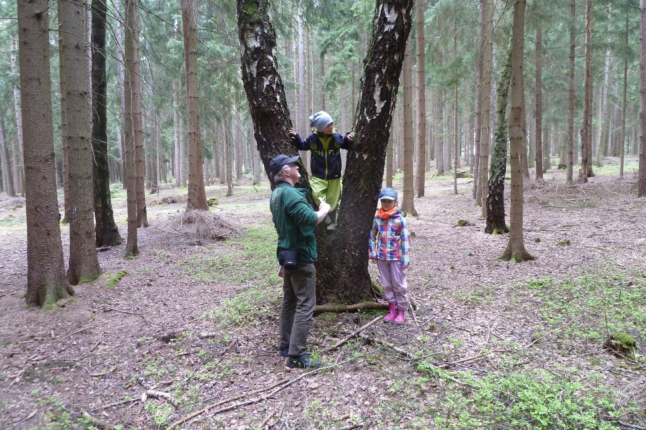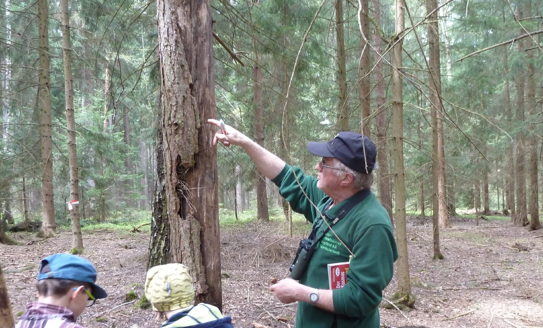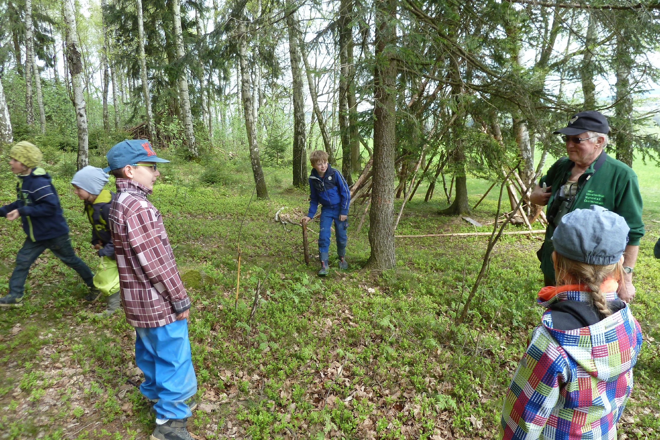 Die Heimatkundestunde der Kinder der ev. Grundschule in Reumtengrün fand am 3. Mai auf den Weg zum Wald und im Wald statt. Unter Leitung von Michael Thoß vom NUZ Oberlauterbach konnten den Kindern interssante Hinweise auf bestimmte Tiere gezeigt werden. Bereits auf den Weg zum Wald waren Sträucher zu sehen, an welchen die Rinden von einem Rehbock angeschürft waren. Eine Feldlärche trällerte über den Feldern ihr Lied. Michael Thoß hatte ein interaktives Buch dabei, mit welchem die Vogelstimmen nachempfunden werden konnten. An einem Baum war die Höhle von einem Specht zu sehen und auf dem Waldboden war ein Hinweis auf ein Reh zu finden. Sehenwerts war der Unterschupf für einen Vogel unter der Baumrinde. Bemerkenswert waren die vielen kleinen versteckten Hinweise für die verschiedenen Waldbewohner.