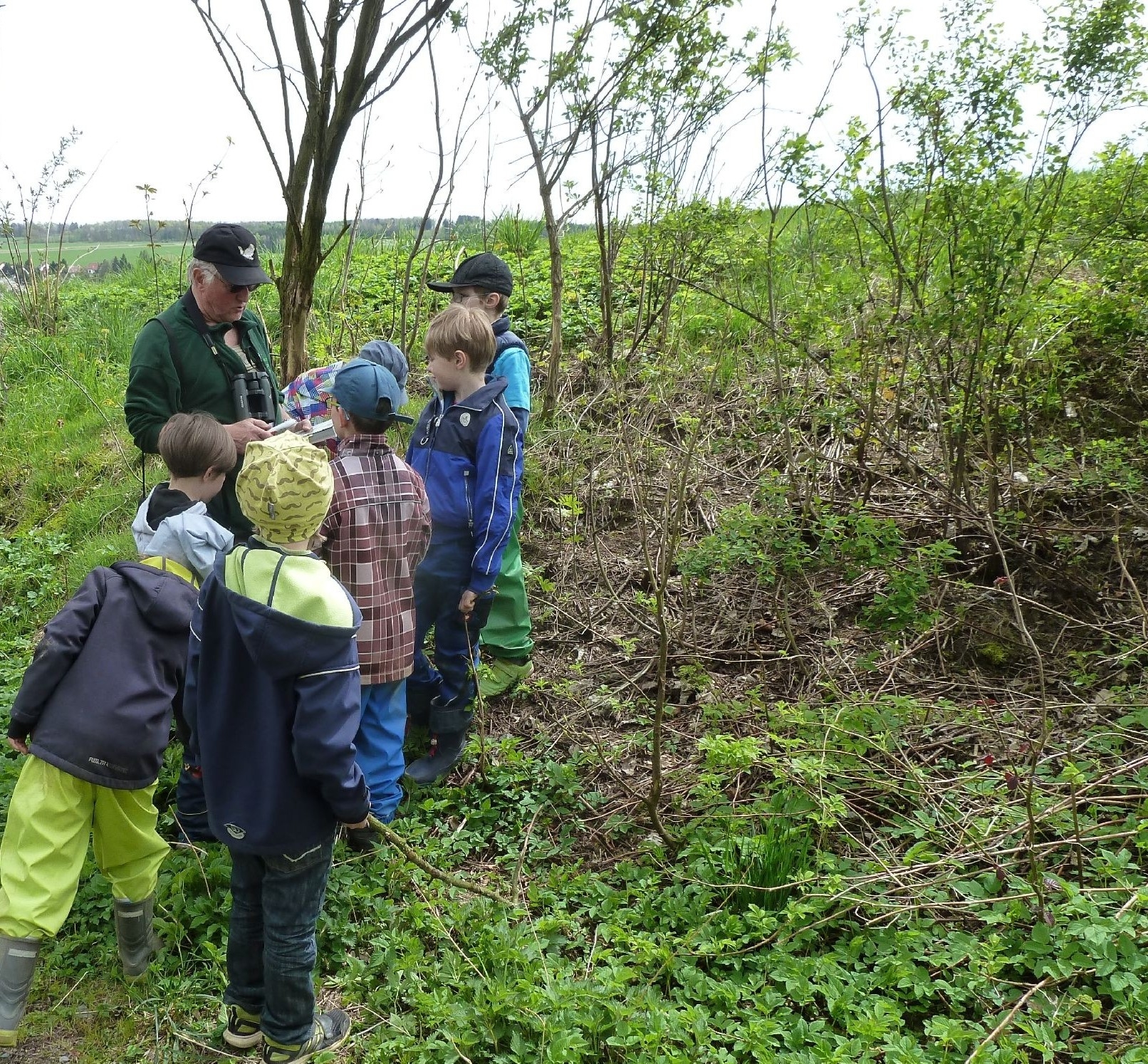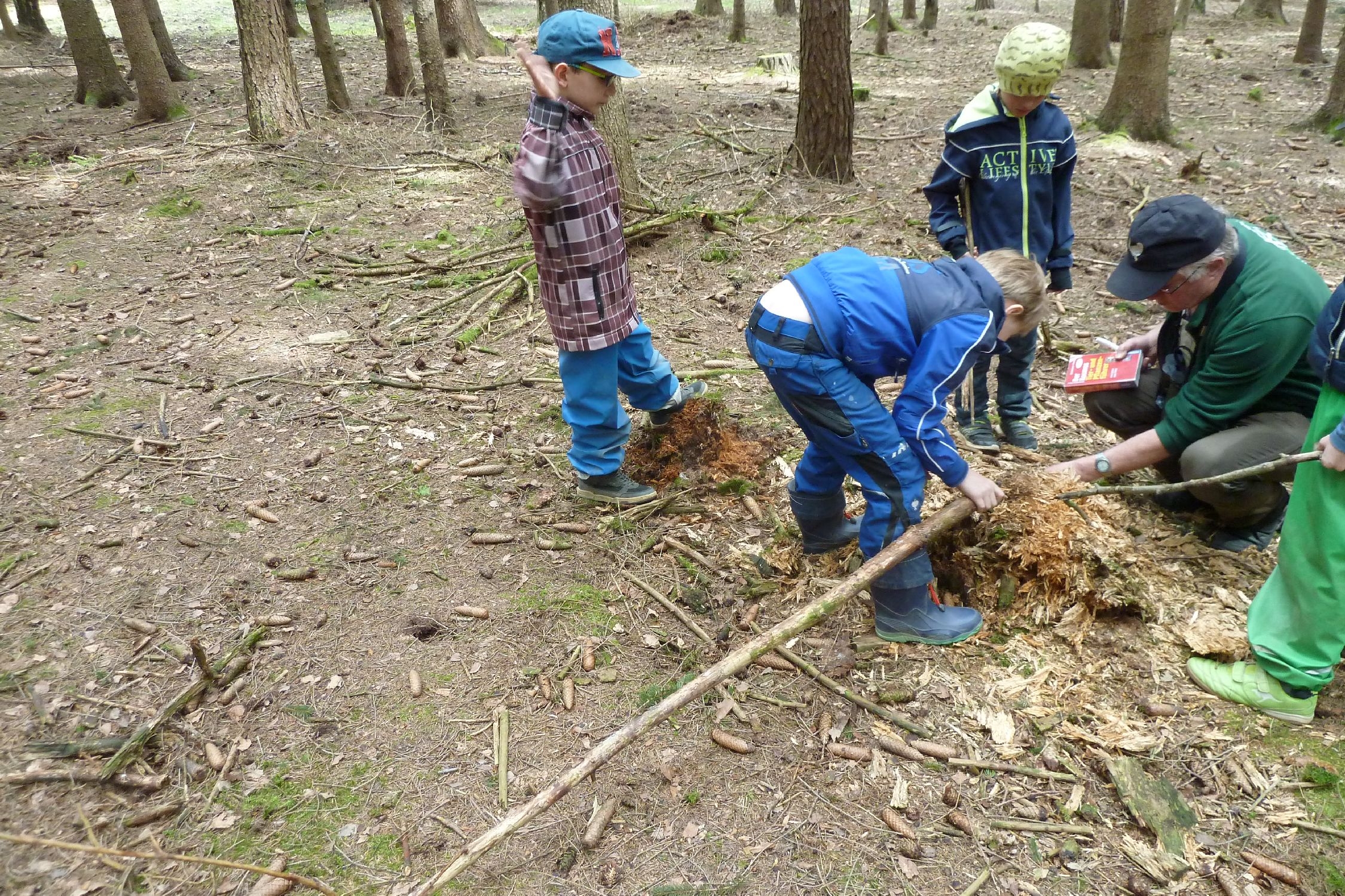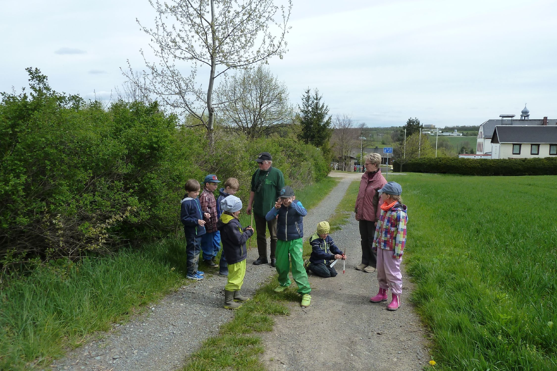 Die Heimatkundestunde der Kinder der ev. Grundschule in Reumtengrün fand am 3. Mai auf den Weg zum Wald und im Wald statt. Unter Leitung von Michael Thoß vom NUZ Oberlauterbach konnten den Kindern interssante Hinweise auf bestimmte Tiere gezeigt werden. Bereits auf den Weg zum Wald waren Sträucher zu sehen, an welchen die Rinden von einem Rehbock angeschürft waren. Eine Feldlärche trällerte über den Feldern ihr Lied. Michael Thoß hatte ein interaktives Buch dabei, mit welchem die Vogelstimmen nachempfunden werden konnten. An einem Baum war die Höhle von einem Specht zu sehen und auf dem Waldboden war ein Hinweis auf ein Reh zu finden. Sehenwerts war der Unterschupf für einen Vogel unter der Baumrinde. Bemerkenswert waren die vielen kleinen versteckten Hinweise für die verschiedenen Waldbewohner.