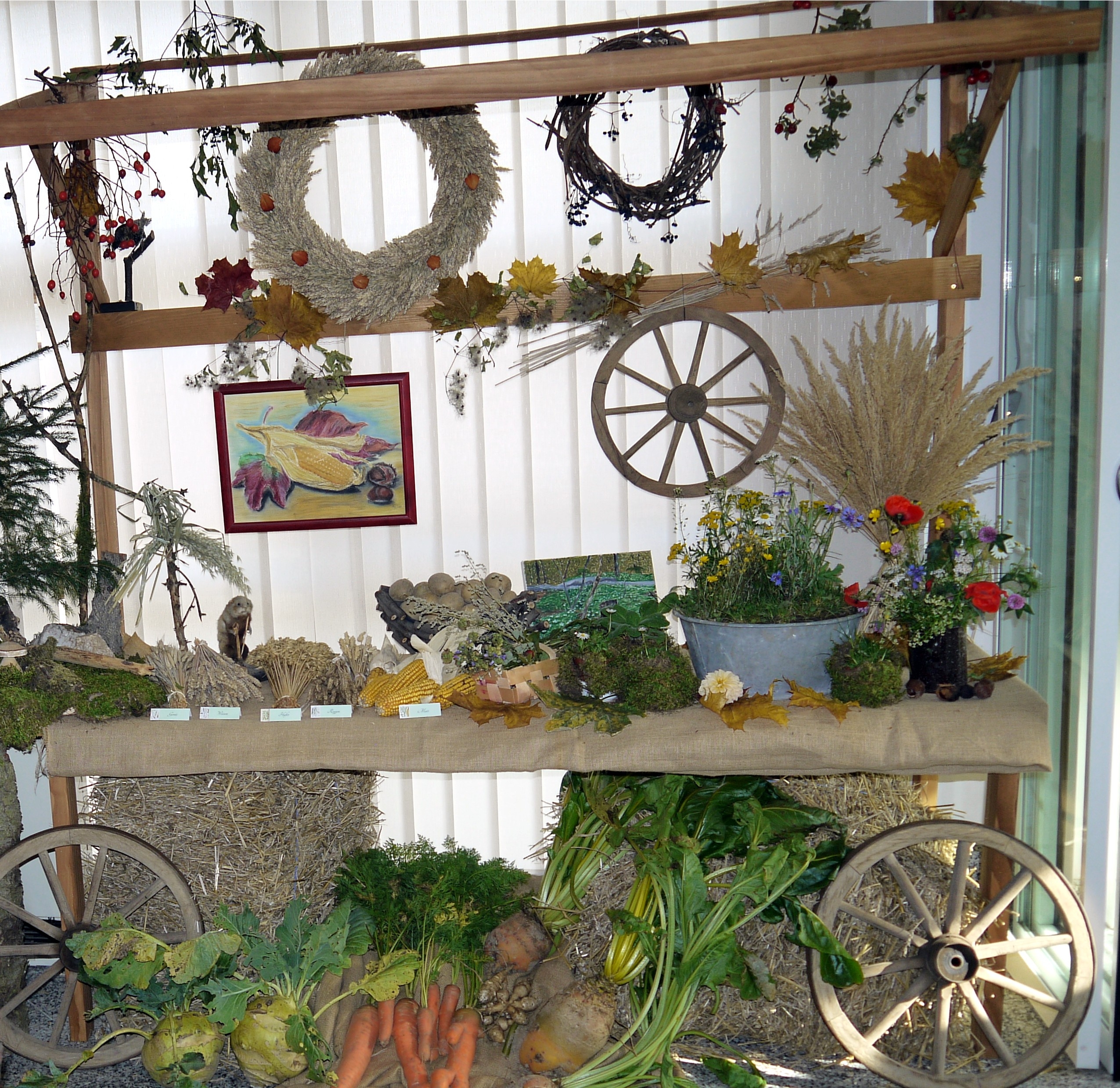Für den Kirmessamstag wurde die Heimatstube nach dem Motto " Die Flora im Wald, auf der Wiese und dem Feld" herrlich dekoriert. Es mangelte nicht an kreativen Ideen seitens der Heimatfreunde. Die Erntekrone, der Erntekranz und die Heuraupen wurden von einer Röthenbacher Familie gestaltet und uns zur Verfügung gestellt.