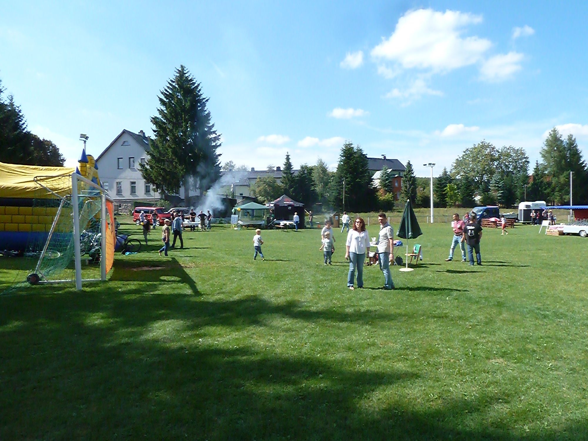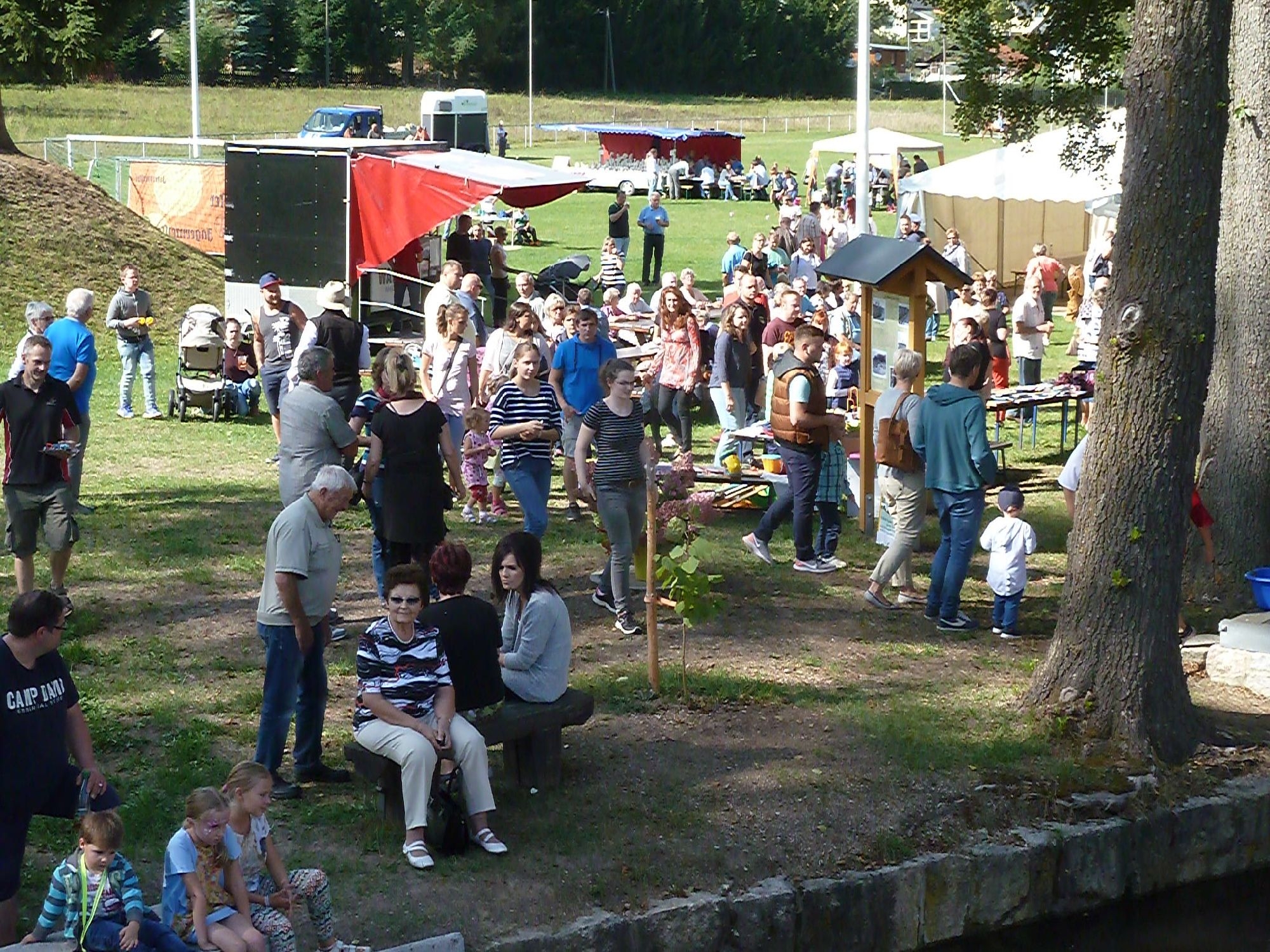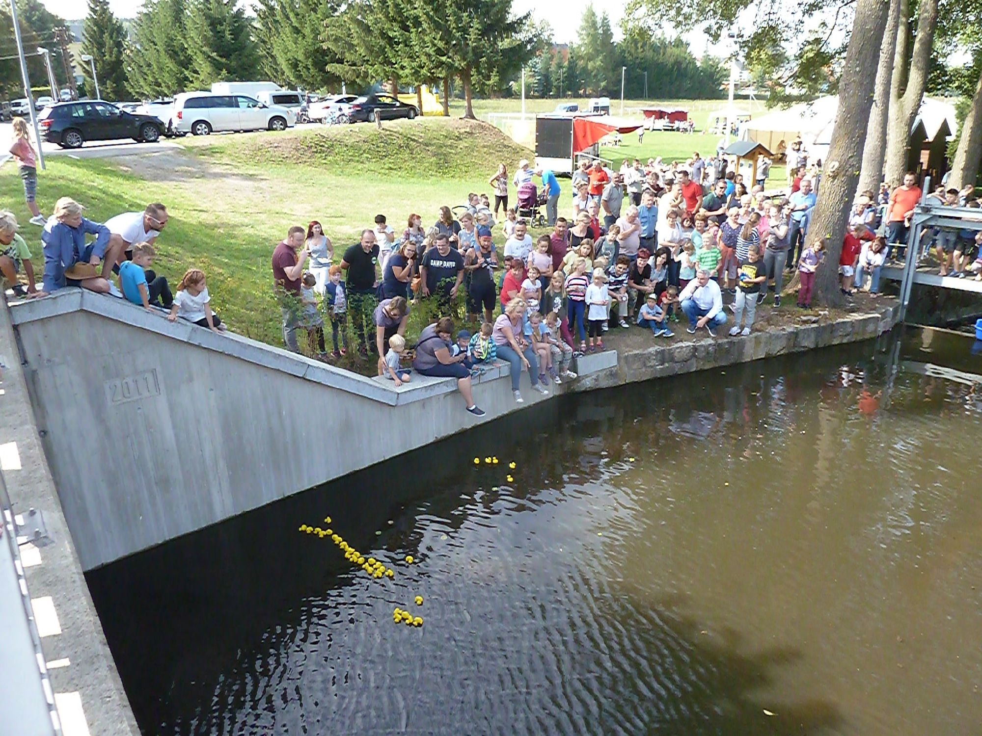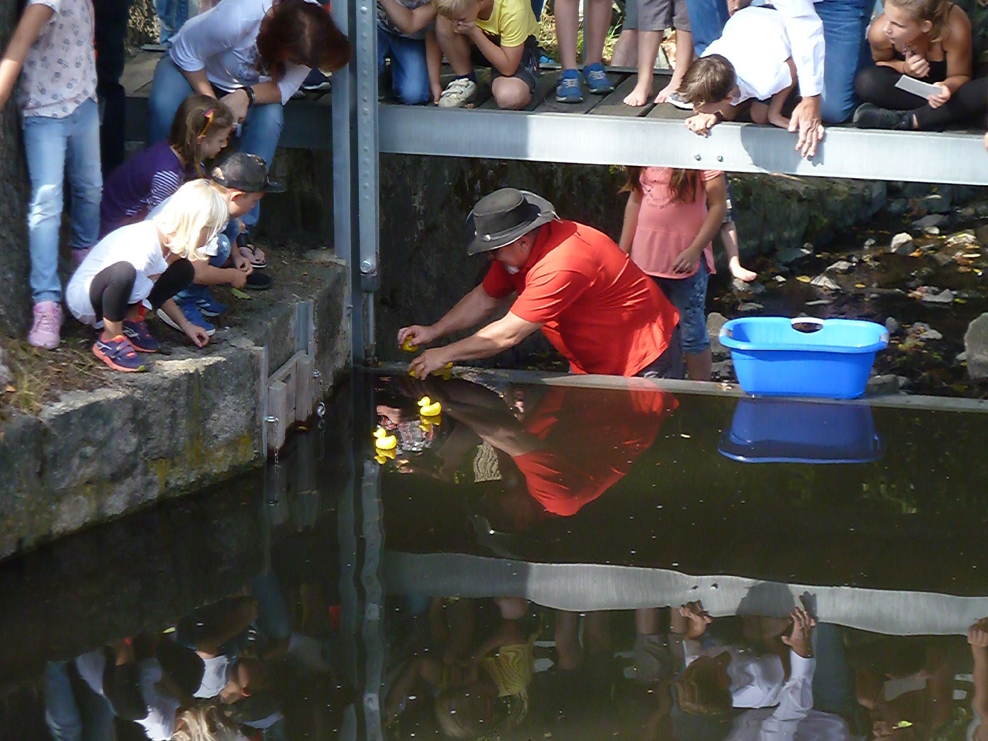 Für den 8. September hat die Ortschaft Reumtengrün zum Feiern auf den Platz am Wehr eingeladen. Mit dem Wetter steht und fällt ein Fest unter freiem Himmel. In diesem Jahr konnten wir uns nicht beschweren. Die Mitarbeiter des Bauhofes stellten Verkaufstände und Tische und Bänke auf. Aufgewartet wurde mit vielen Möglichkeiten den Nachmittag kurzweilig zu gestalten. Das Fest wurde vom OV U. Ebert und den Jagdhornbläsern eröffnet. Hauptattraktion war wieder das Entenrennen gewesen. Pünktlich kamen einige Tage vorher noch Regengüsse, sodass die Enten auch wirklich schwimmen konnten. Spaßvögel hatten für dieses Jahr schon ein Entenwerfen als Alternative vorgeschlagen. Das Entenrennen wurde wieder von unserem OB M. Deckert souverän kommentiert. Bizarre Winde auf dem Wasser bewirkten, dass es zu kuriosen Richtungswechseln kam, dadurch wurde die Zielankunft manchmal verzögert. Als „Schiedsrichter“ stand J. Reißmann in der Treba und fing die Enten der Reihenfolge nach ab. Der große und kleine Hunger konnte mit Wildschwein vom Grill, Rostern, Steaks, Fisch oder Kuchen gestillt werden. Für den Durst gab es eine Vielfalt an kalten und warmen Getränken, mit oder ohne Alkohol. Die Palette für die Aktivitäten reichte vom Baggerfahren, Reiten, Torwandschießen, Bemalen von Figuren, Spritzburg, Streichelzoo, Hüpfburg und Gravur von Gläsern. Für das Training des Geistes gab es verschiedene Quizangebote. Es gab auch noch die Möglichkeit diverse Waren auf dem Flohmarkt zu kaufen. Im Theaterstück der Kirchgemeinde tyrannisierten aufmüpfige Teenies die Supernanny. Für die musikalische Umrahmung war DJ „Maxi“ verantwortlich. Bis spät in die Nacht konnten sich die Gäste im Zelt der Freiwilligen Feuerwehr noch amüsieren. Höhepunkte waren am Abend die Versteigerung der Kettensägearbeit vom „Holz Mathi“ und die Verlosung der Preise. Großen Dank allen Helfern und Sponsoren ohne deren unermüdlichen Einsatz wäre das Fest nicht möglich gewesen. Der Gewinn des Festes wird für die Sanierung der Friedhofskapelle verwendet werden. Der Ortschaftsrat