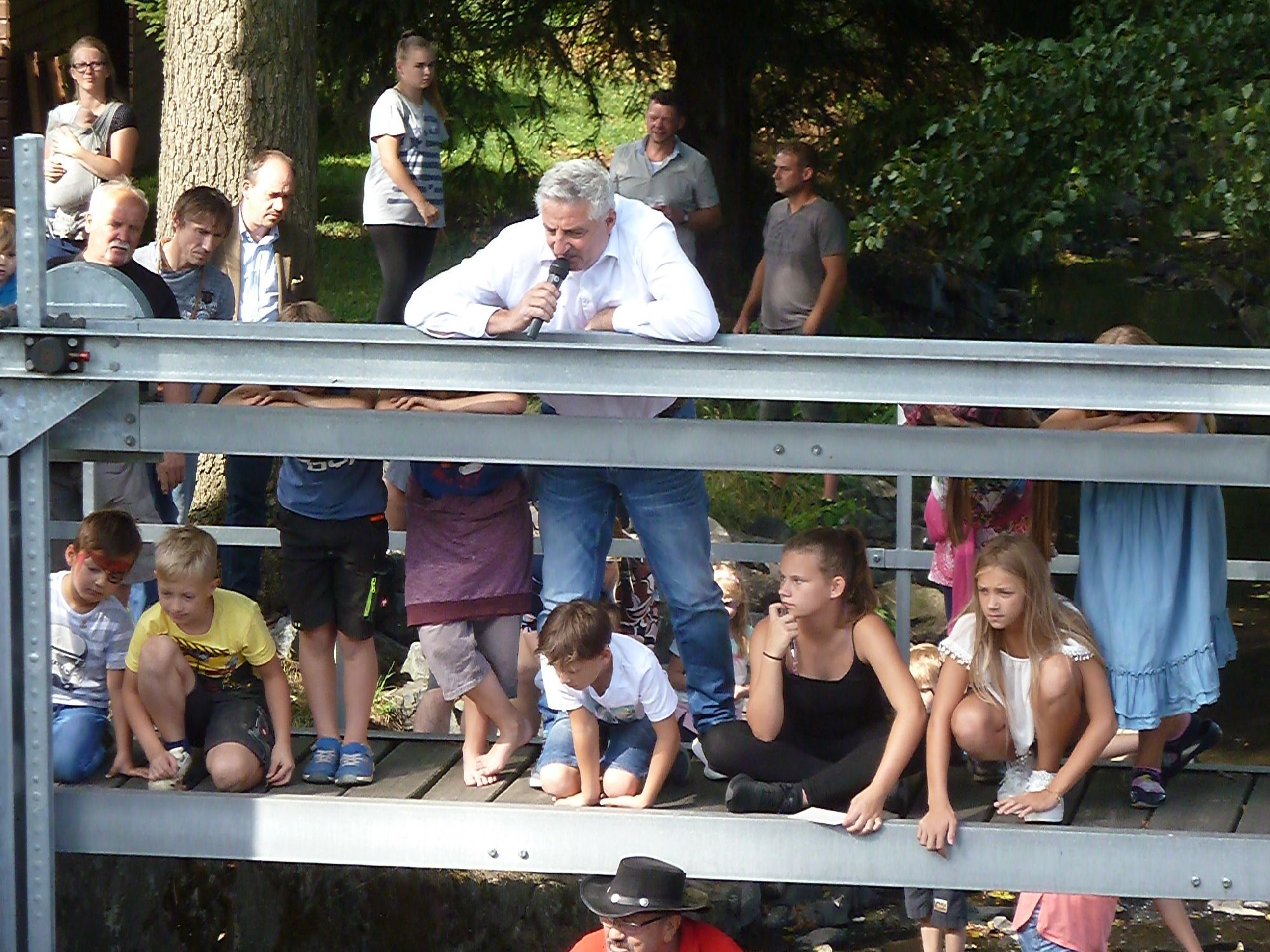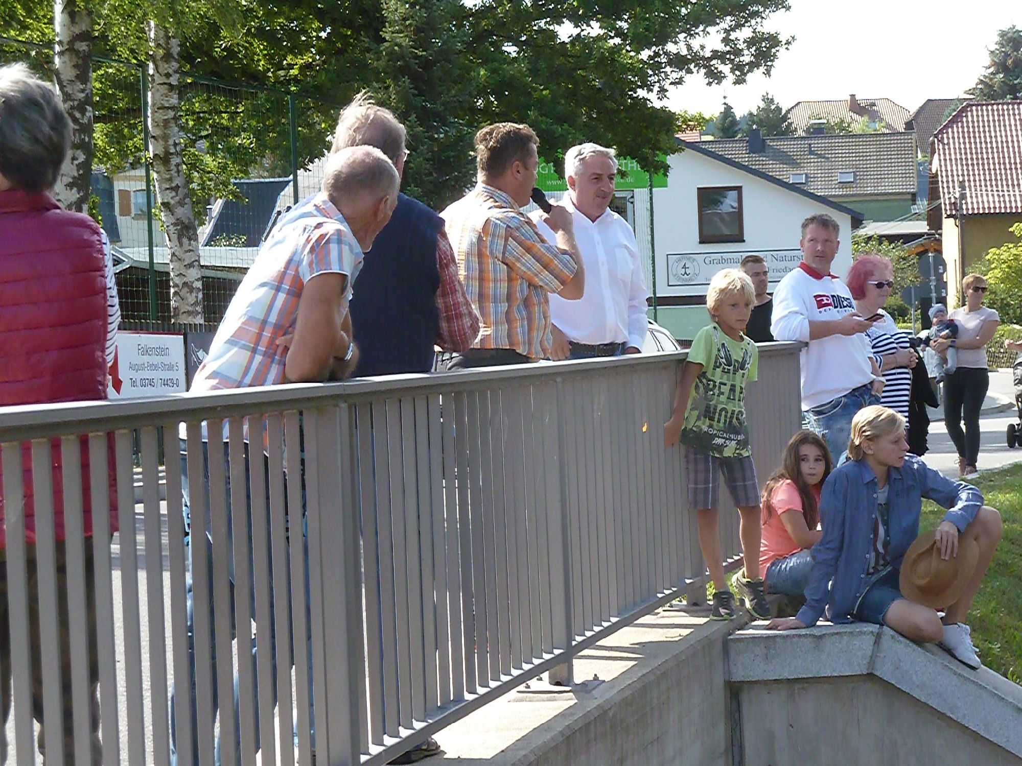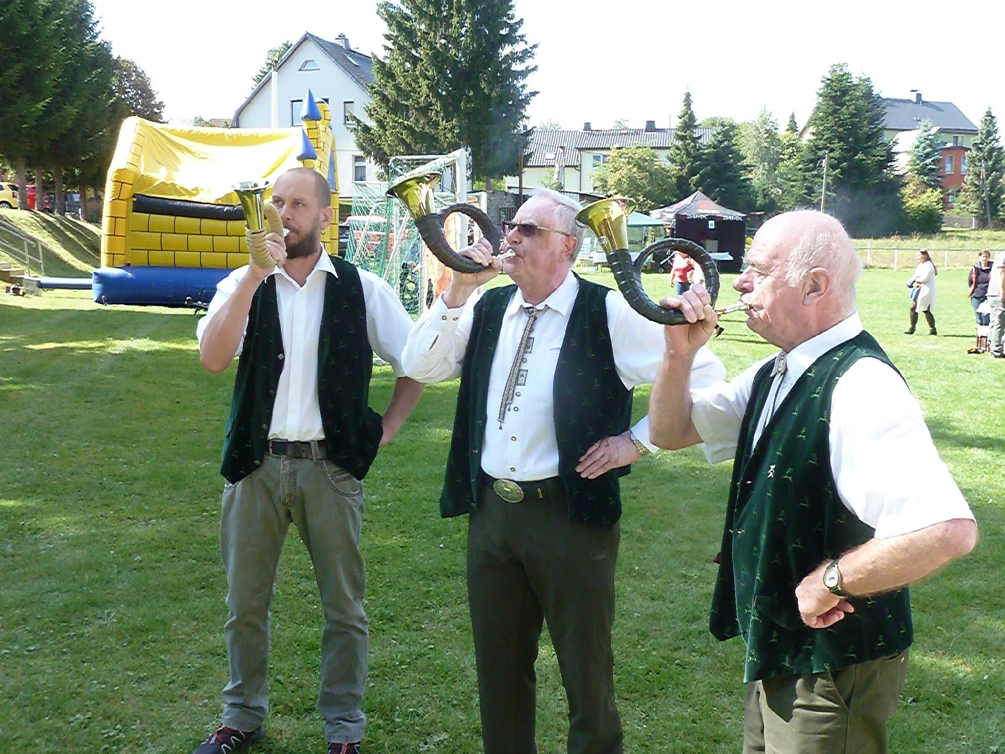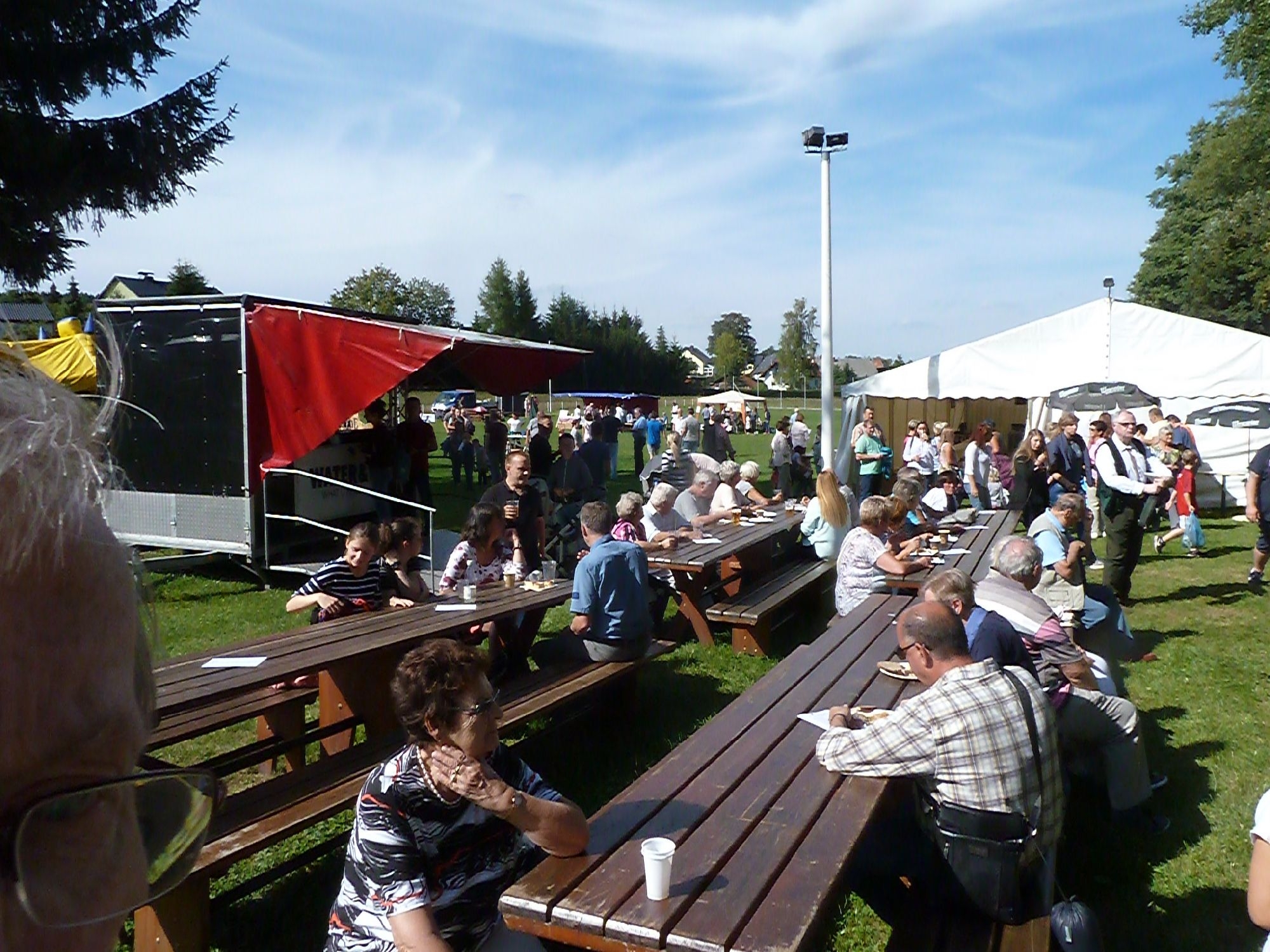 Für den 8. September hat die Ortschaft Reumtengrün zum Feiern auf den Platz am Wehr eingeladen. Mit dem Wetter steht und fällt ein Fest unter freiem Himmel. In diesem Jahr konnten wir uns nicht beschweren. Die Mitarbeiter des Bauhofes stellten Verkaufstände und Tische und Bänke auf. Aufgewartet wurde mit vielen Möglichkeiten den Nachmittag kurzweilig zu gestalten. Das Fest wurde vom OV U. Ebert und den Jagdhornbläsern eröffnet. Hauptattraktion war wieder das Entenrennen gewesen. Pünktlich kamen einige Tage vorher noch Regengüsse, sodass die Enten auch wirklich schwimmen konnten. Spaßvögel hatten für dieses Jahr schon ein Entenwerfen als Alternative vorgeschlagen. Das Entenrennen wurde wieder von unserem OB M. Deckert souverän kommentiert. Bizarre Winde auf dem Wasser bewirkten, dass es zu kuriosen Richtungswechseln kam, dadurch wurde die Zielankunft manchmal verzögert. Als „Schiedsrichter“ stand J. Reißmann in der Treba und fing die Enten der Reihenfolge nach ab. Der große und kleine Hunger konnte mit Wildschwein vom Grill, Rostern, Steaks, Fisch oder Kuchen gestillt werden. Für den Durst gab es eine Vielfalt an kalten und warmen Getränken, mit oder ohne Alkohol. Die Palette für die Aktivitäten reichte vom Baggerfahren, Reiten, Torwandschießen, Bemalen von Figuren, Spritzburg, Streichelzoo, Hüpfburg und Gravur von Gläsern. Für das Training des Geistes gab es verschiedene Quizangebote. Es gab auch noch die Möglichkeit diverse Waren auf dem Flohmarkt zu kaufen. Im Theaterstück der Kirchgemeinde tyrannisierten aufmüpfige Teenies die Supernanny. Für die musikalische Umrahmung war DJ „Maxi“ verantwortlich. Bis spät in die Nacht konnten sich die Gäste im Zelt der Freiwilligen Feuerwehr noch amüsieren. Höhepunkte waren am Abend die Versteigerung der Kettensägearbeit vom „Holz Mathi“ und die Verlosung der Preise. Großen Dank allen Helfern und Sponsoren ohne deren unermüdlichen Einsatz wäre das Fest nicht möglich gewesen. Der Gewinn des Festes wird für die Sanierung der Friedhofskapelle verwendet werden. Der Ortschaftsrat