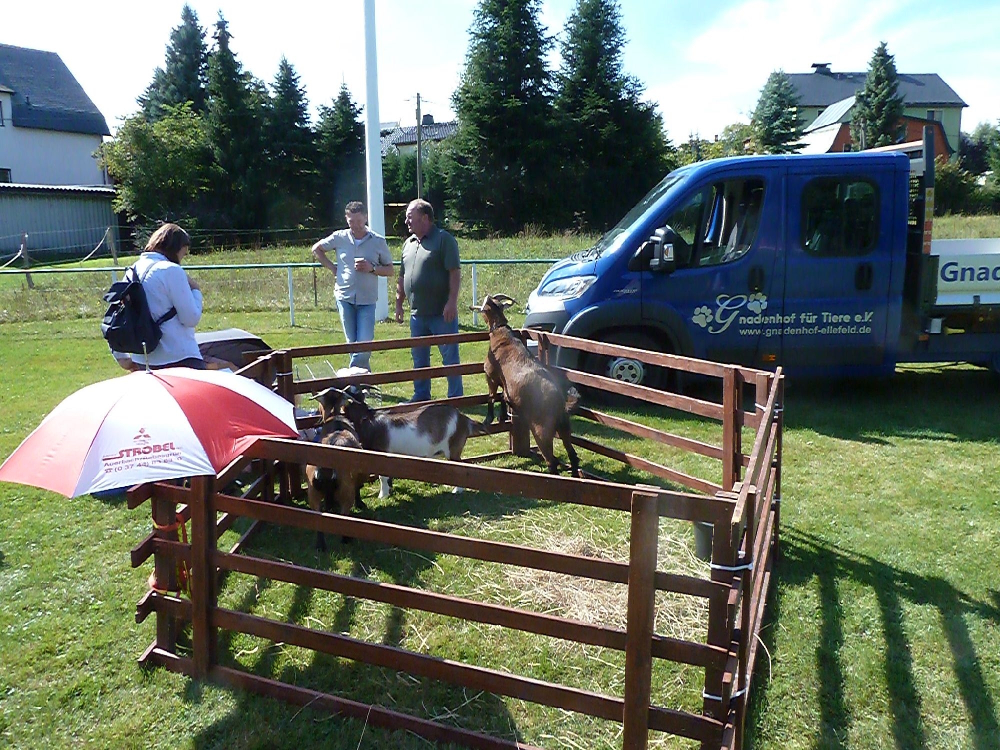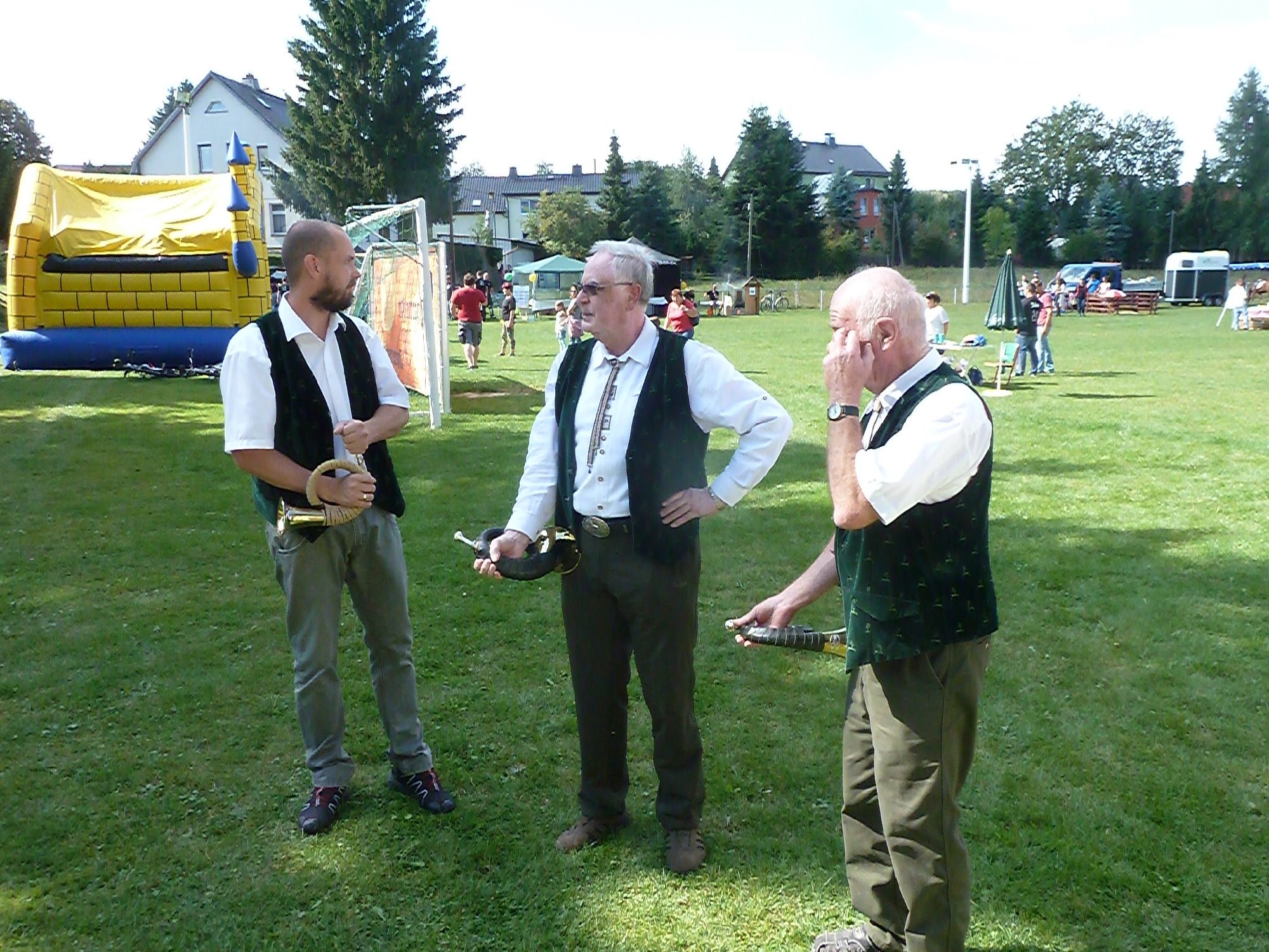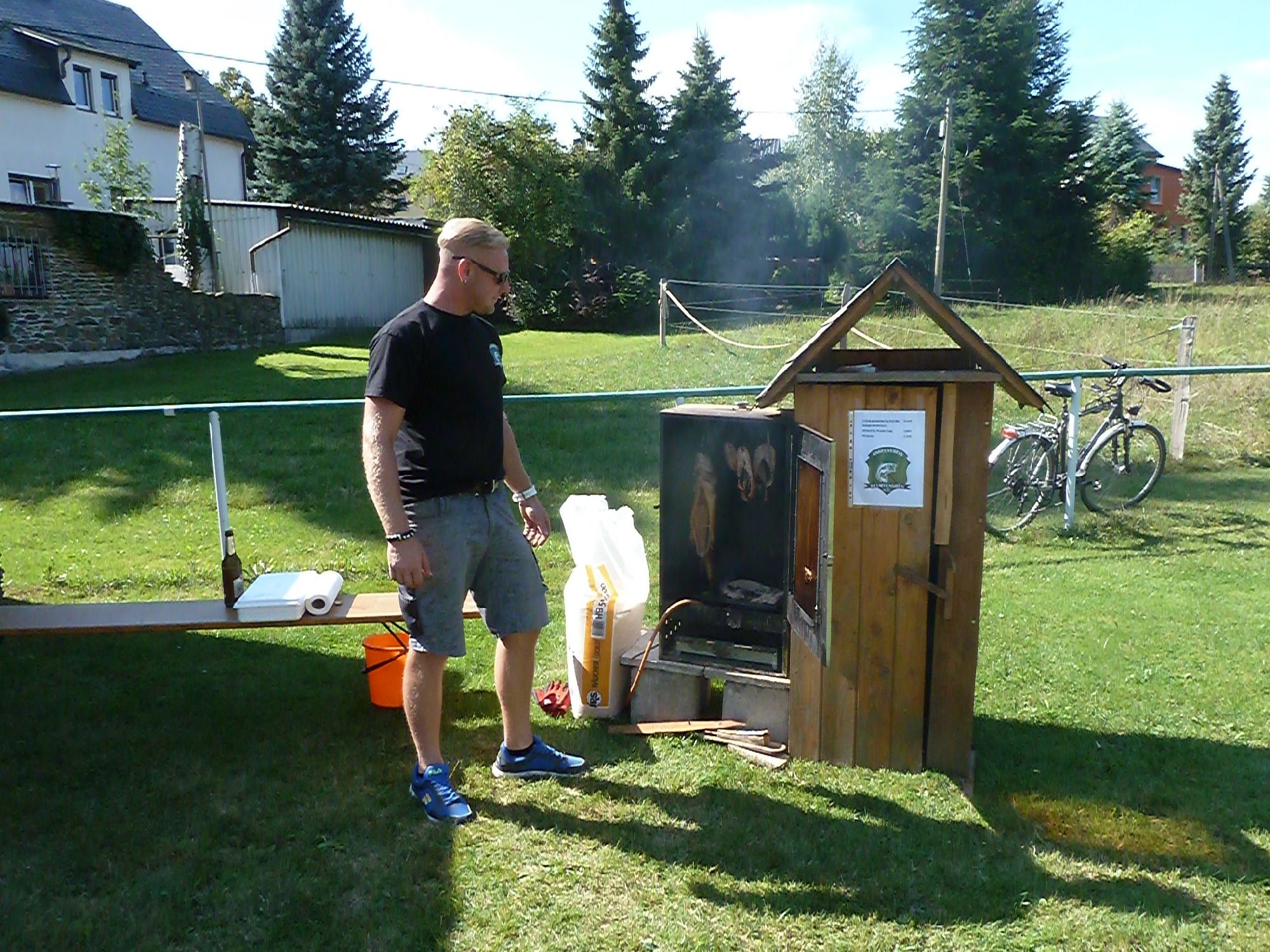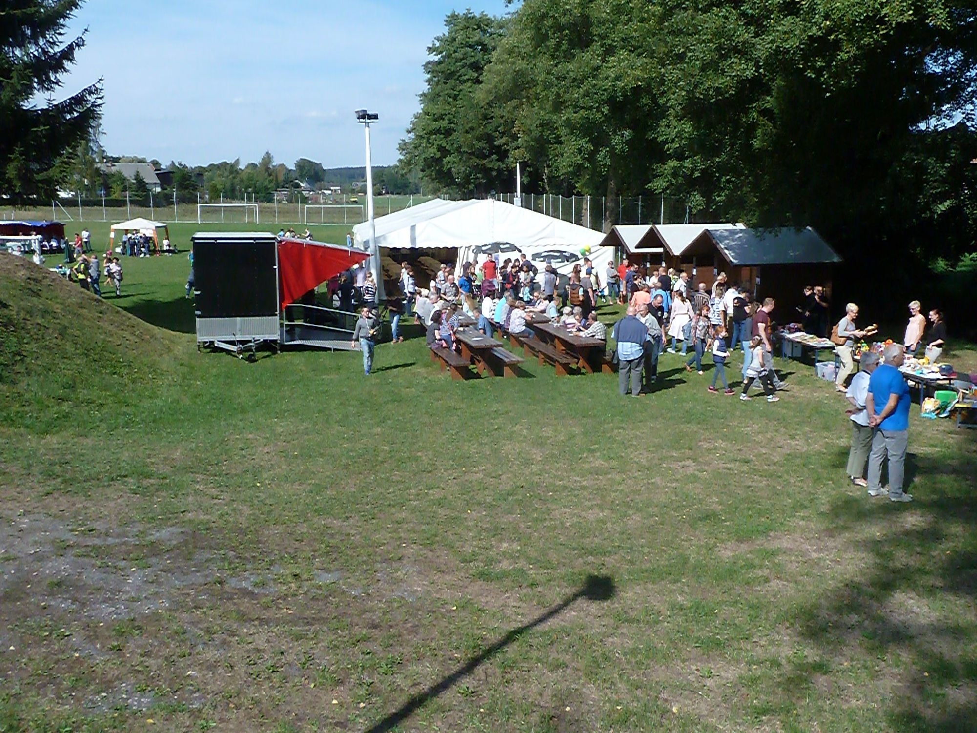 Für den 8. September hat die Ortschaft Reumtengrün zum Feiern auf den Platz am Wehr eingeladen. Mit dem Wetter steht und fällt ein Fest unter freiem Himmel. In diesem Jahr konnten wir uns nicht beschweren. Die Mitarbeiter des Bauhofes stellten Verkaufstände und Tische und Bänke auf. Aufgewartet wurde mit vielen Möglichkeiten den Nachmittag kurzweilig zu gestalten. Das Fest wurde vom OV U. Ebert und den Jagdhornbläsern eröffnet. Hauptattraktion war wieder das Entenrennen gewesen. Pünktlich kamen einige Tage vorher noch Regengüsse, sodass die Enten auch wirklich schwimmen konnten. Spaßvögel hatten für dieses Jahr schon ein Entenwerfen als Alternative vorgeschlagen. Das Entenrennen wurde wieder von unserem OB M. Deckert souverän kommentiert. Bizarre Winde auf dem Wasser bewirkten, dass es zu kuriosen Richtungswechseln kam, dadurch wurde die Zielankunft manchmal verzögert. Als „Schiedsrichter“ stand J. Reißmann in der Treba und fing die Enten der Reihenfolge nach ab. Der große und kleine Hunger konnte mit Wildschwein vom Grill, Rostern, Steaks, Fisch oder Kuchen gestillt werden. Für den Durst gab es eine Vielfalt an kalten und warmen Getränken, mit oder ohne Alkohol. Die Palette für die Aktivitäten reichte vom Baggerfahren, Reiten, Torwandschießen, Bemalen von Figuren, Spritzburg, Streichelzoo, Hüpfburg und Gravur von Gläsern. Für das Training des Geistes gab es verschiedene Quizangebote. Es gab auch noch die Möglichkeit diverse Waren auf dem Flohmarkt zu kaufen. Im Theaterstück der Kirchgemeinde tyrannisierten aufmüpfige Teenies die Supernanny. Für die musikalische Umrahmung war DJ „Maxi“ verantwortlich. Bis spät in die Nacht konnten sich die Gäste im Zelt der Freiwilligen Feuerwehr noch amüsieren. Höhepunkte waren am Abend die Versteigerung der Kettensägearbeit vom „Holz Mathi“ und die Verlosung der Preise. Großen Dank allen Helfern und Sponsoren ohne deren unermüdlichen Einsatz wäre das Fest nicht möglich gewesen. Der Gewinn des Festes wird für die Sanierung der Friedhofskapelle verwendet werden. Der Ortschaftsrat