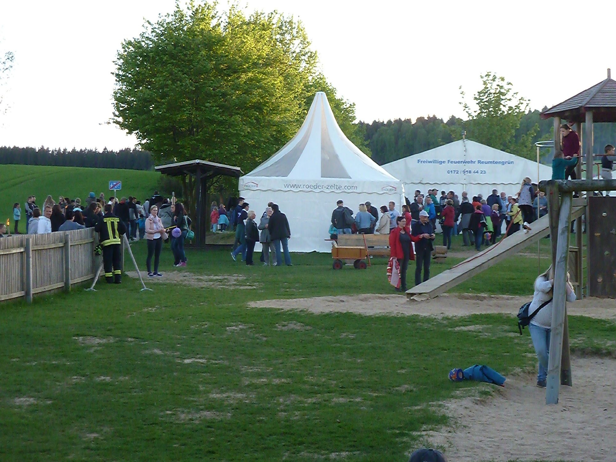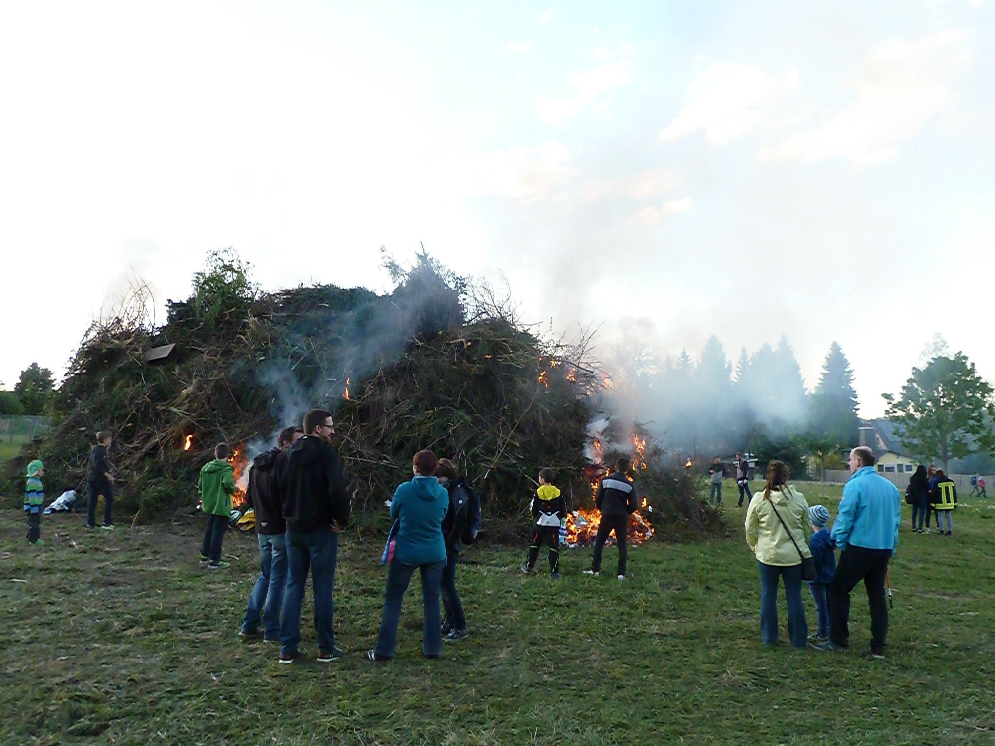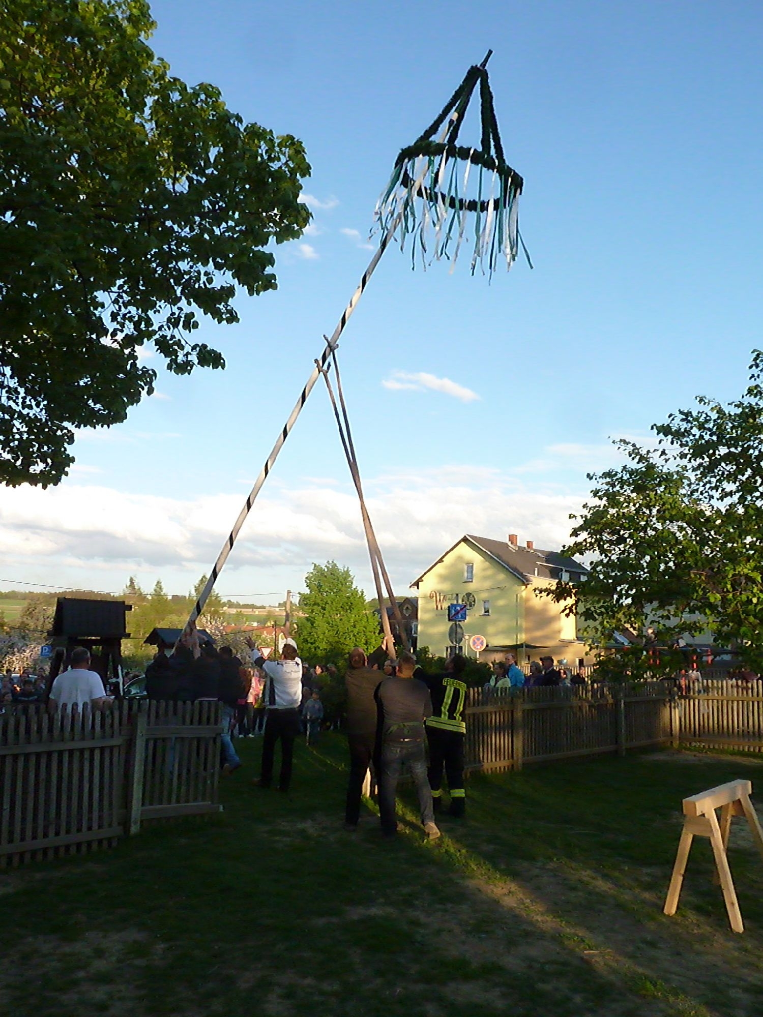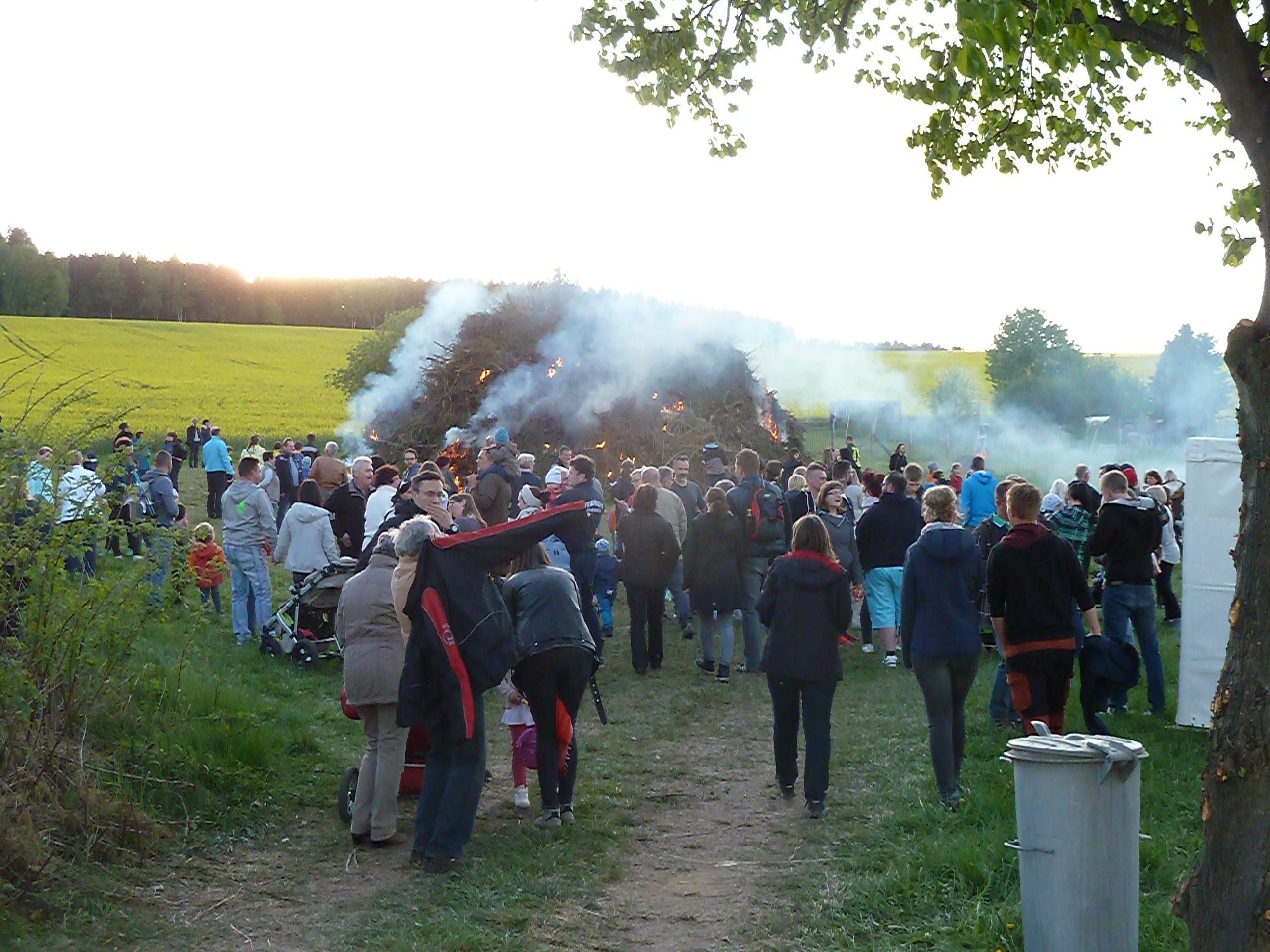 Traditionell luden die Freiwillige Feuerwehr Reumtengrün und deren Verein wieder für den 30. April zum Höhenfeuer ein. Von Vorteil ist es, dass es bei uns nur ein großes Feuer im Ort gibt, so kann noch der Gemeinschaftsinn gepflegt werden. Eröffnet wurde die Veranstaltung dem Fackelumzug für die Kinder. Zur Gewohnheit ist es seit einigen Jahren geworden, dass die Heimatfreunde den Maikranz mit Bändern schmücken. Der Ortsvorsteher begrüßte die Gäste und starke Kerle waren dann zum Aufstellen des Baumes aufgefordet worden. Das "flüssige Dankeschön" kam wie immer von Heike Becker. Danach wurde das Feuer entzündet. In diesem Jahr haben die Bürger wieder sehr viel Grünzeug für das Feuer herangeschafft. Je nach Lust und Laune konnte im Freien oder im Zelt reichlich gegessen, getrunken oder auch getanzt werden. Dank gilt den Kameraden der Feuerwehr und dem Verein, die wieder ein gelungenes Fest organisierten!