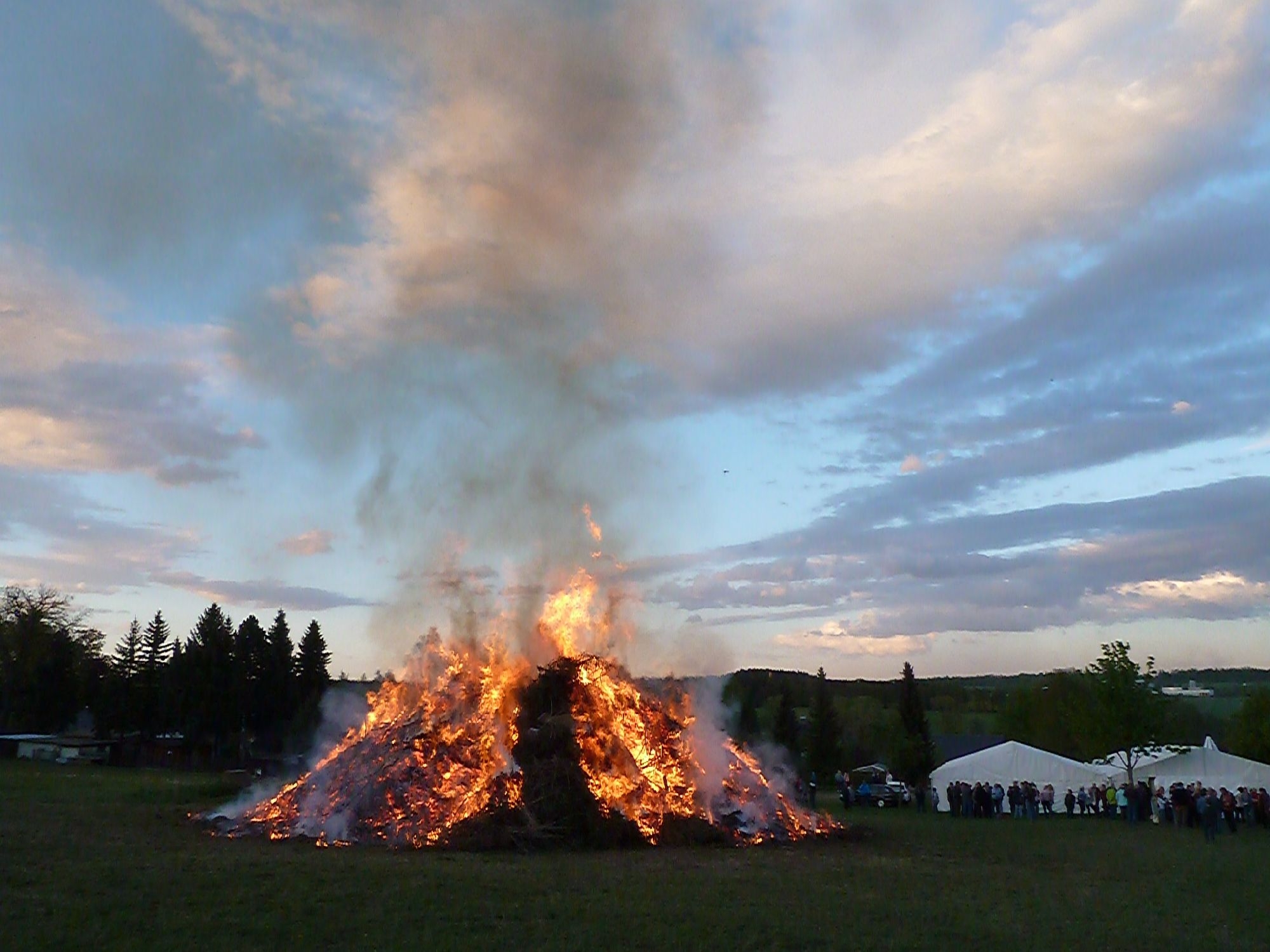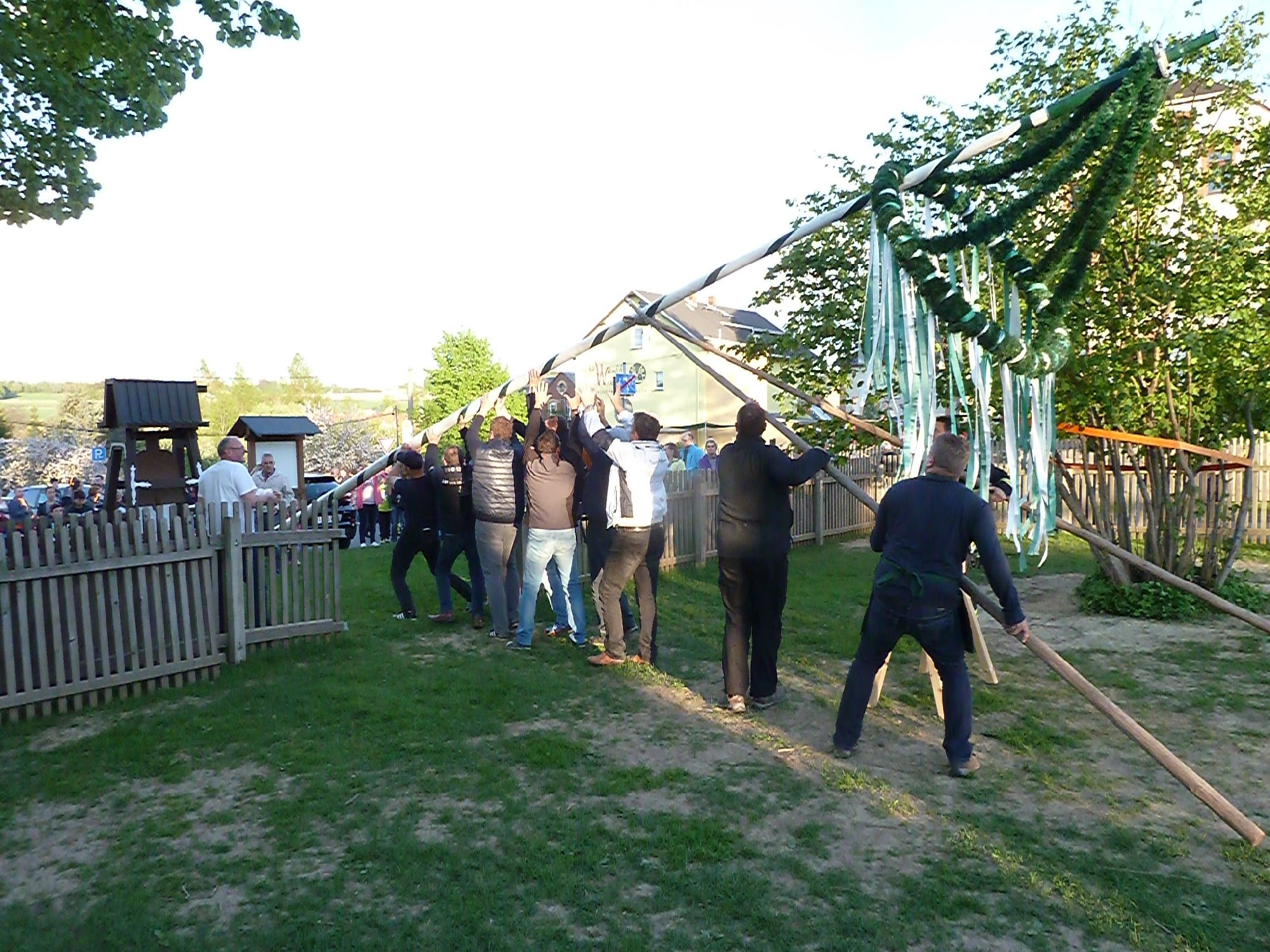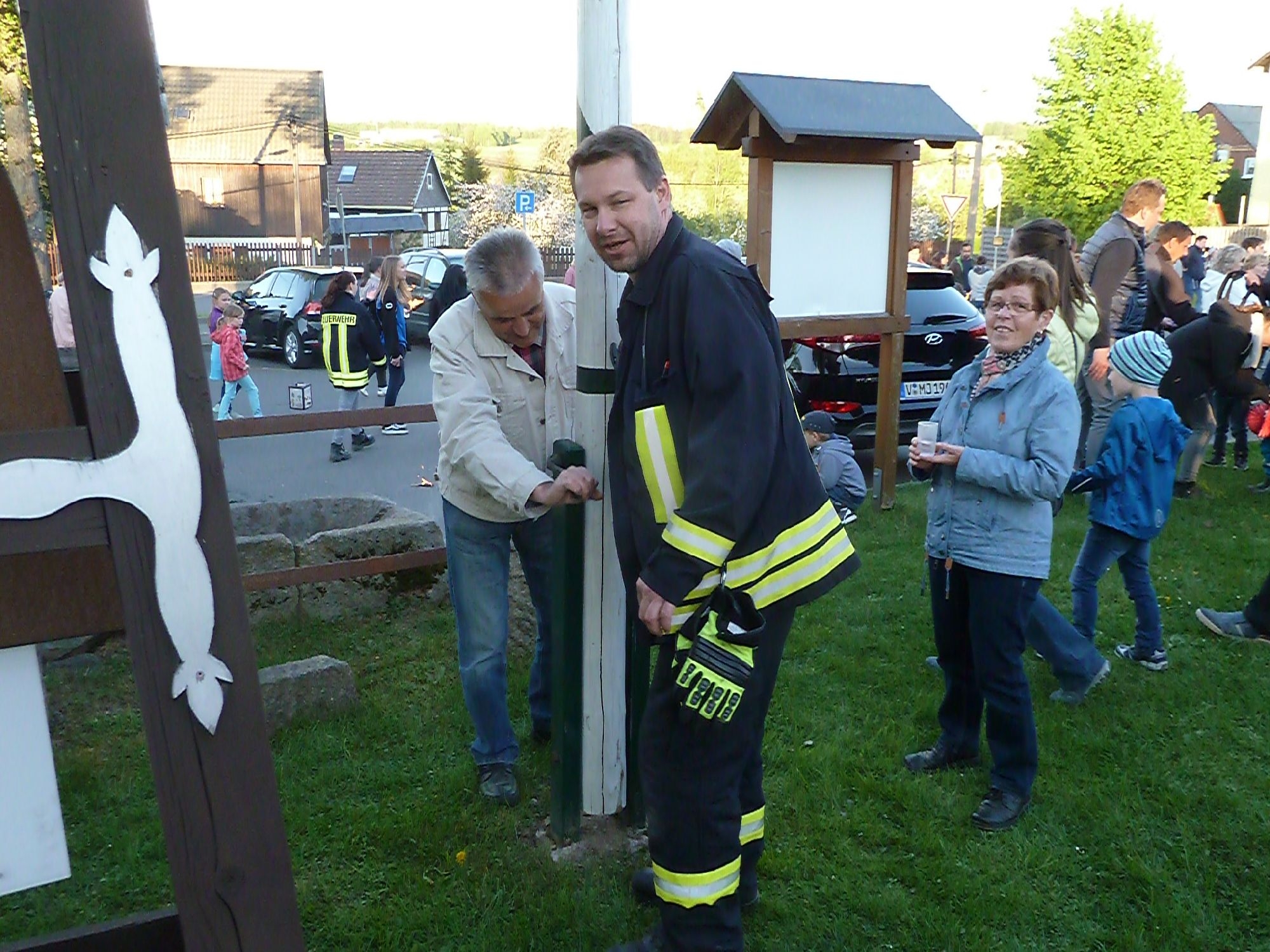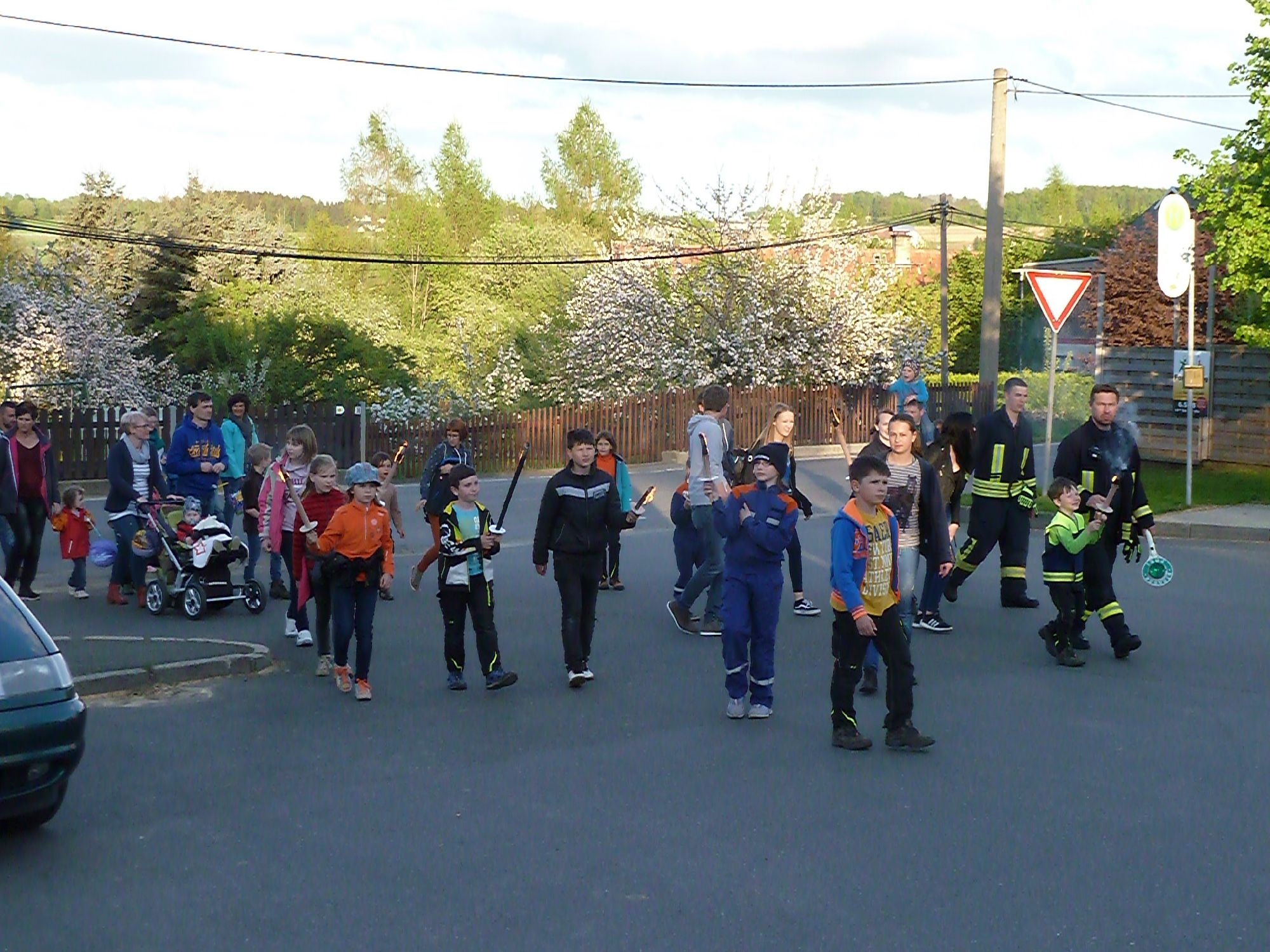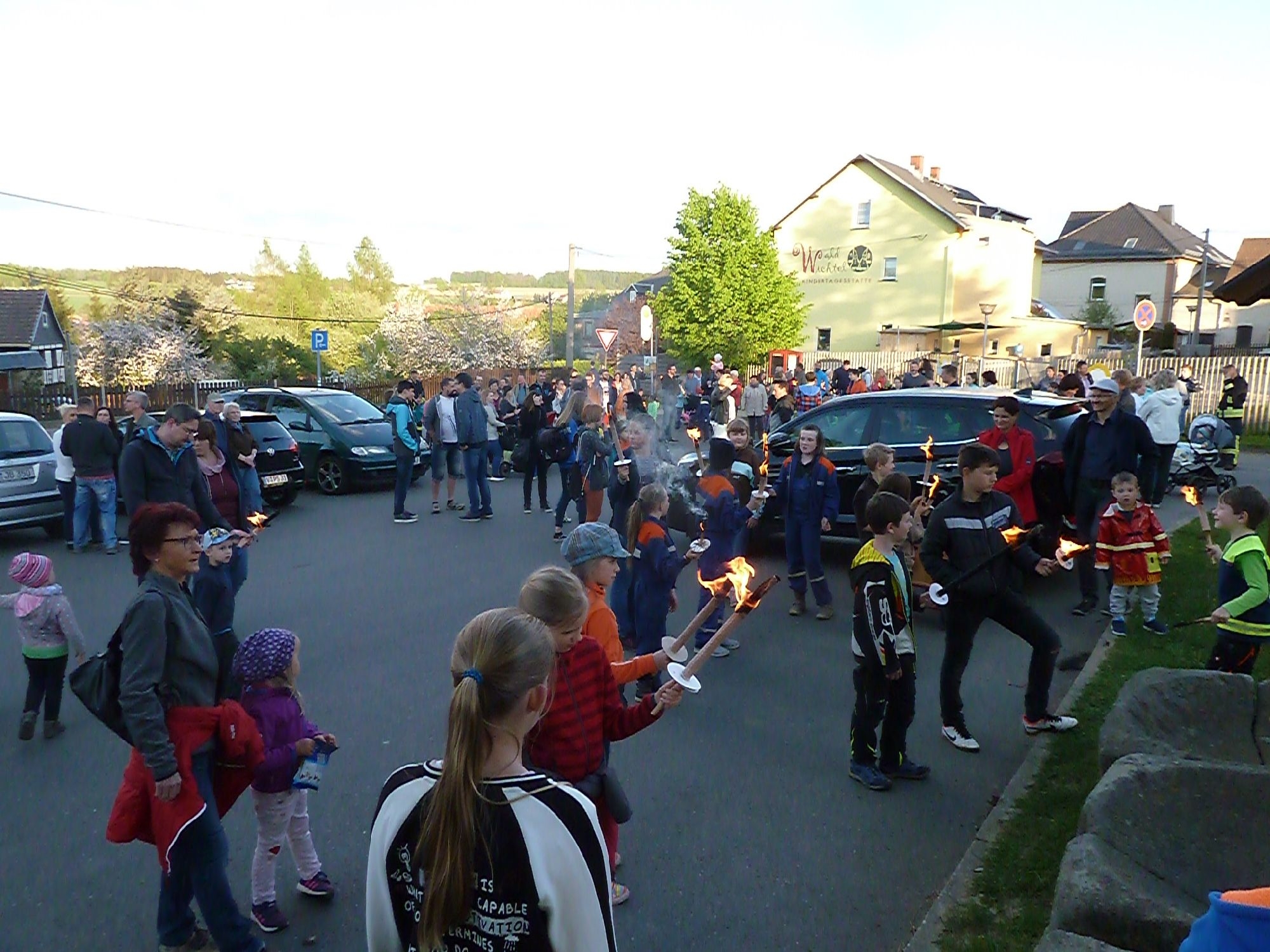 Traditionell luden die Freiwillige Feuerwehr Reumtengrün und deren Verein wieder für den 30. April zum Höhenfeuer ein. Von Vorteil ist es, dass es bei uns nur ein großes Feuer im Ort gibt, so kann noch der Gemeinschaftsinn gepflegt werden. Eröffnet wurde die Veranstaltung dem Fackelumzug für die Kinder. Zur Gewohnheit ist es seit einigen Jahren geworden, dass die Heimatfreunde den Maikranz mit Bändern schmücken. Der Ortsvorsteher begrüßte die Gäste und starke Kerle waren dann zum Aufstellen des Baumes aufgefordet worden. Das "flüssige Dankeschön" kam wie immer von Heike Becker. Danach wurde das Feuer entzündet. In diesem Jahr haben die Bürger wieder sehr viel Grünzeug für das Feuer herangeschafft. Je nach Lust und Laune konnte im Freien oder im Zelt reichlich gegessen, getrunken oder auch getanzt werden. Dank gilt den Kameraden der Feuerwehr und dem Verein, die wieder ein gelungenes Fest organisierten!