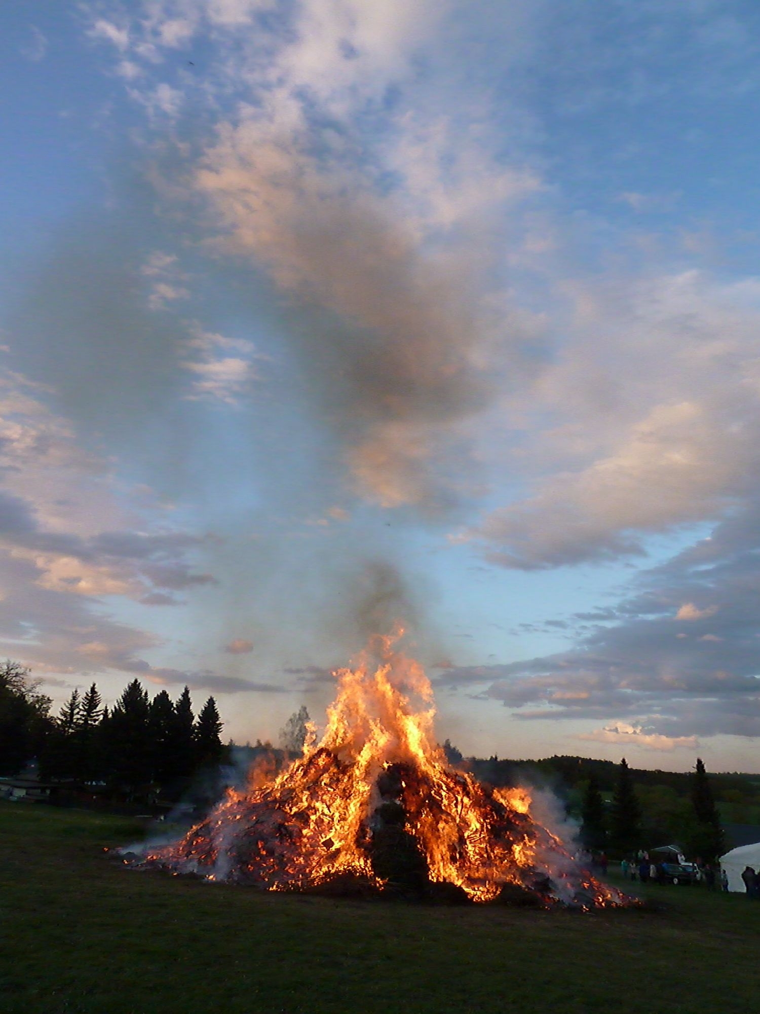 Traditionell luden die Freiwillige Feuerwehr Reumtengrün und deren Verein wieder für den 30. April zum Höhenfeuer ein. Von Vorteil ist es, dass es bei uns nur ein großes Feuer im Ort gibt, so kann noch der Gemeinschaftsinn gepflegt werden. Eröffnet wurde die Veranstaltung dem Fackelumzug für die Kinder. Zur Gewohnheit ist es seit einigen Jahren geworden, dass die Heimatfreunde den Maikranz mit Bändern schmücken. Der Ortsvorsteher begrüßte die Gäste und starke Kerle waren dann zum Aufstellen des Baumes aufgefordet worden. Das "flüssige Dankeschön" kam wie immer von Heike Becker. Danach wurde das Feuer entzündet. In diesem Jahr haben die Bürger wieder sehr viel Grünzeug für das Feuer herangeschafft. Je nach Lust und Laune konnte im Freien oder im Zelt reichlich gegessen, getrunken oder auch getanzt werden. Dank gilt den Kameraden der Feuerwehr und dem Verein, die wieder ein gelungenes Fest organisierten!
