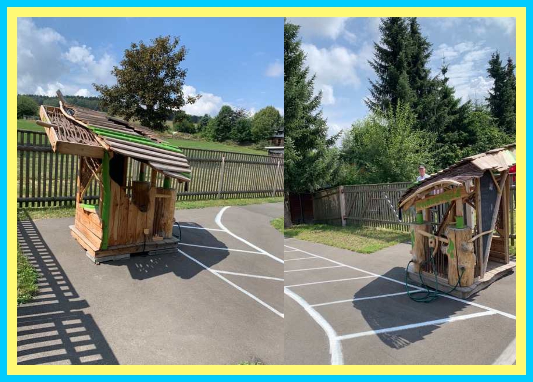 Seit einigen Wochen steht im Verkehrsgarten des Kindergartens nun auch eine extravagante Tankstelle.