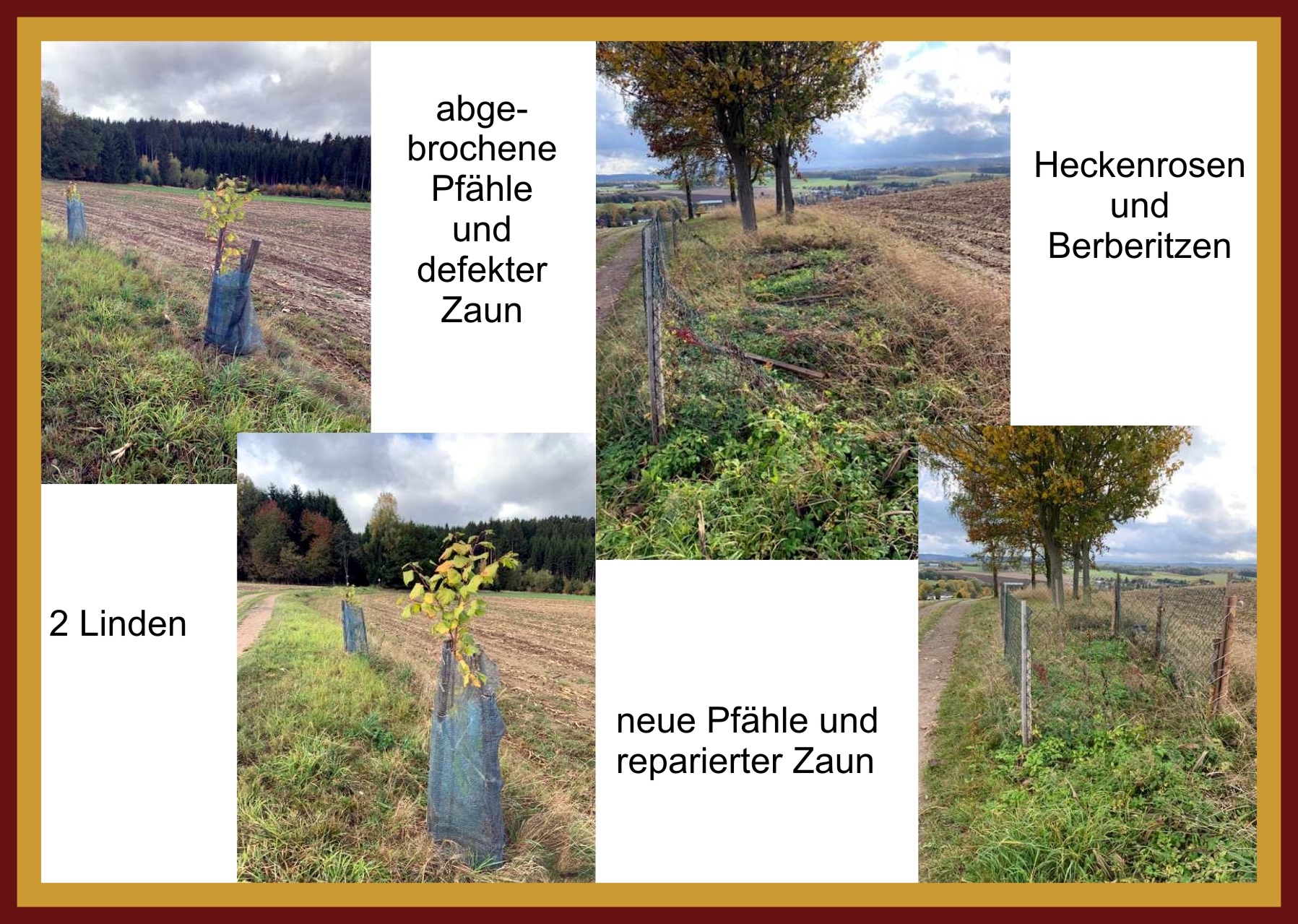 Der Zahn der Zeit hatte an den Schutzzäunen an den Linden und den Büschen am Winkelmann's Weg genagt. Dies wurde unbürokratisch in Eigeninitiative vor dem Winter wieder in Ordnung gebracht