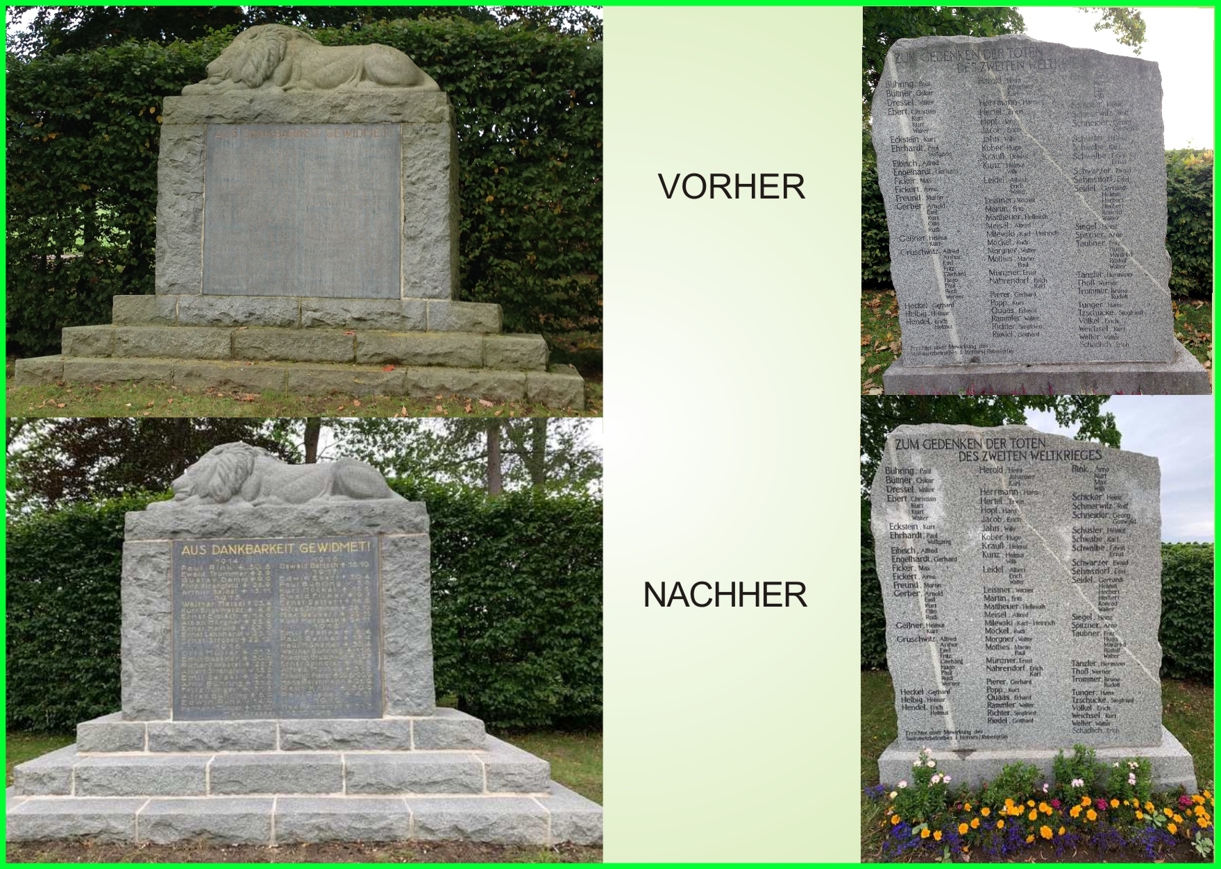 Am 1. August begannen die Arbeiten zur Sanierung des Denkmals 1. Weltkrieg und des Gedenksteins für den 2. Weltkrieg. Beide befanden sich in einem sehr unansehlichen und unwürdigen Zustand. Für das Erstere wurden dem Ort ein Teil Fördermittel bewilligt. Der Rest wird aus dem Ortsbudget bezahlt.