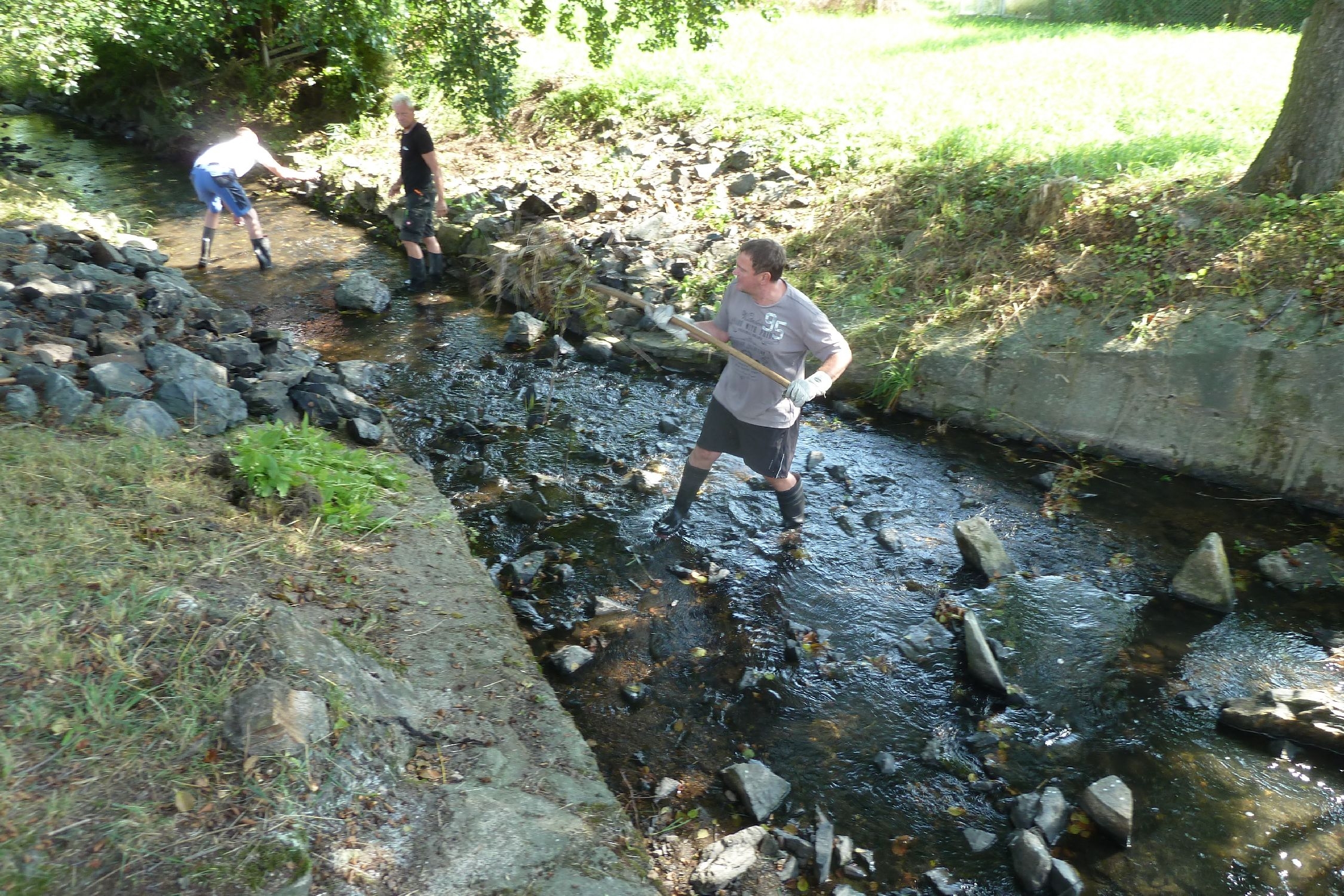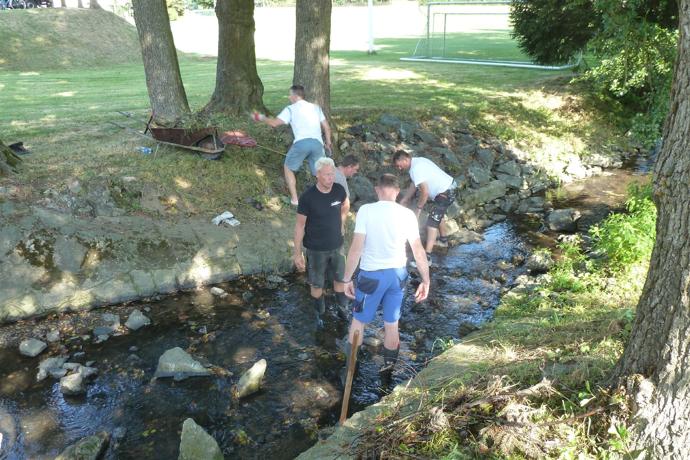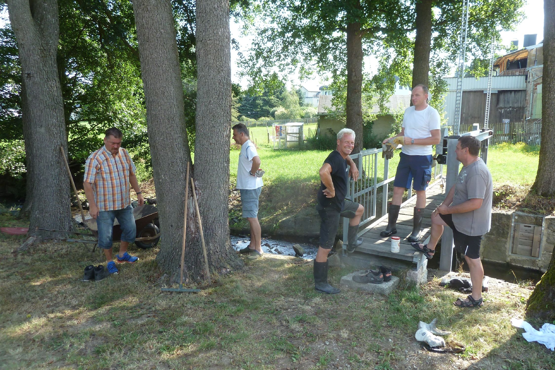 Vergangenen Samstag haben sich einige Männer vom Ortschaftsrat Reumtengrün an einem Arbeisteinsatz am restaurierten Wehr beteiligt. Das Flussbett wurde in diesem Bereich von Unrat und Unkraut befreit und die Uferböschung gemäht. Außerdem wurde noch die Funktionstüchtigkeit der Wehranlage überprüft.