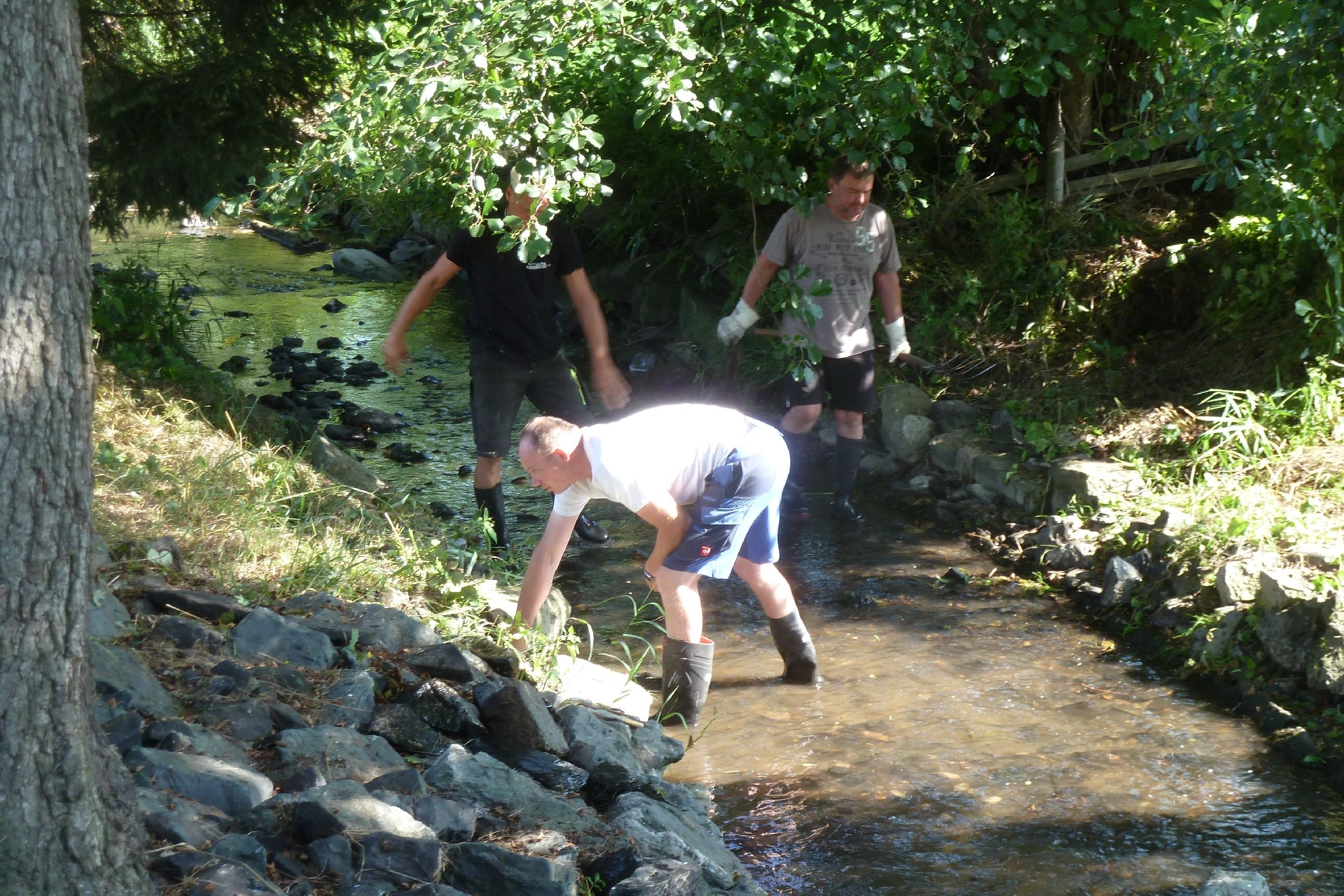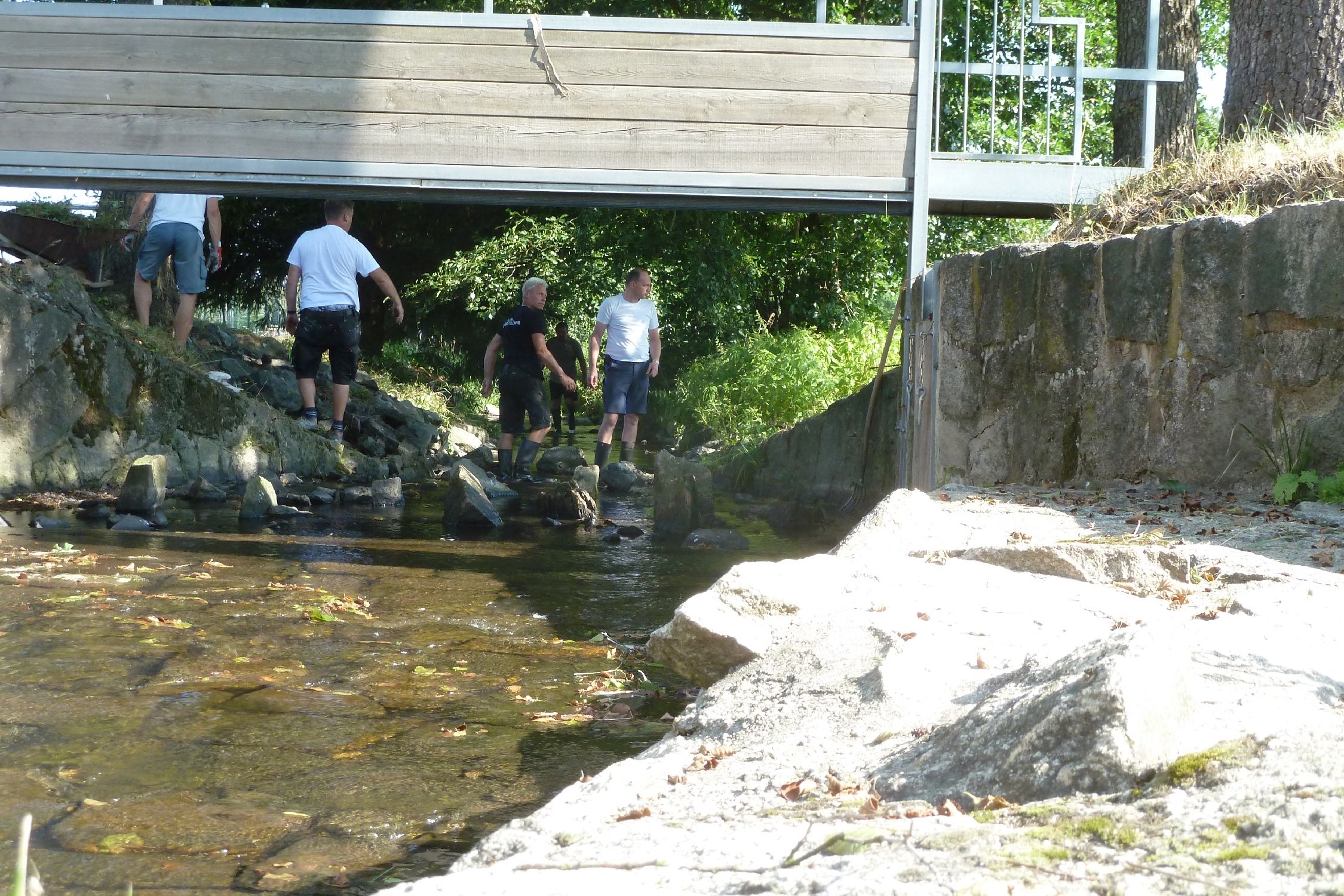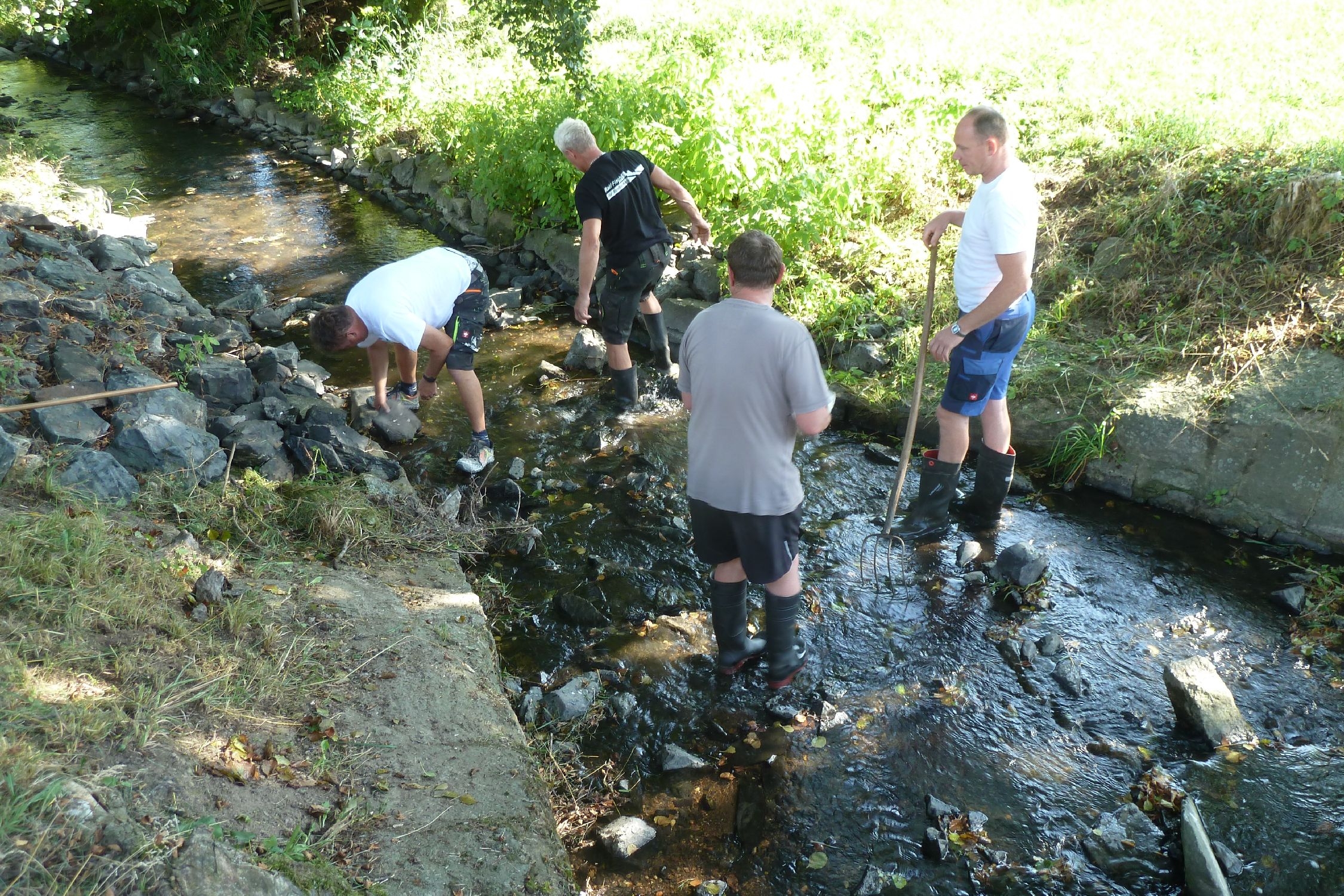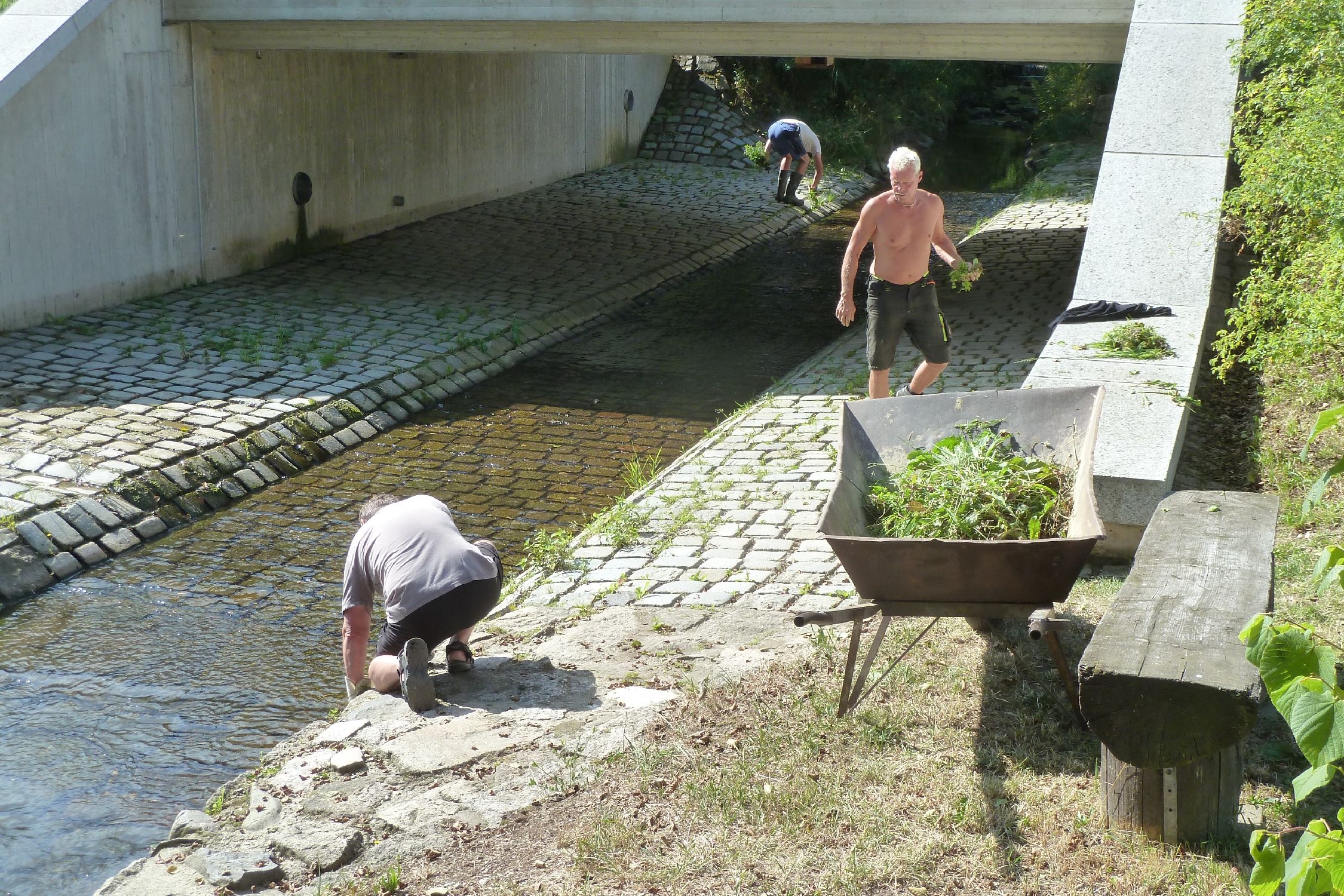 Vergangenen Samstag haben sich einige Männer vom Ortschaftsrat Reumtengrün an einem Arbeisteinsatz am restaurierten Wehr beteiligt. Das Flussbett wurde in diesem Bereich von Unrat und Unkraut befreit und die Uferböschung gemäht. Außerdem wurde noch die Funktionstüchtigkeit der Wehranlage überprüft.