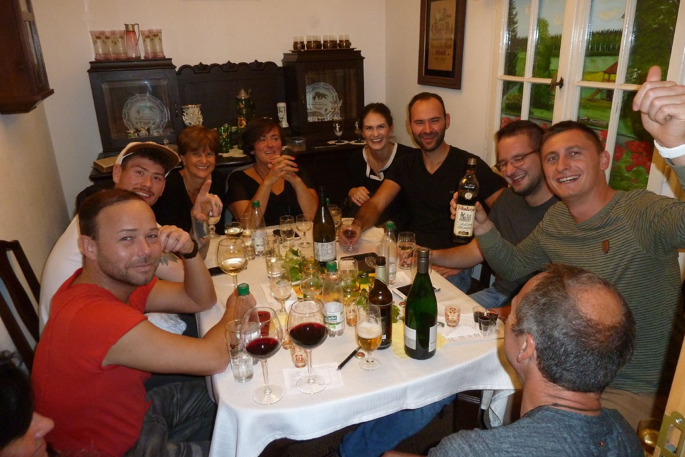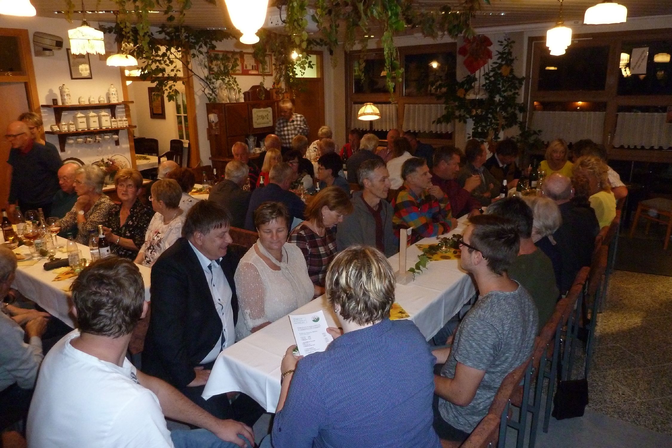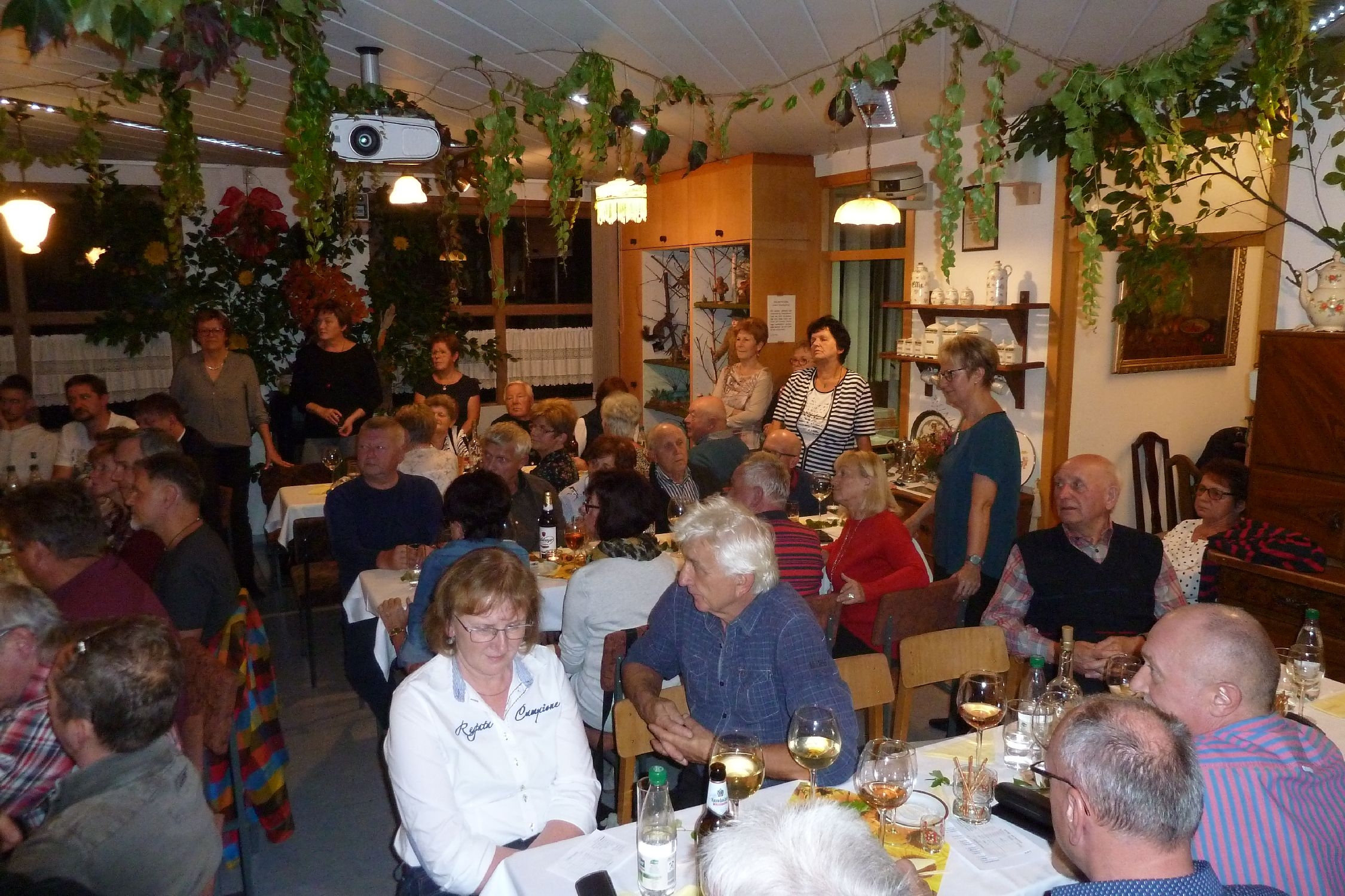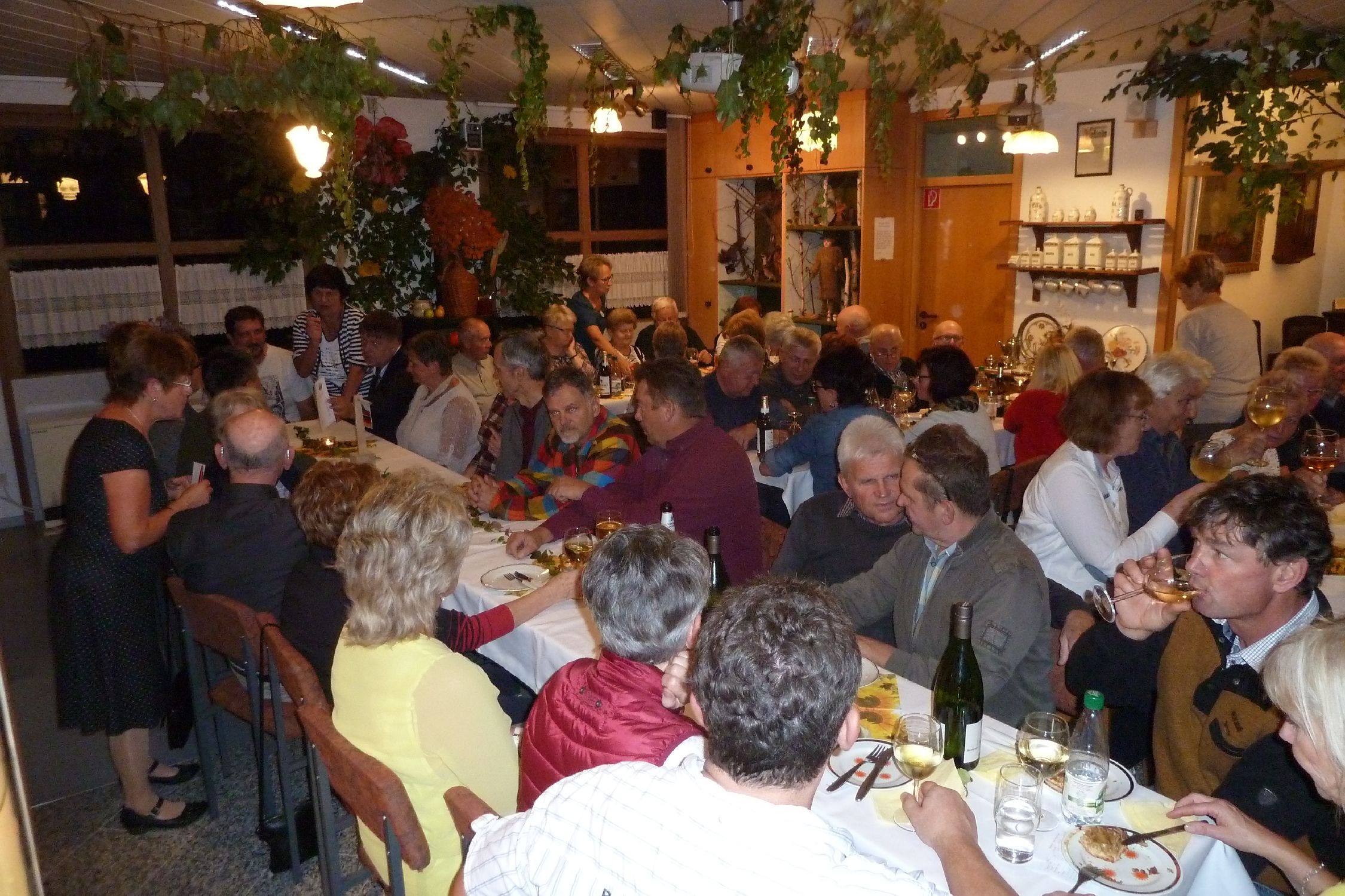 In diesem Jahr hatte der Heimatverein im Herbst, am Kirmessamstag zum Weinfest eingeladen. In der behaglich herbstlich geschmückten Heimatstube wurde maximal Platz geschaffen. Über 70 Gäste konnten wir bei „Wein, Weib und Gesang“ begrüßen. Bei Letzteren haderte es leider. Dafür wurde ein Beitrag zum „Nutzen“ des Alkohols vorgetragen. Den Gästen aus Svoboda/Freiheit gefiel es ebenfalls. Neben reichlich Wein für den Geist kam auch der Genuss für den Gaumen nicht zu kurz.