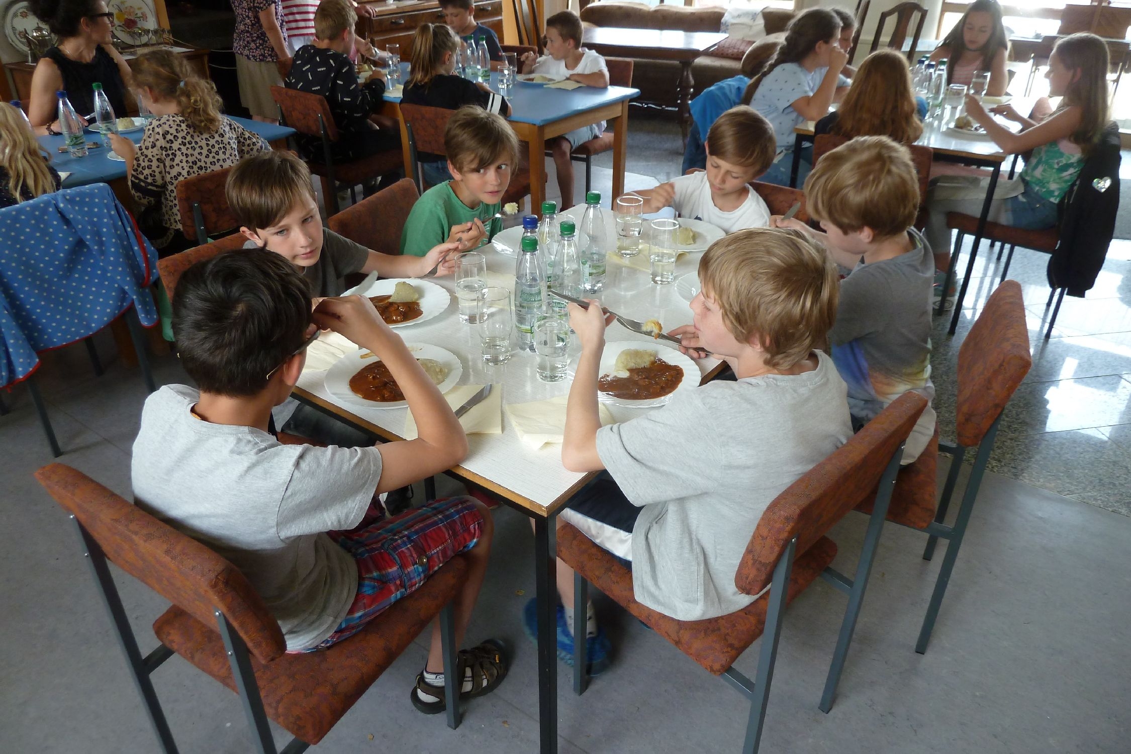 Auch in diesem Jahr haben die Heimatfreunde wieder mit den Kindern der 4. Klasse der ev. Grundschule Grüne Klöße wie zu Großmutters Zeiten zubereitet. Dies bedeutete jede Menge Handarbeit, viel Geschick und Kraft wurden benötigt. Mit Begeisterung waren die Kinder bei der Arbeit. Schnell zeigte sich, dass es nicht so einfach war die rohen Kartoffeln zu schälen, geschweige denn diese zu reiben. Machmal war auch ein kleines Pflaster vonnöten, konnte aber nichts von der Begeisterung nehmen. Die selbst hergestellten Grünen Klöße schmeckten dann mit Gulasch allen Kindern vorzüglich. Ein Nachschlag konnte geholt werden!