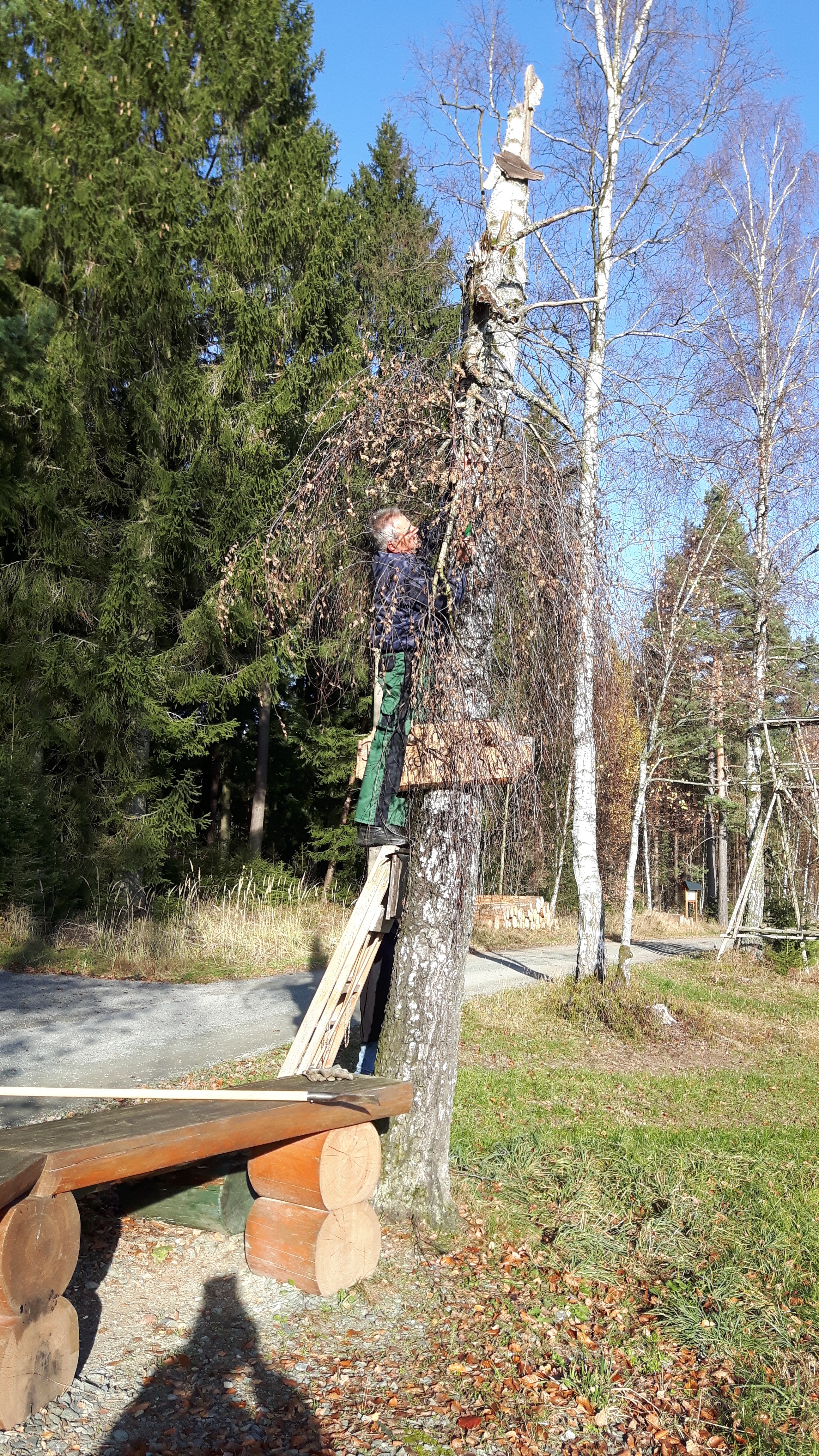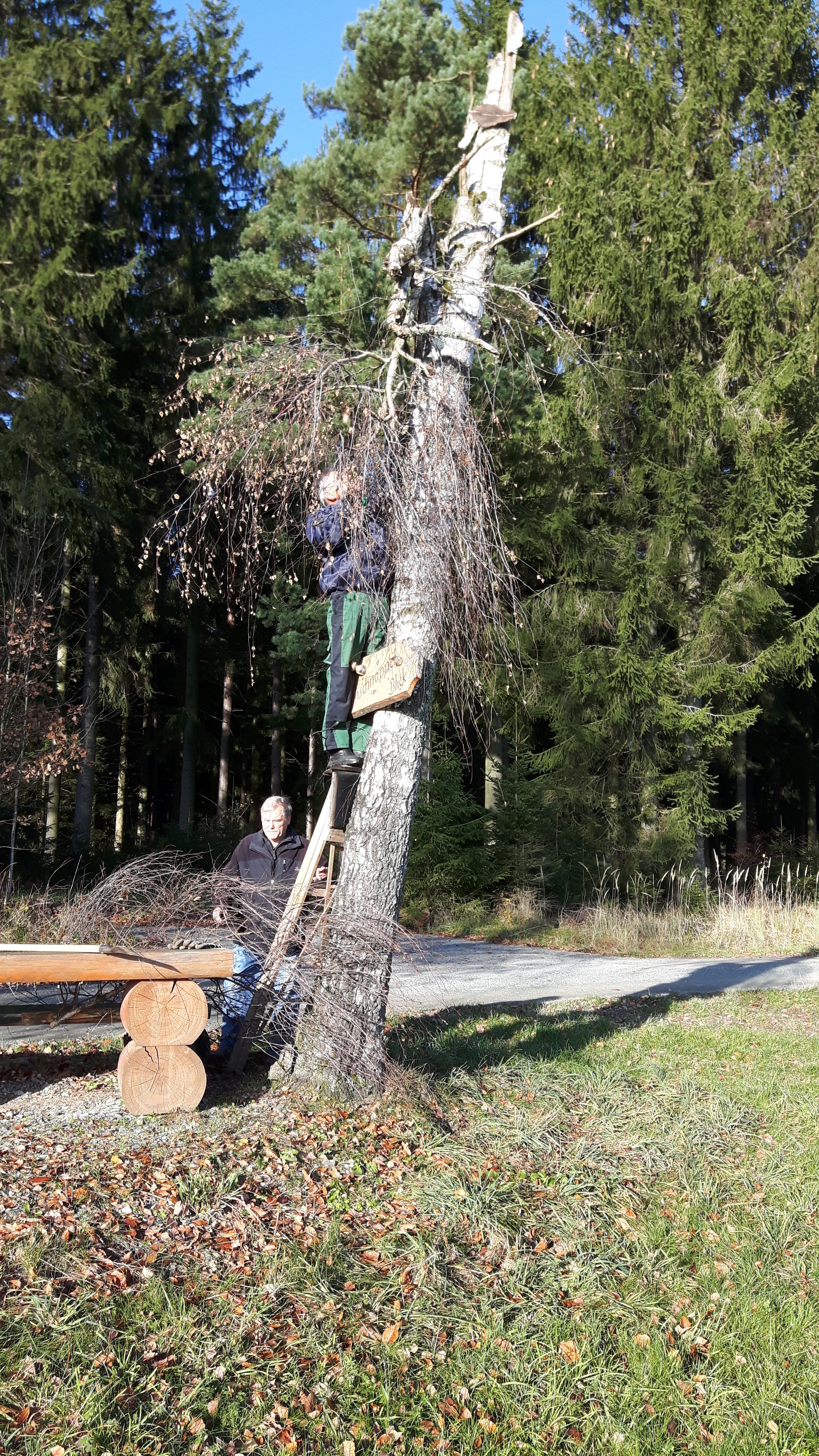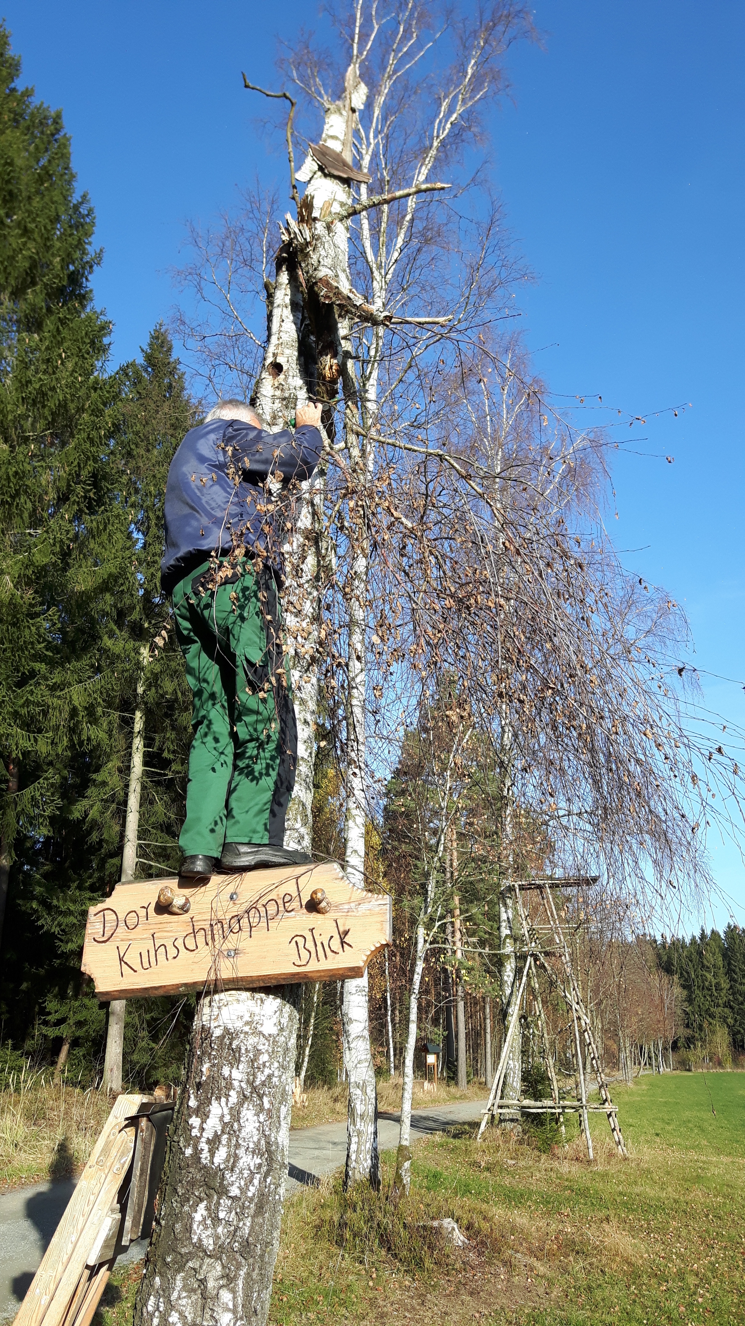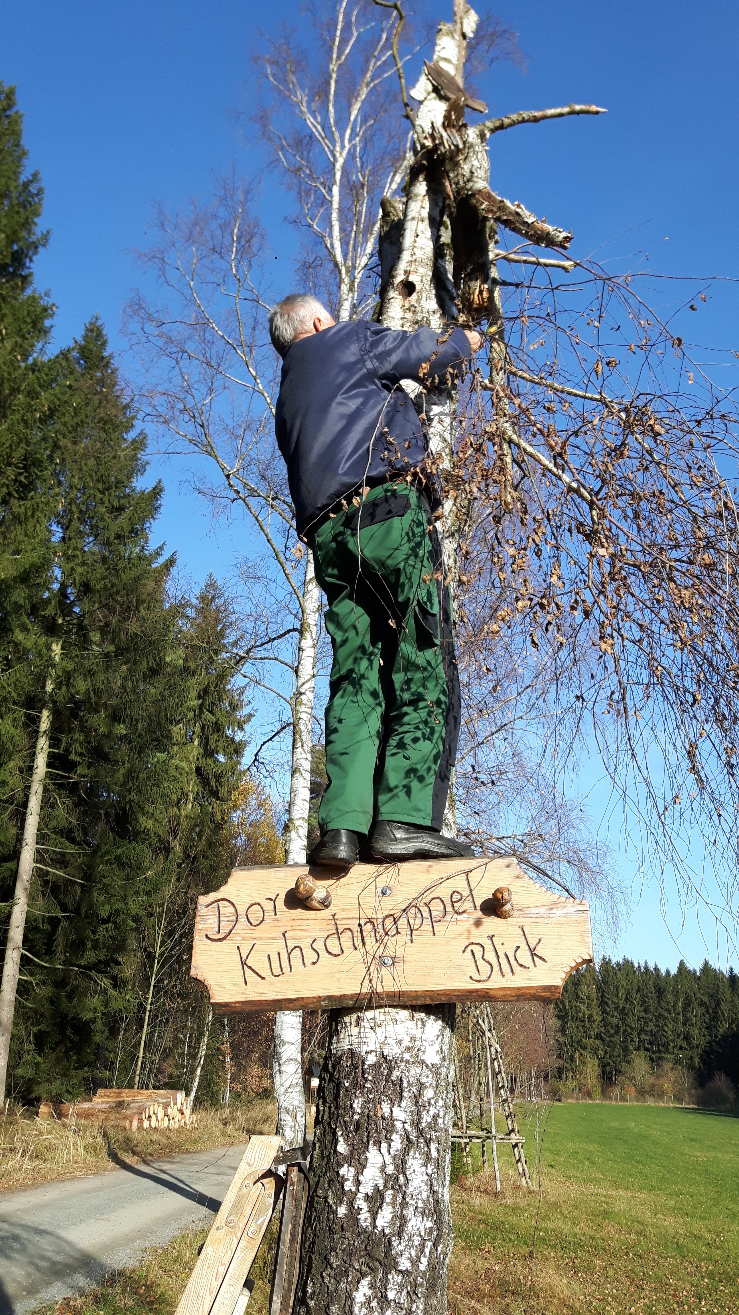 Die Wanderwegsbeauftragten des Heimatverein haben an einer Birke am Kuhschnabbel-Blick das Totholz entfernt. Damit wurde eine mögliche Unfallquelle beseitigt.