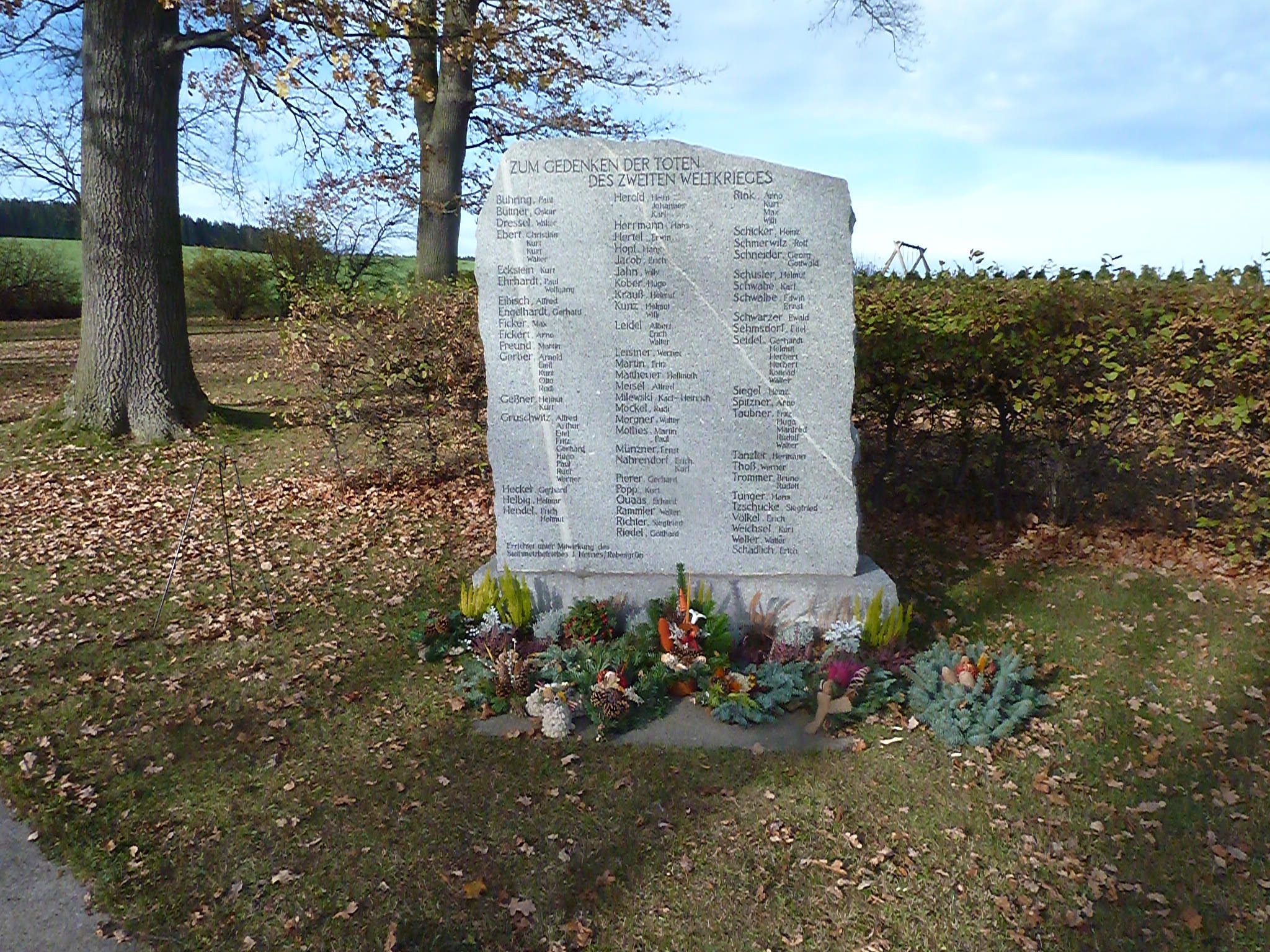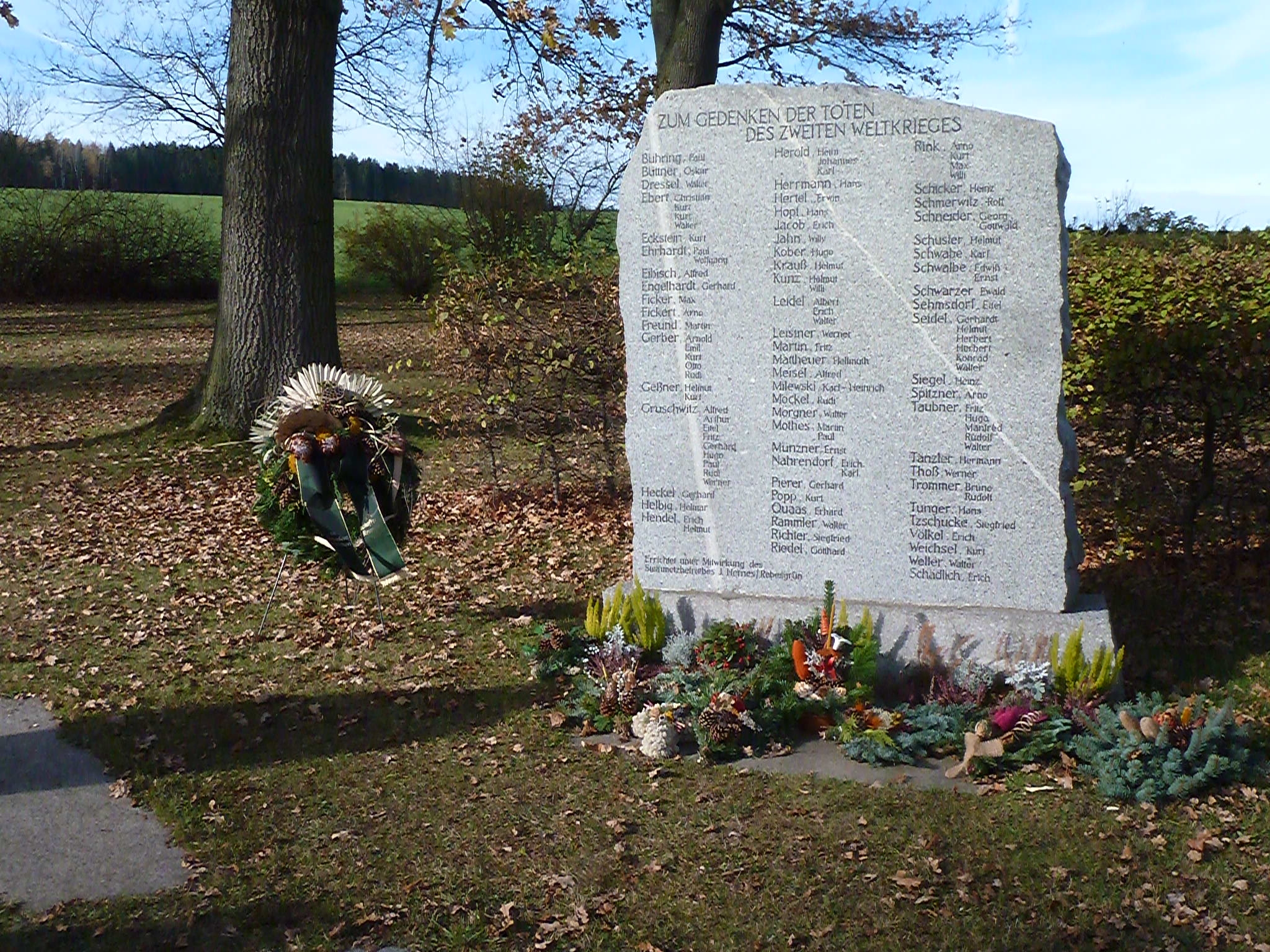 Wie bereits seit den 90er Jahren wurden zum Volkstrauertrag an den Reumtengrüner Denkmälern Kränze niedergelegt. Pfarrer Kaufmann erinnerte in seiner Ansprache erneut an das Leid der Kriege. Er wies auch auf die derzeitige unsichere Situation bezüglich des Coronavirus hin.
