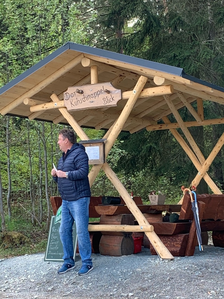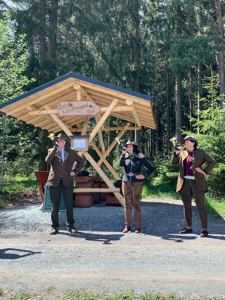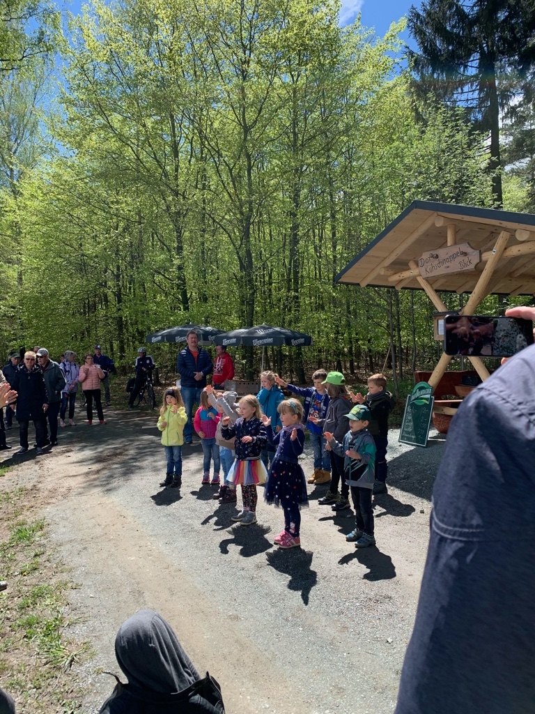 Für Samstag, den 15. Mai ab 14:00 Uhr wurde zur Einweihung der neuen Sitzgruppe am Kuhschnappelblick eingeladen. Ungefähr 80 Bürger folgten der Einladung des Ortschaftsrates. Der Kindergarten begann mit einem sehr schönen Programm. Danach richtete der Ortsvorsteher Uwe Ebert ein paar Worte an die anwesenden Gäste. Er dankte den beteiligten Firmen und Institutionen und brachte den Wunsch zum Ausdruck, dass die Sitzgruppe lange so erhalten bleibt. 3 Jagdhornbläser aus Reumtengrün rundeten das Programm zur Einweihung ab. Ein Gedicht, welches ein Reumtengrüner verfasste und unser Reumtengrün sehr eindrucksvoll beschreibt, wurde noch vorgetragen.