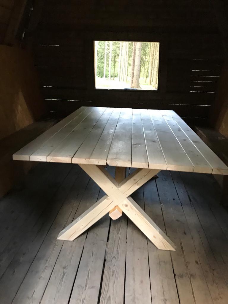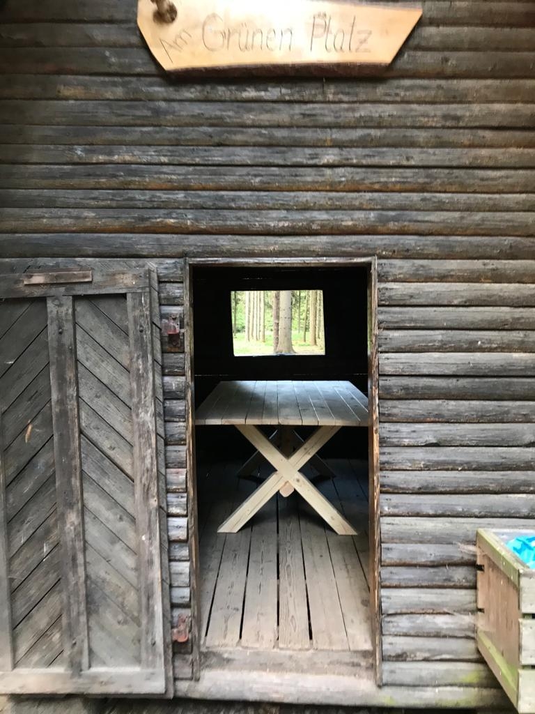 Am 3. Juni wurde der Tisch von der Zimmerei Kluge in die Hütte "Am Grünen Platz" gestellt. Nun ist es möglich, dort ausgiebig eine Rast mit Brotzeit einzulegen.