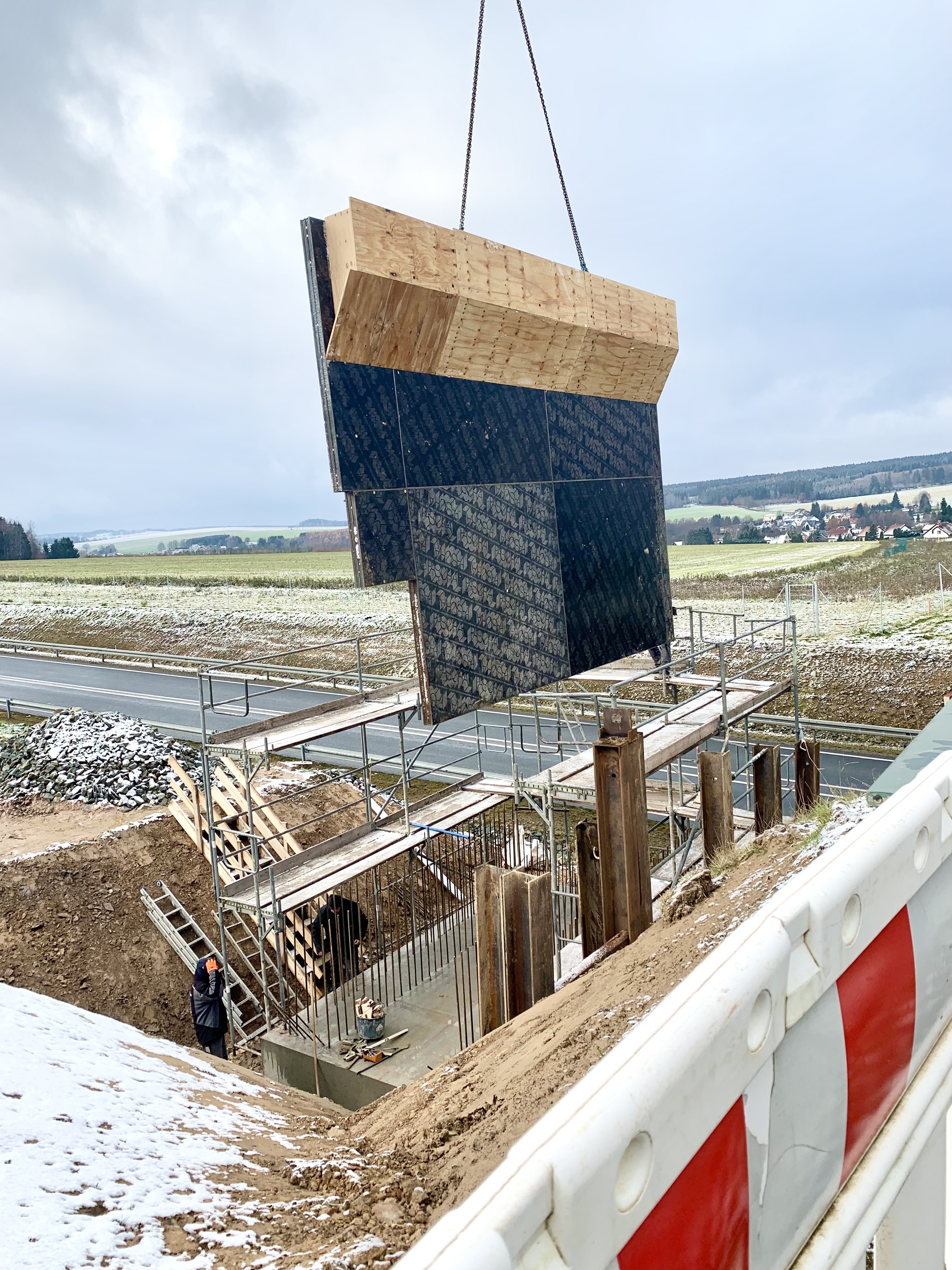 Geplant ist es, die Bauarbeiten noch bis zum 20. Dezember fortzuführen. Momentan werden die Elemente für die Schalung eingesetzt. Der erste Brückenpfeiler soll noch gegossen werden. Damit werden die Arbeiten für 2022 abgeschlossen.
