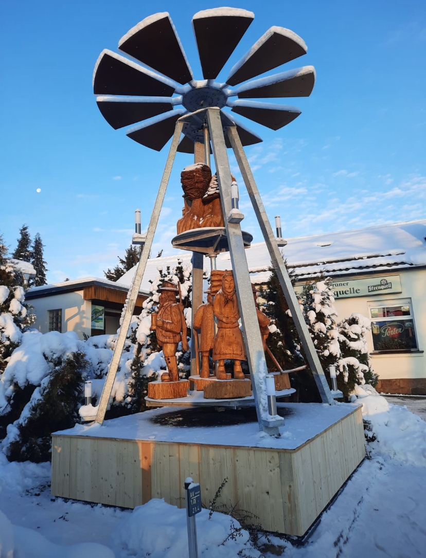 Der Ortschaftsrat Reumtengrün lädt alle recht herzlich am 1. Advent, 17:00 Uhr zum Anschieben der neuen Ortspyramide ein. Diese kann auf ein Alleinstellungsmerkmal verweisen! Die Figuren sind Kettensägearbeiten und sie stellen ortstypische Personen dar. Für das leibliche Wohl wird auf dem Adventsmarkt des Heimatvereins gesorgt.