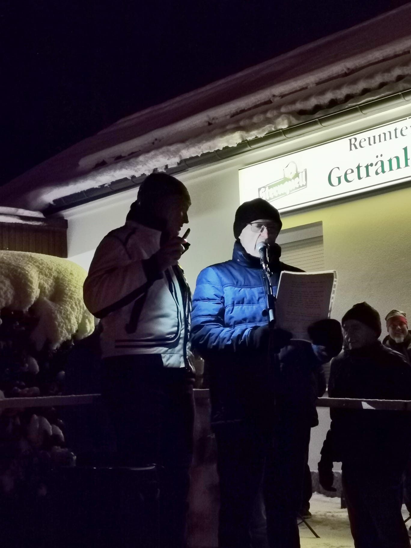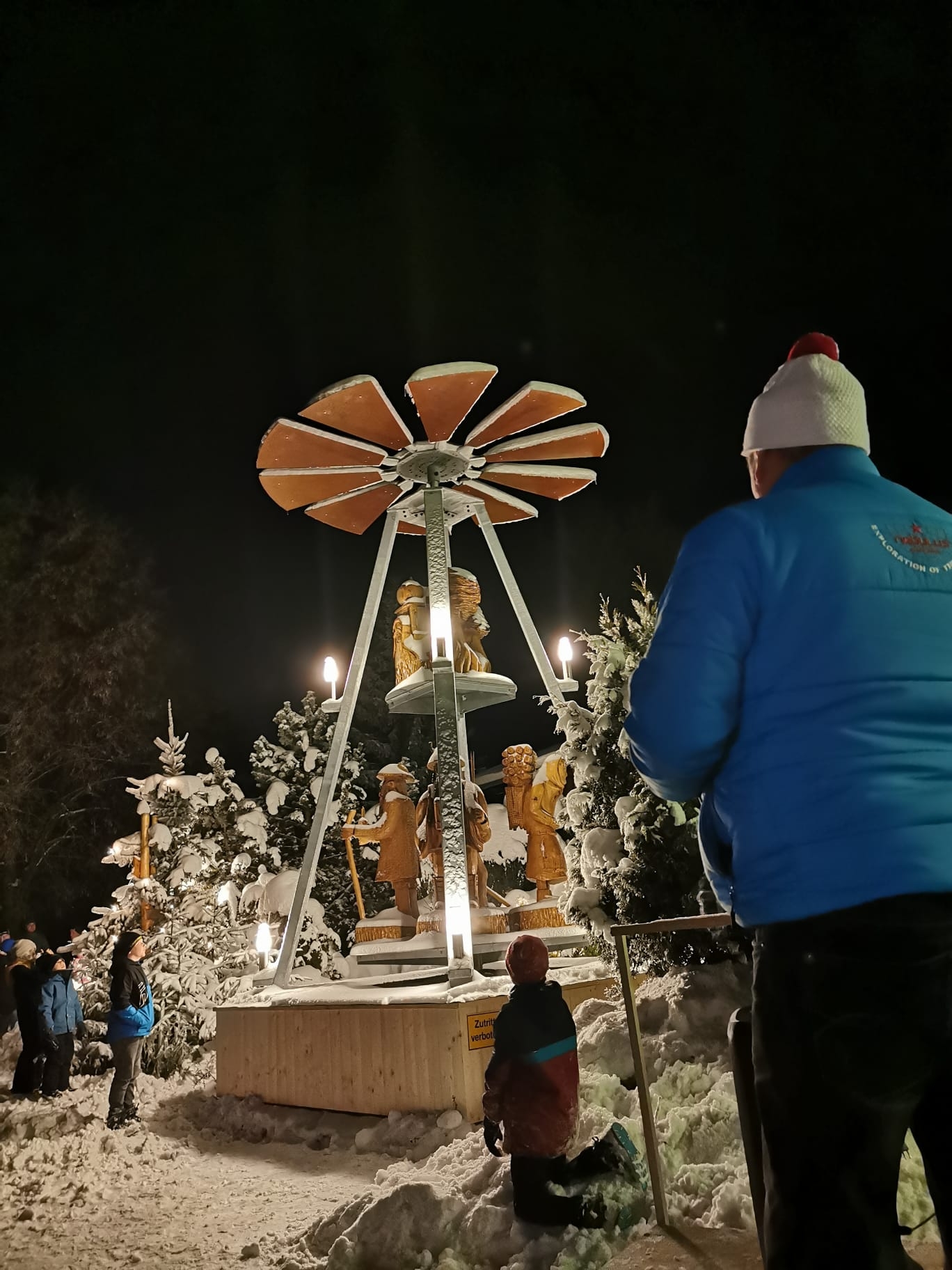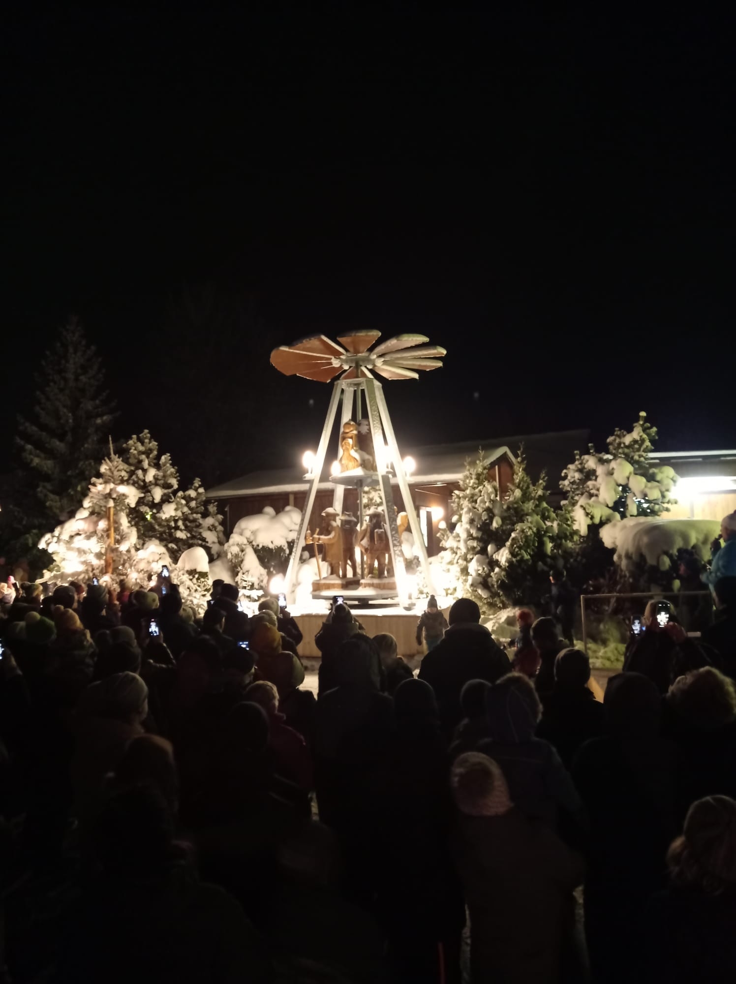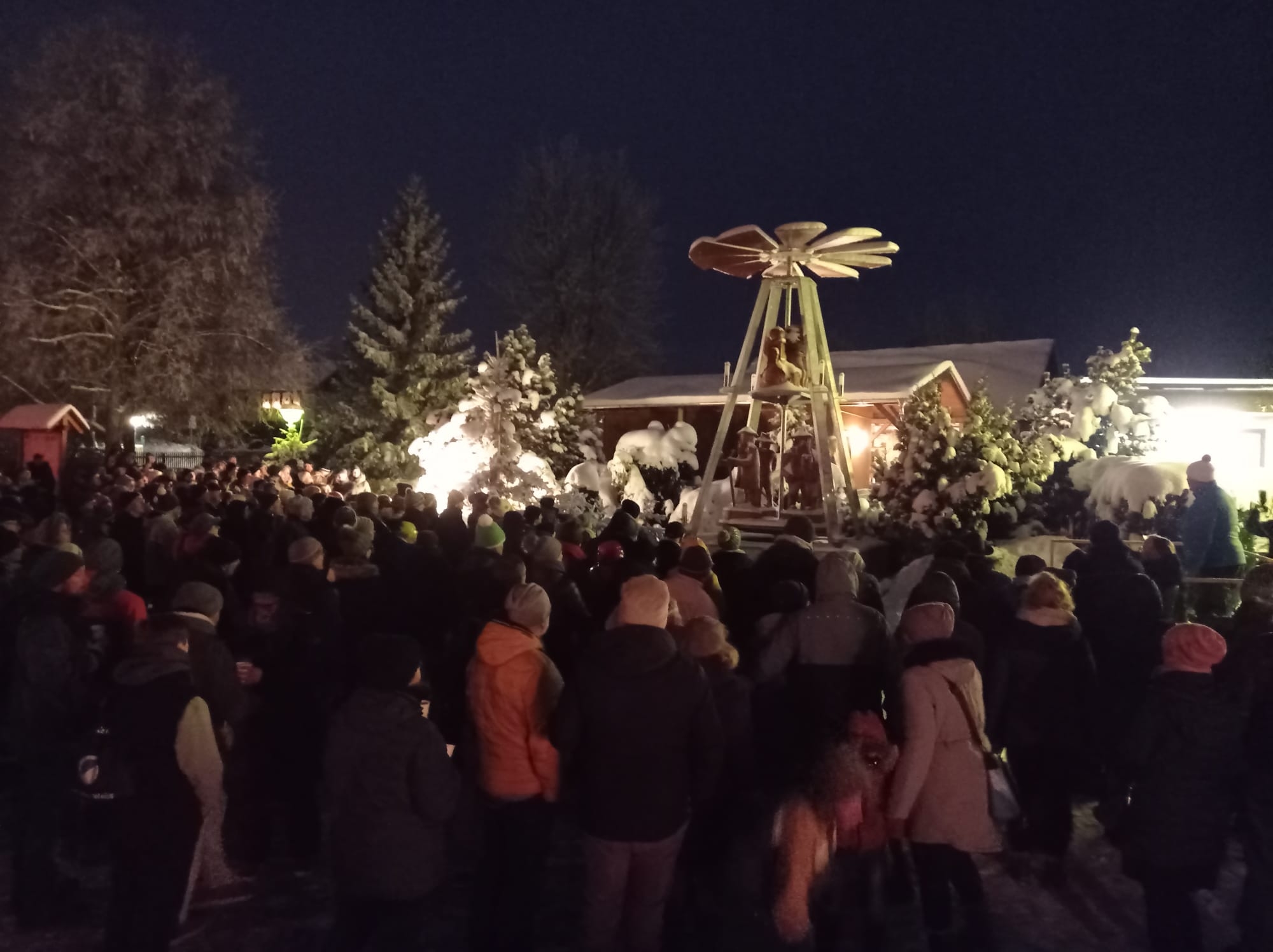 Pünktlich zum 1. Advent konnte die seit vielen Jahren gewünschte Pyramide in Reumtengrün feierlich angeschoben werden. Dank Fördermitteln, ganz vielen Enthusiasten, begeisterten Handwerkern und "Künstlern" mit der Kettensäge konnte das Werk vollendet werden. Ortsvorsteher Uwe Ebert und Johannes Rink gingen auf die Historie von der ersten Idee bis zum Anschieben der Pyramide ein. Der Posaunenchor der Kirchgemeinde Auerbach trug zur festlichen Stimmung bei. Sehr viele Gäste ließen sich das Ereignis nicht entgehen. In der weihnachtlich geschmückten Heimatstube konnte sich bei Kaffee und Stollen aufgewärmt werden. Weiterhin wurde auf dem Platz vor dem Heimatverein für das leibliche Wohl gesorgt.