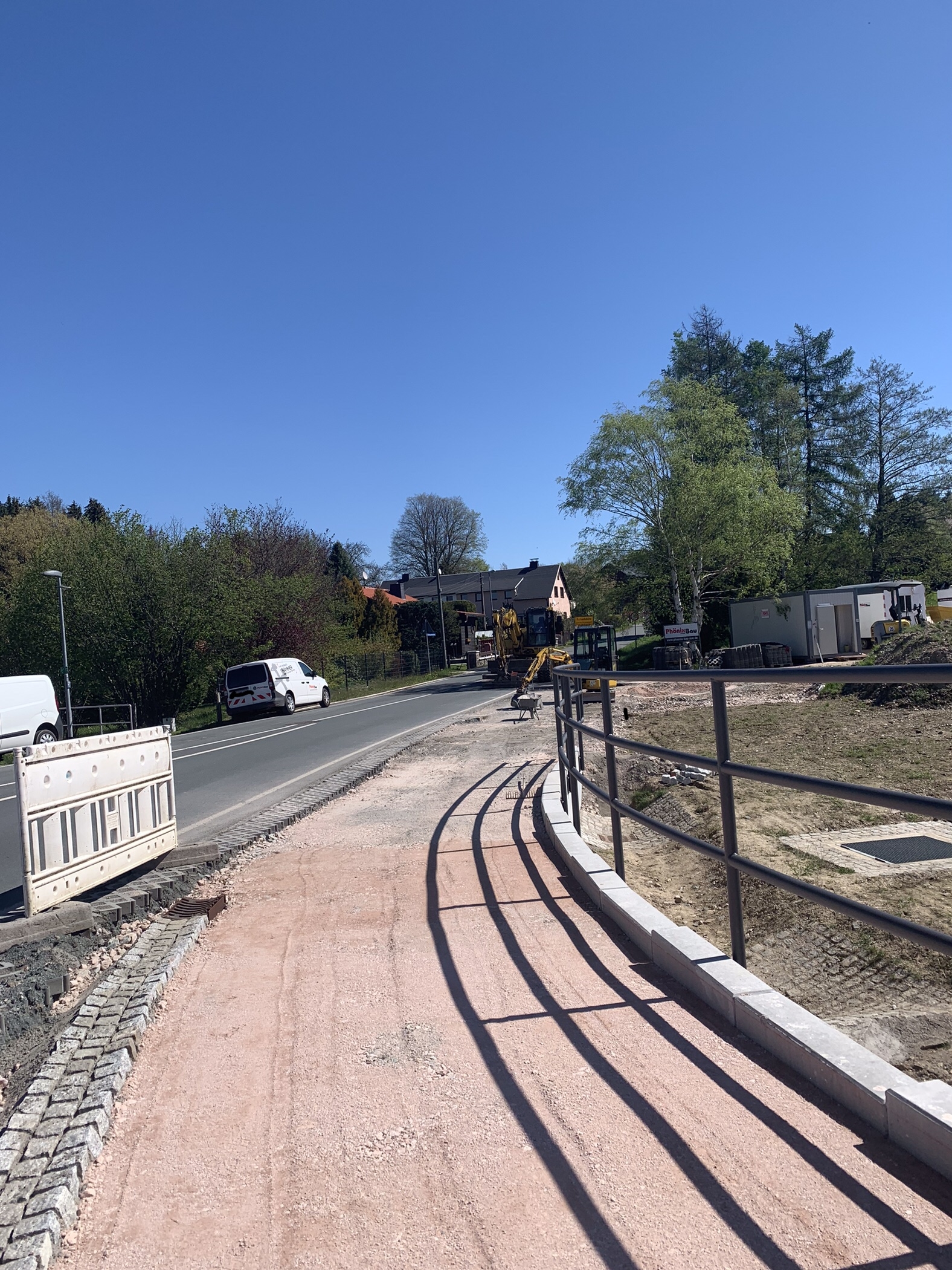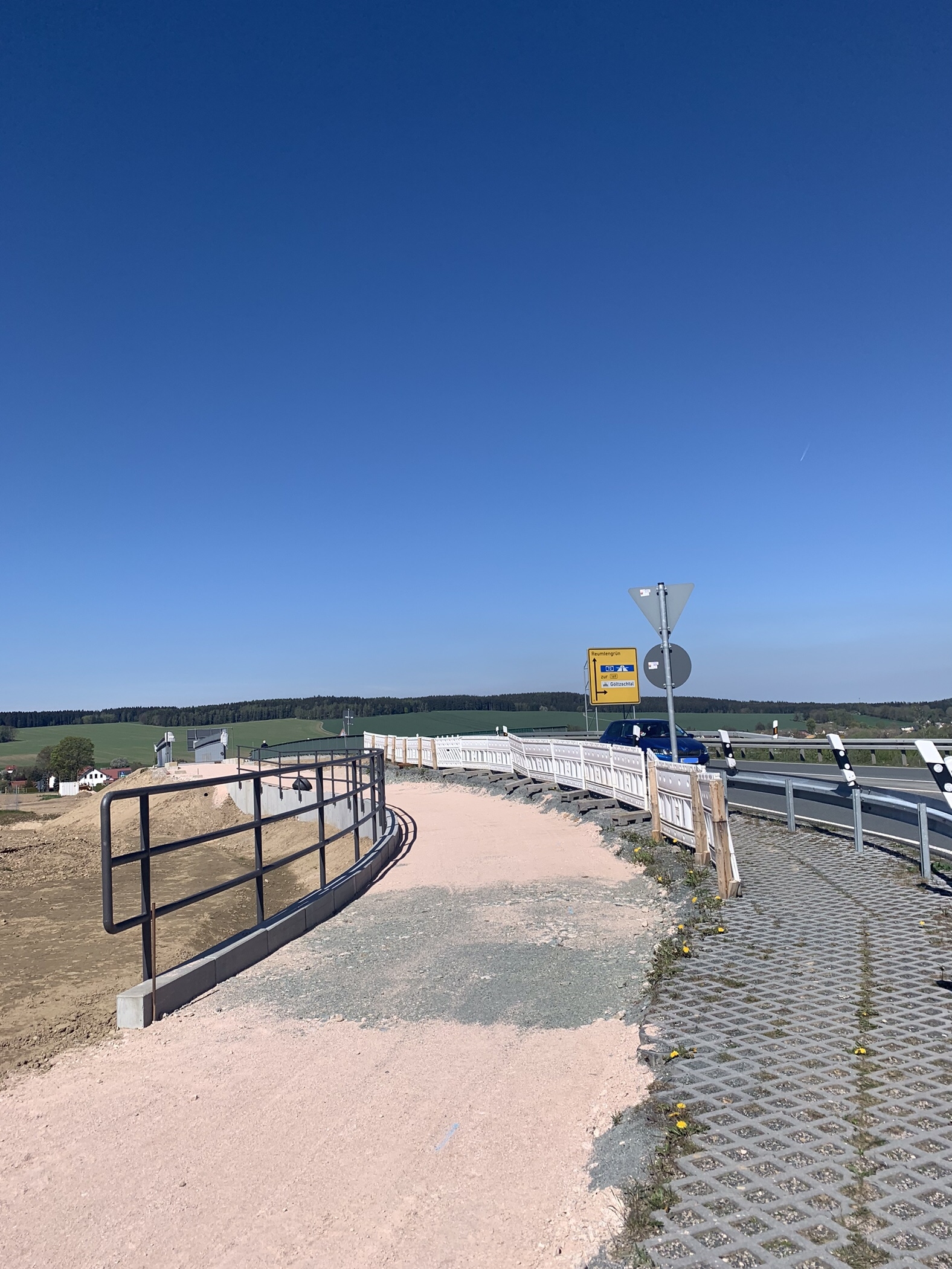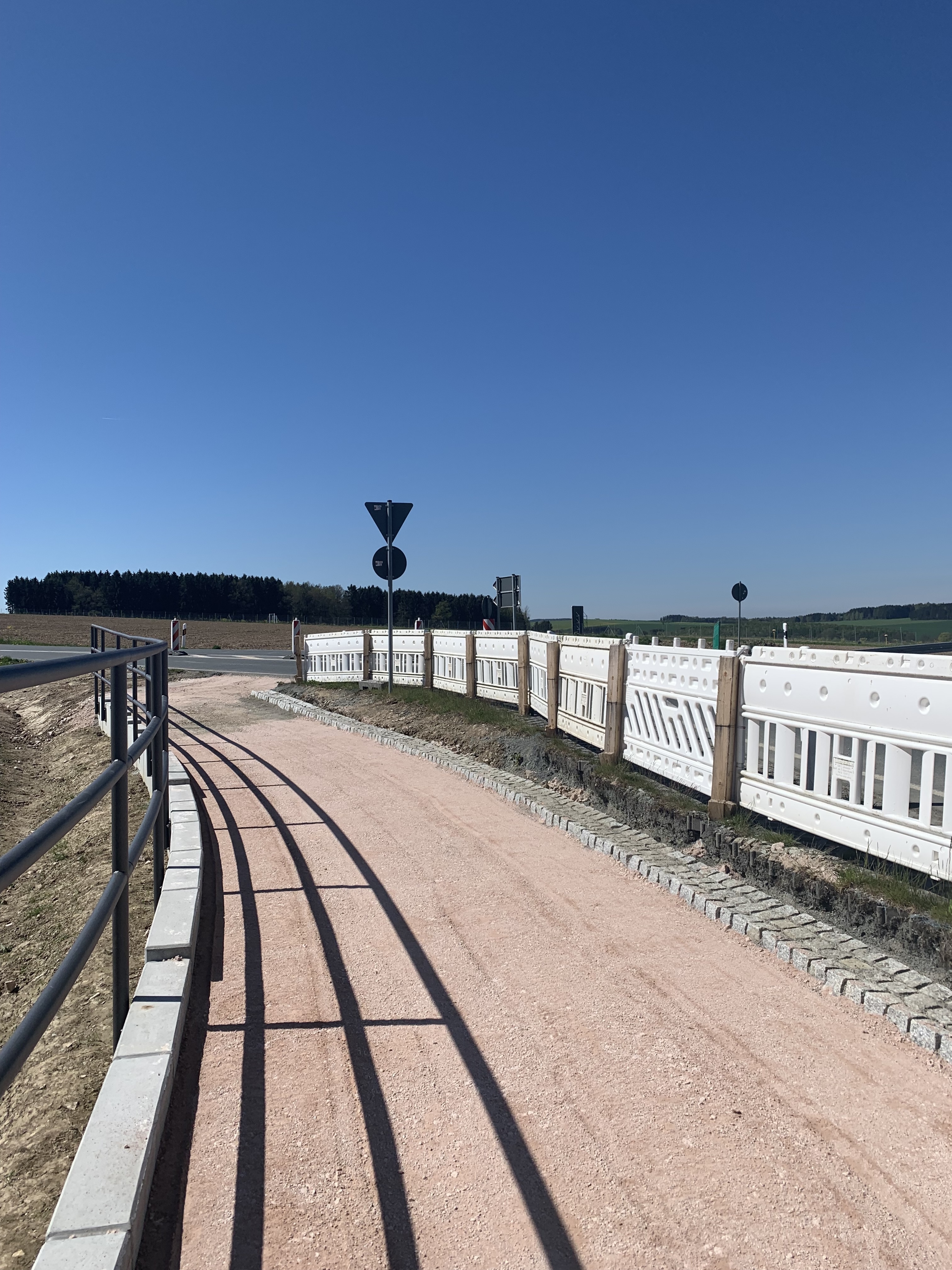 Der Fuß - Radweg hat die Asphaltdecke bekommen. Es fehlt noch ein Teil des Geländers und noch einige Arbeiten am Gelände sind vor der Übergabe notwendig.