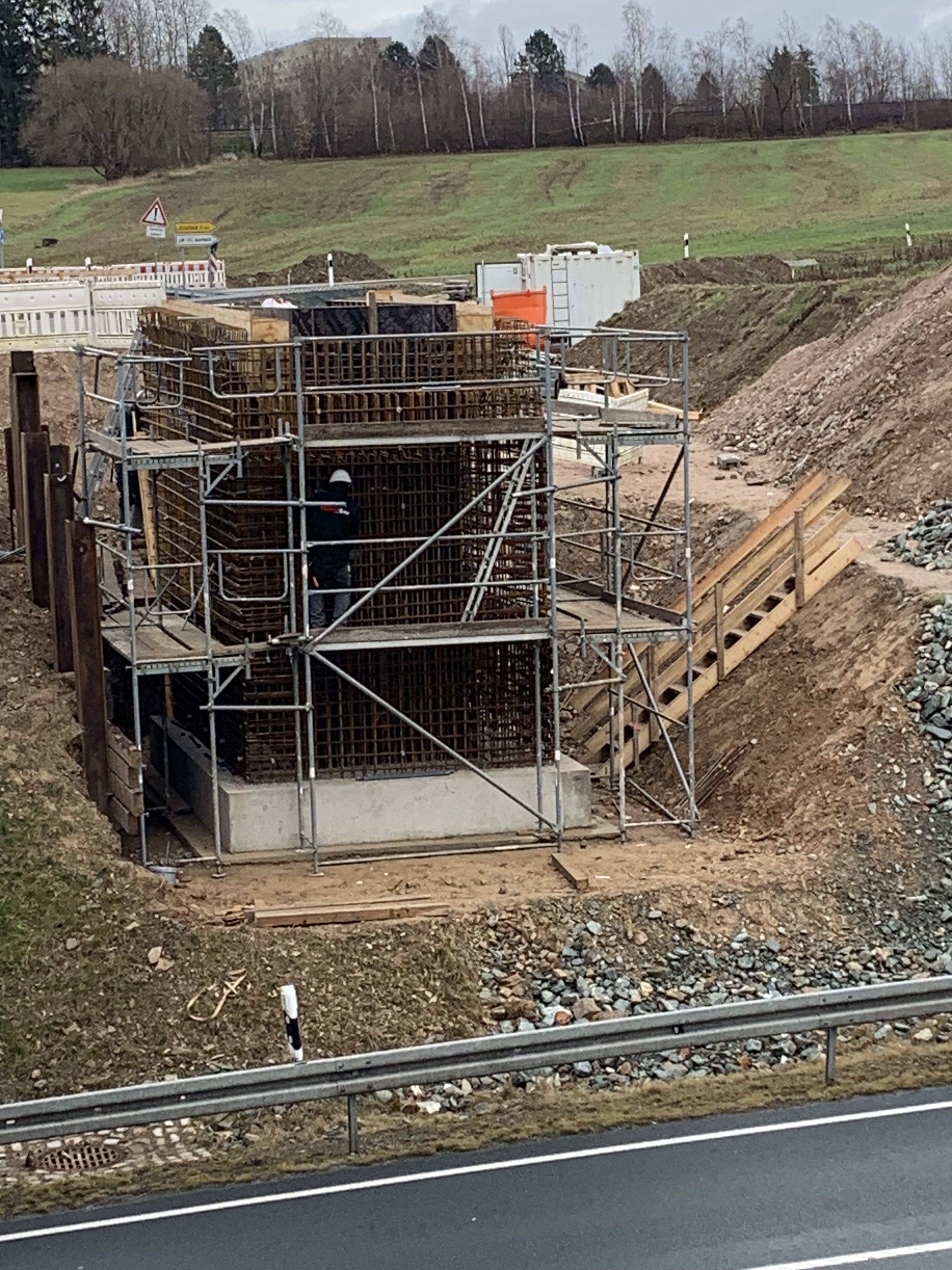Die Bauarbeiten an der neuen Fußgänger-Rad-Brücke über die B 169 wurden in der 2. Januarwoche 2023 fortgesetzt. Der Bagger hat auf der Seite zum Ort mit den Vorbereitungsarbeiten für die Baustraße begonnen.