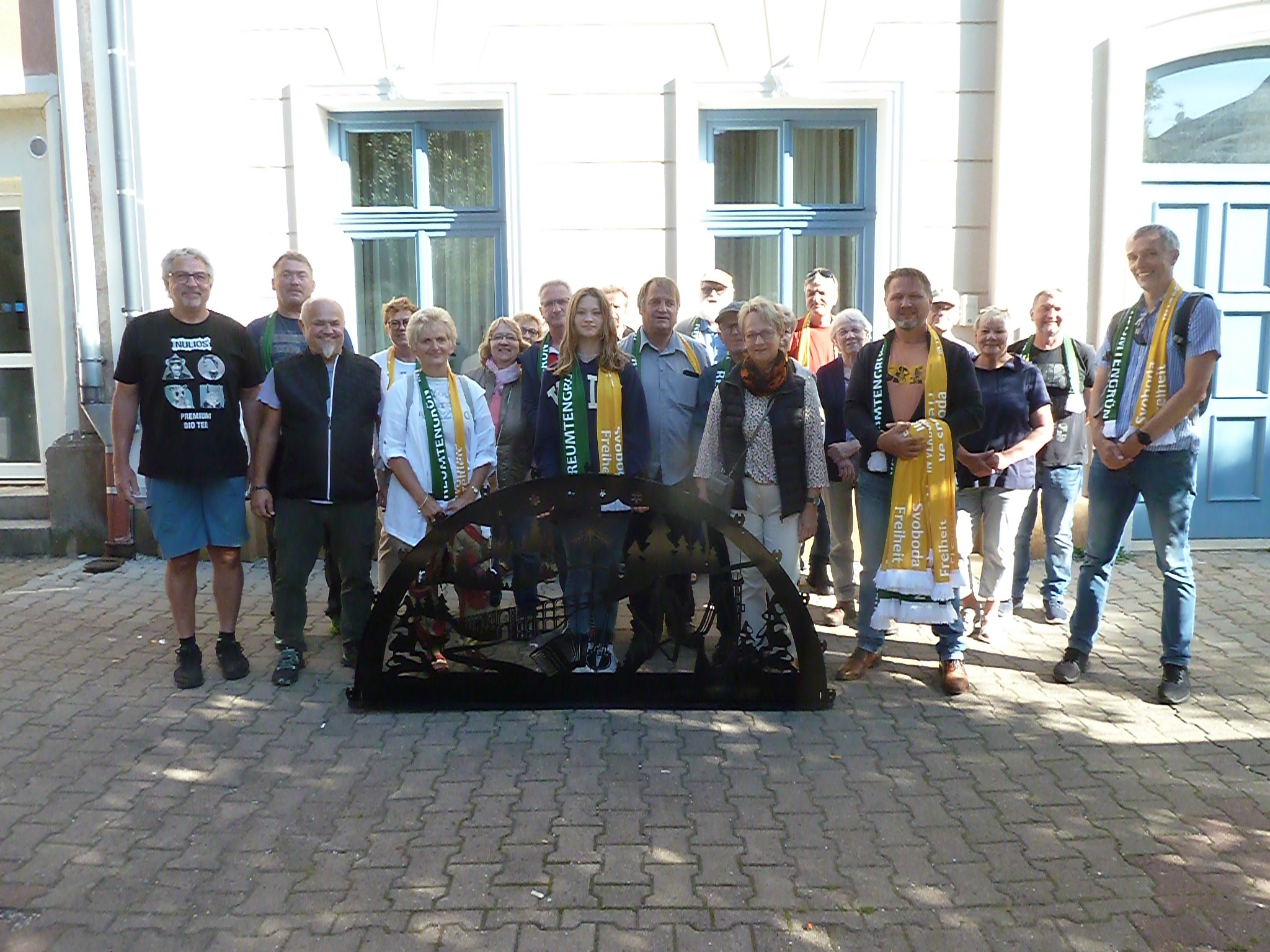 Vom 15.9.-17.9.2023 besuchten Bürger aus Reumtengrün die Partnergemeinde Svoboda in der Tschechischen Republik. Die Partnerschaft wurde im August 2021 in Svoboda feierlich beurkundet. Bereits vorher bestand ein reger Austausch mit Svoboda. In die Wege geleitet wurde das Ansinnen für eine Partnerschaft durch Dr. Herbert Gall, welcher in Svoboda - dem ehemaligem „Freiheit“ geboren wurde - und dem Ortsvorsteher Uwe Ebert. Das Sächsische Staatsministerium sowie die Stadt Auerbach stehen diesem Projekt sehr wohlwollend gegenüber und geben uns ihre Unterstützung. Diese Verbindung soll nicht nur auf dem Papier stehen, sondern auch gelebt werden. Dazu tragen zum einen natürlich die gegenseitigen Besuche und zum anderen die Kontakte über die modernen Medien bei. Die Homepages der beiden Orte können jeweils auch in der Sprache der Partnergemeinde gelesen werden. Angestrebt wird die Zusammenarbeit auf Vereinsebene und ein Austausch der Jugendlichen untereinander. Unser Besuch fand in diesem Jahr zum Rudolffest statt. Dieses wird jedes Jahr feierlich begangen. Es geht zurück auf den Habsburgischen Kaiser Rudolf II. (1552 -1612). Er verlieh „Freiheit am güldenen Rehorn" im 16. Jahrhundert das Stadtrecht. Die Erhebung zur Stadt wird noch heute mit dem Rudolffest gefeiert. Als Geschenk haben wir dem Bürgermeister von Svoboda ein klassisches Sinnbild für die Vogtländische Weihnacht überreicht, einen Schwibbogen. Auf diesem sind typische Vogtländische Wahrzeichen zu sehen: Musikinstrumente, ein Skispringer einschließlich der Vogtlandarena, Wald mit Tieren und natürlich die Göltzschtalbrücke sowie der Moosmann. Dank für die Organisation und Durchführung der Fahrt gilt dem OV Uwe Ebert, Dr. Herbert Gall, Heinz Wüst und natürlich unserer Partnergemeinde in Svoboda.