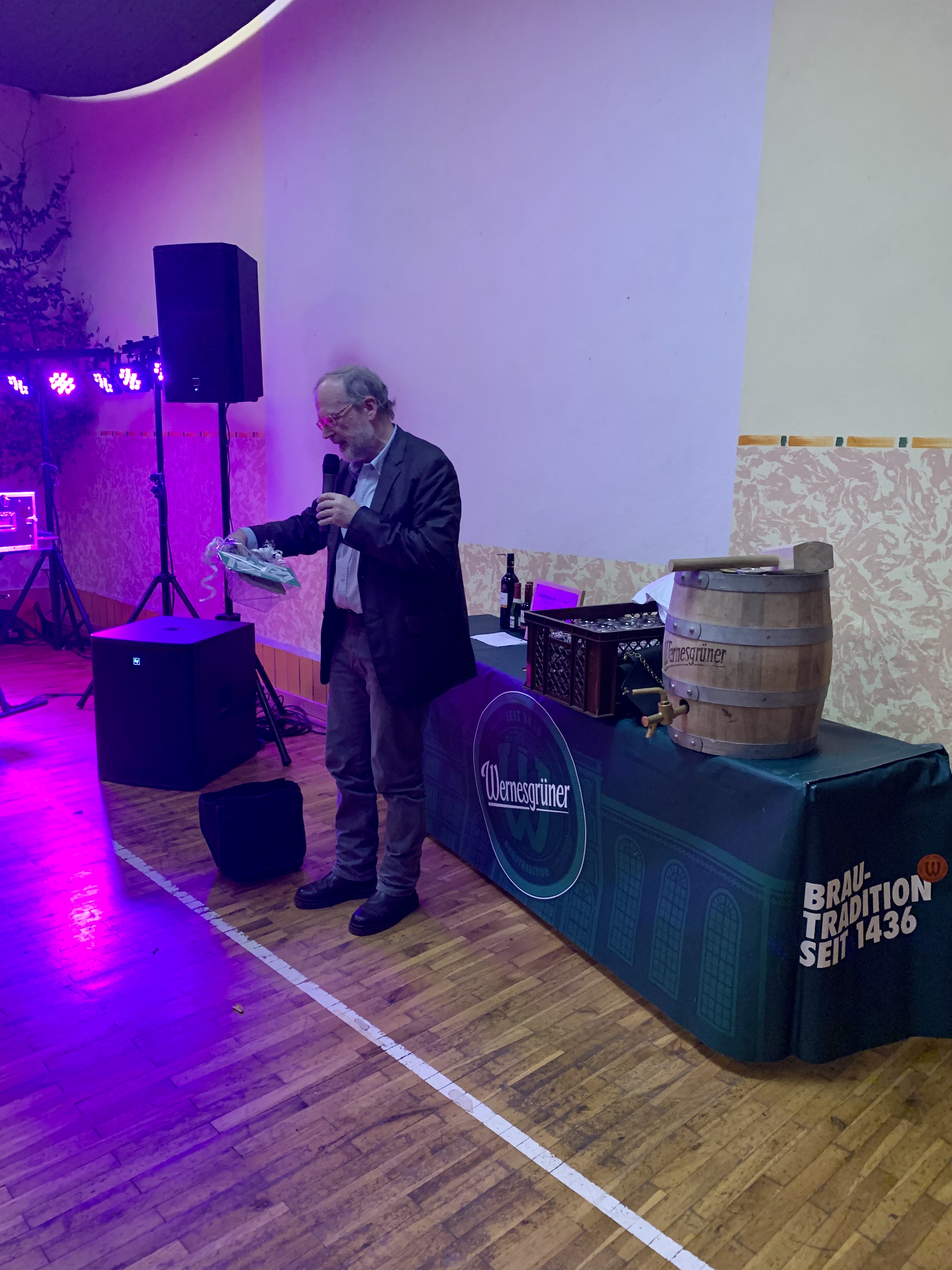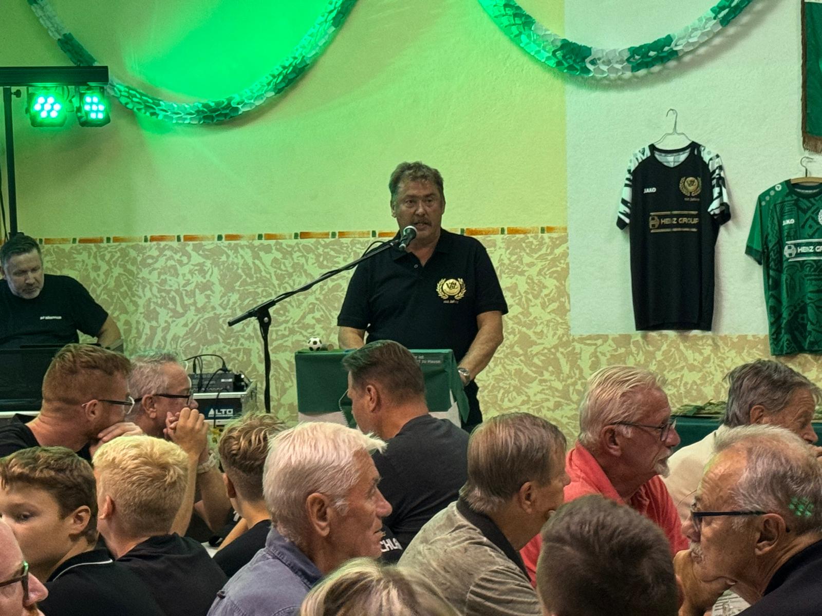 Seine Grußworte verband unser Pfarrers Johannes Kaufmann mit verspäteten Grüßen und Glückwünschen zum 100Jährigen Jubiläum des VfL. Er überreichte eine digitale Sammlung mit Informationen zu bekannten Fussballern.