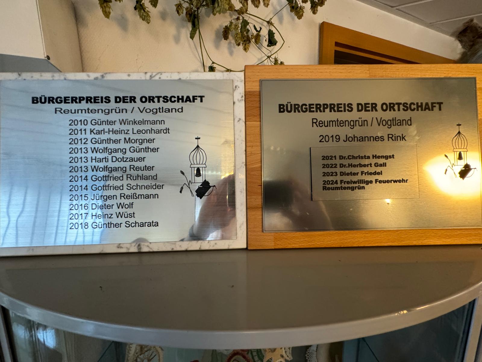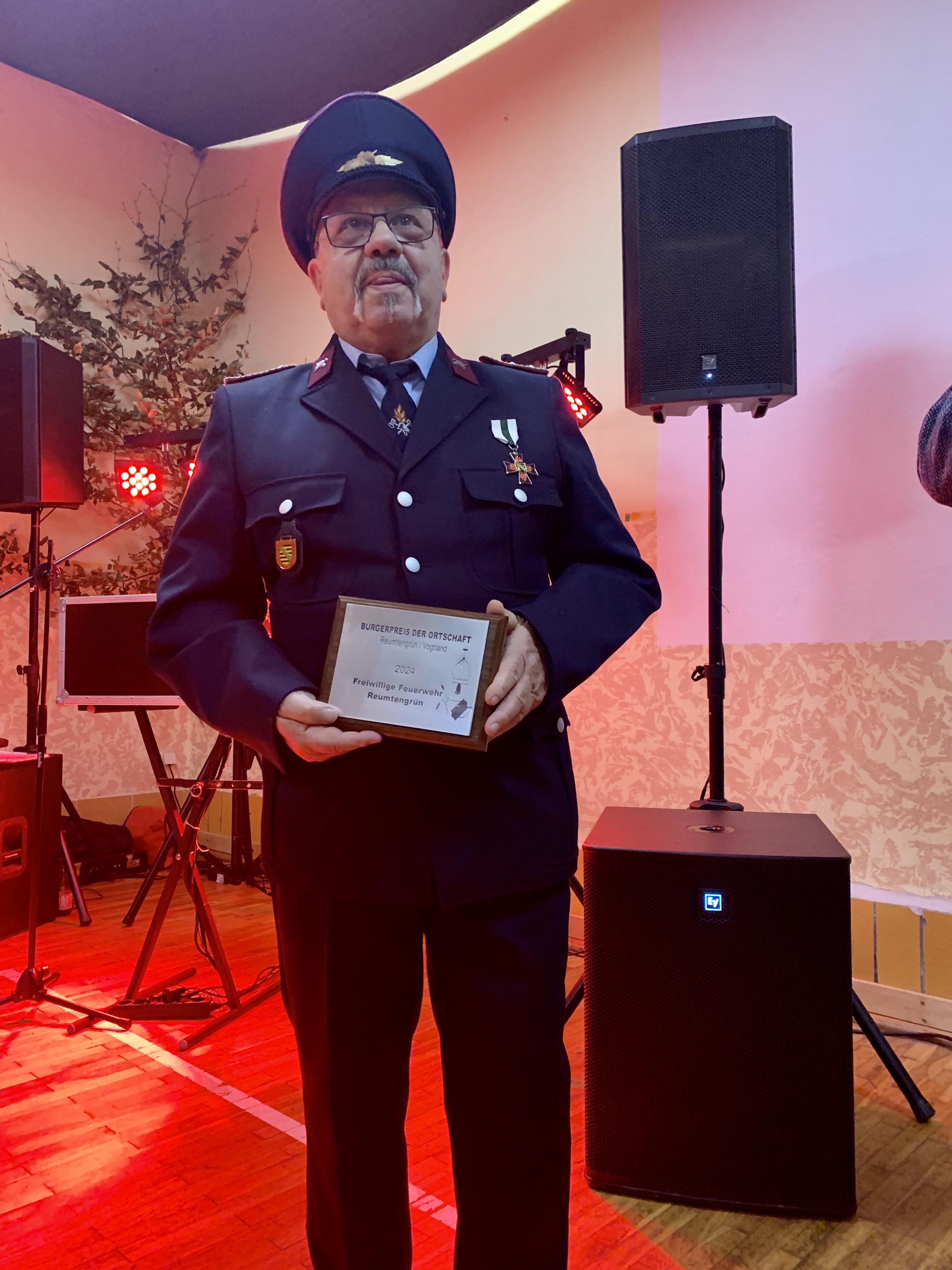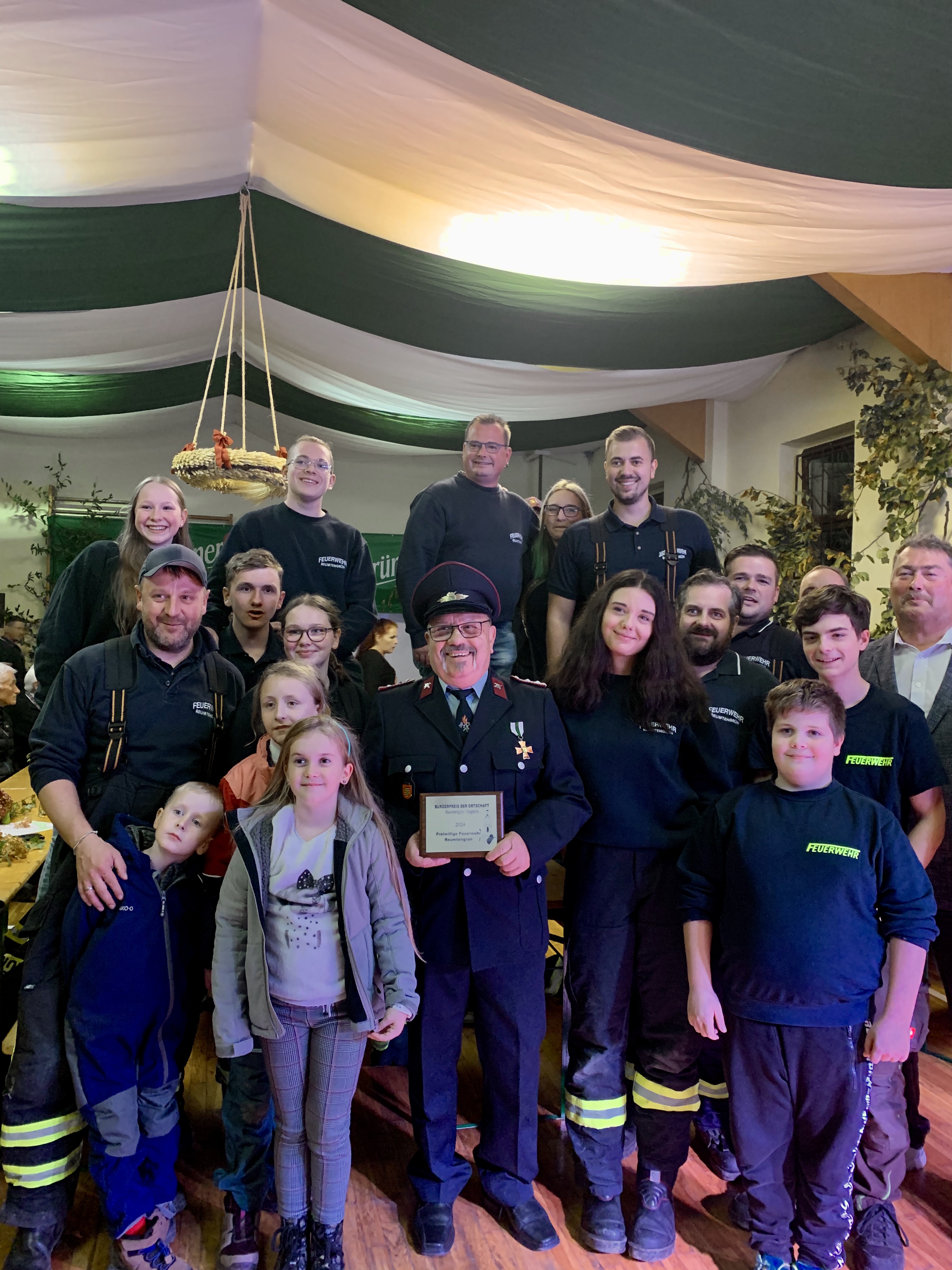 Der Bürgerpreis 2024 ging verdientermaßen an die Freiwillige Feuerwehr Reumtengrün. Es war ein Dank an 365 Tage in Jahr und 24 Stunden Bereitschaft!! Neben dieser Aufgabe hilft die Feuerwehr bei Einsätzen, wie in diesem Jahr mehrmals bei Überflutungen im Ort. Hier spielt die Einsatzdauer und die Uhrzeit für die Kameraden keine Rolle. Nicht zu vergessen ist das Engagement für das kulturelle Leben im Ort. Sei es das Höhenfeuer, zum Dorfffest oder die Kinderweihnacht. Nochmals vielen Dank an die Kameraden!