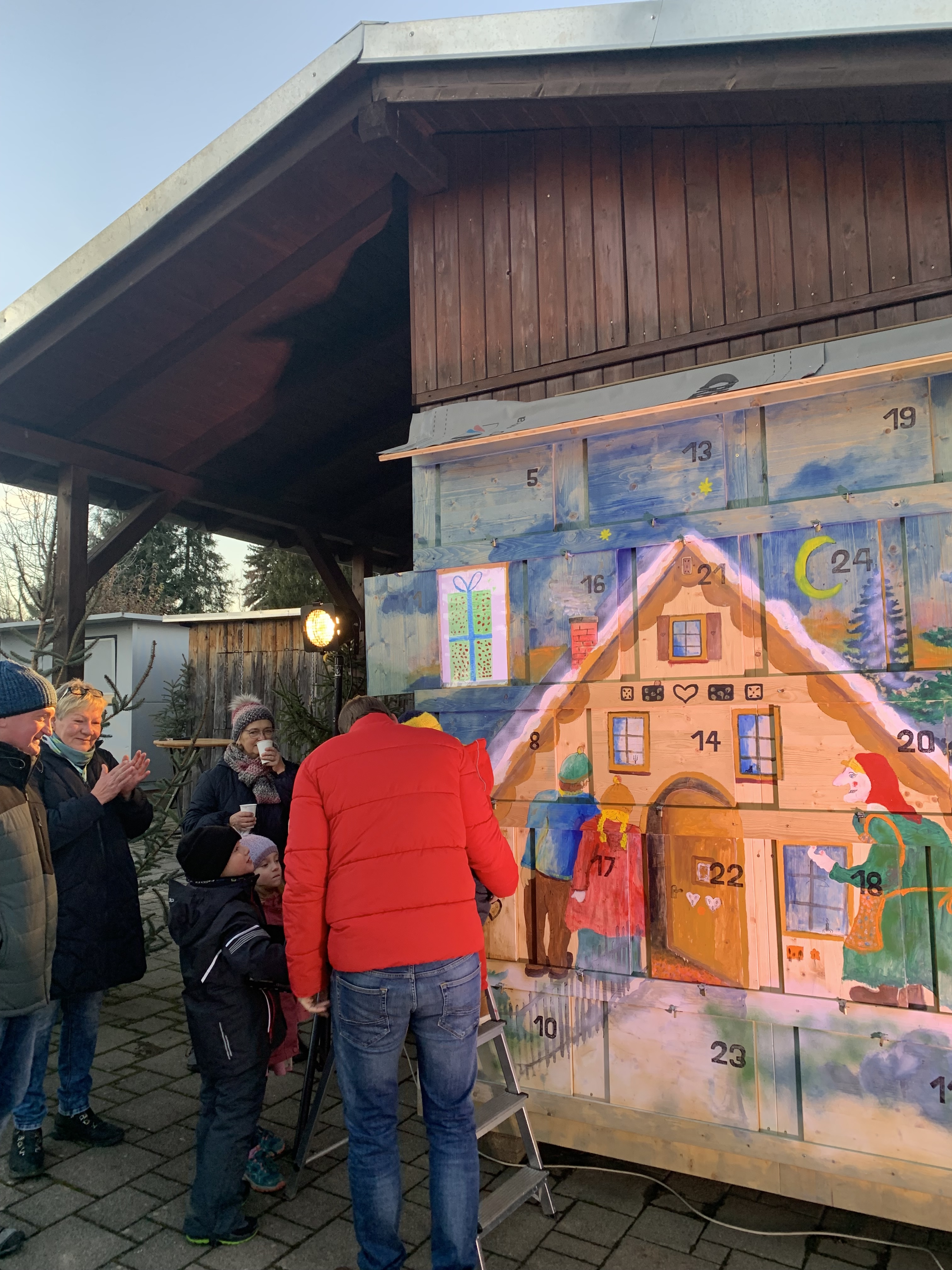Zum 1. Advent hatte der Heimatverein zu Kaffee und Stollen in die weihnachtlich geschmückte Heimatstube eingeladen. Zahlreiche Gäste folgten der Einladung. 16:00 Uhr wurde von einem Kind des Kindergarten Reumtengrün das 1. Türchen am Adventskalender geöffnet. Dieser Kalender - verziert mit einem Märchenbild - wurde im vergangenen Jahr von Frank Kämpfer gestaltet. Pünktlich um 17:00 Uhr wurde vom Ortsvorsteher Uwe Ebert das Signal zum Anschieben unserer Ortspyramide gegeben. Er läutete diesen Brauch mit besinnlichen Worten und einem Gedicht ein. Zum Aufwärmen konnte Glühwein getrunken werden. Dank gilt allen Helfern!