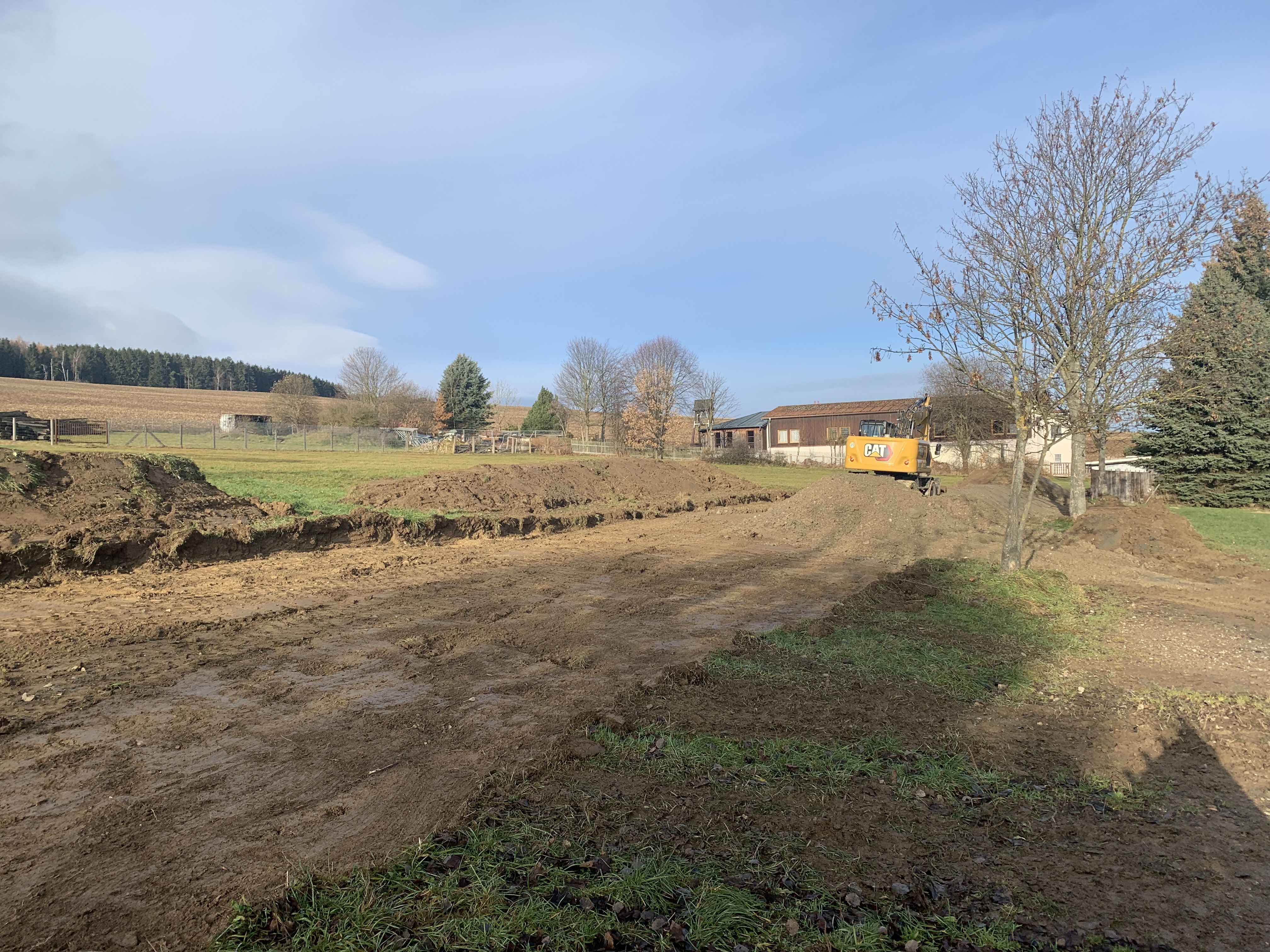 Am 26. November wurde mit den Arbeiten für den "Hochwasserschutzwall" begonnen. Am 25. Mai wurde neben dem Freibad auch die Dorfmitte total von Wasser- uns Schlammmassen überflutet. Es sollte nicht bei einem Unwetter bleiben. In den folgenden Wochen wurden einige Anwesen in der Dorfmitte mehrfach überflutet. Deshalb wurde von der Stadtverwaltung zusammen mit den betroffenen Grundstücksbesitzern nach einer dauerhaften Lösung gesucht. Die Entscheidung fiel zu Gunsten eines Erdwalles. Lassen wir uns überraschen!!