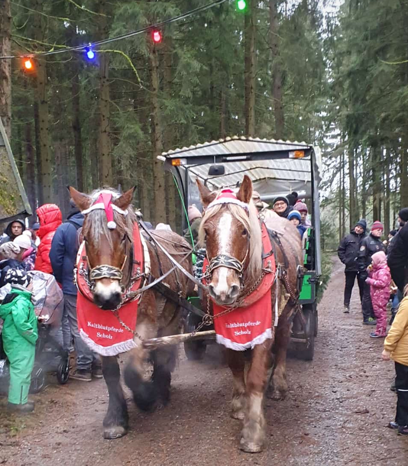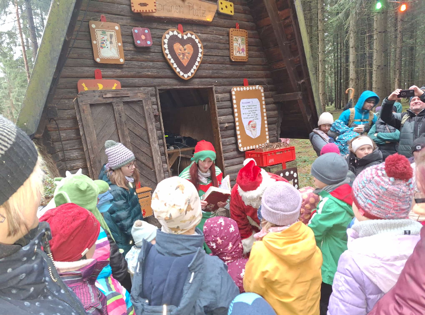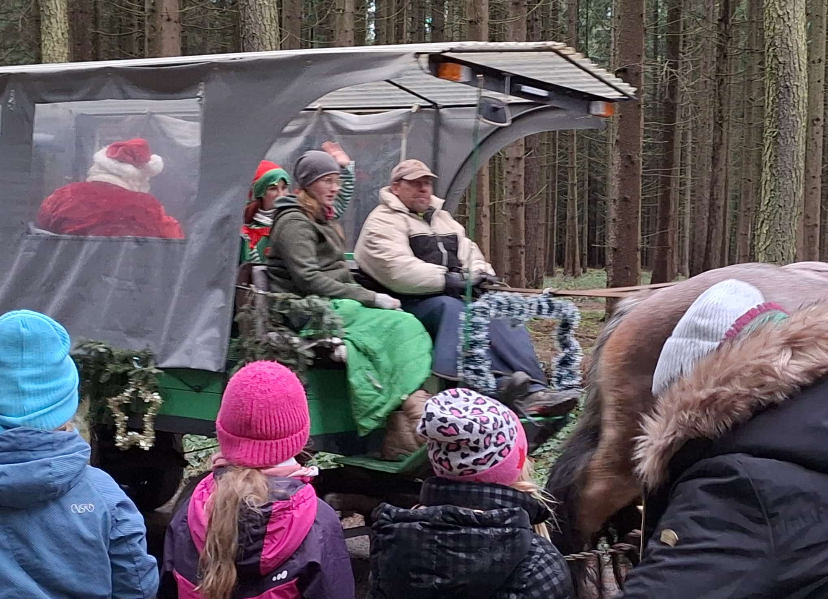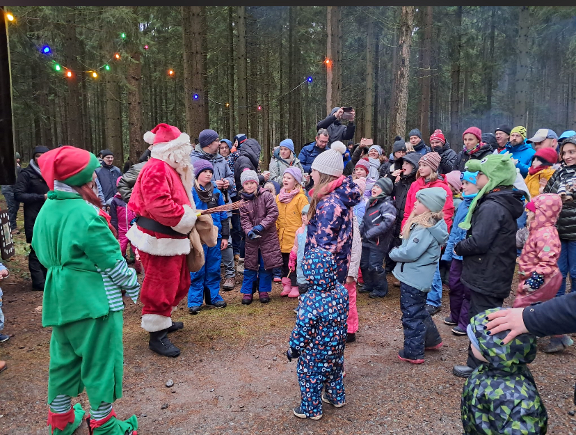 Alle Jahre wieder! Kommt der Weihnachtsmann samt Wichtel im Wald zu den Kindern. Mangels Schnee in diesem Jahr wieder mit dem Pferdewagen. Vor dem "Pfefferkuchenhaus" verteilen der Weihnachtsmann und sein Wichtel die Geschenke an die Kinder. Der Wichtel liest aus seinem großen Buch die kleinen und weniger guten Missgeschicke und schönen Abenteuer der Kinder vor. Für das leibliche wurde wieder bestens gesorgt.