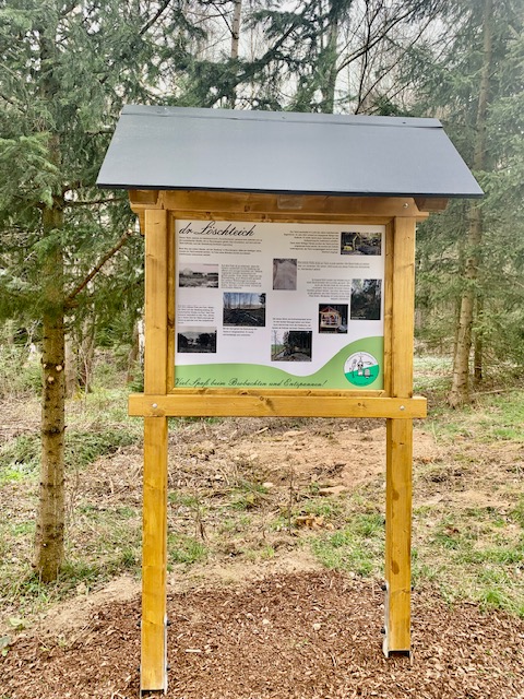 Im Anschluß an die Osterwanderung wurde die neue Informationstafel am Löschteich eingeweiht. Auf ihr wird die Historie des Löschteiches und die der angrenzenden Siedlung dargestellt. Diese Tafel ist mittlerweile die 5. in Reumtengrün und soll nicht die letzte sein.